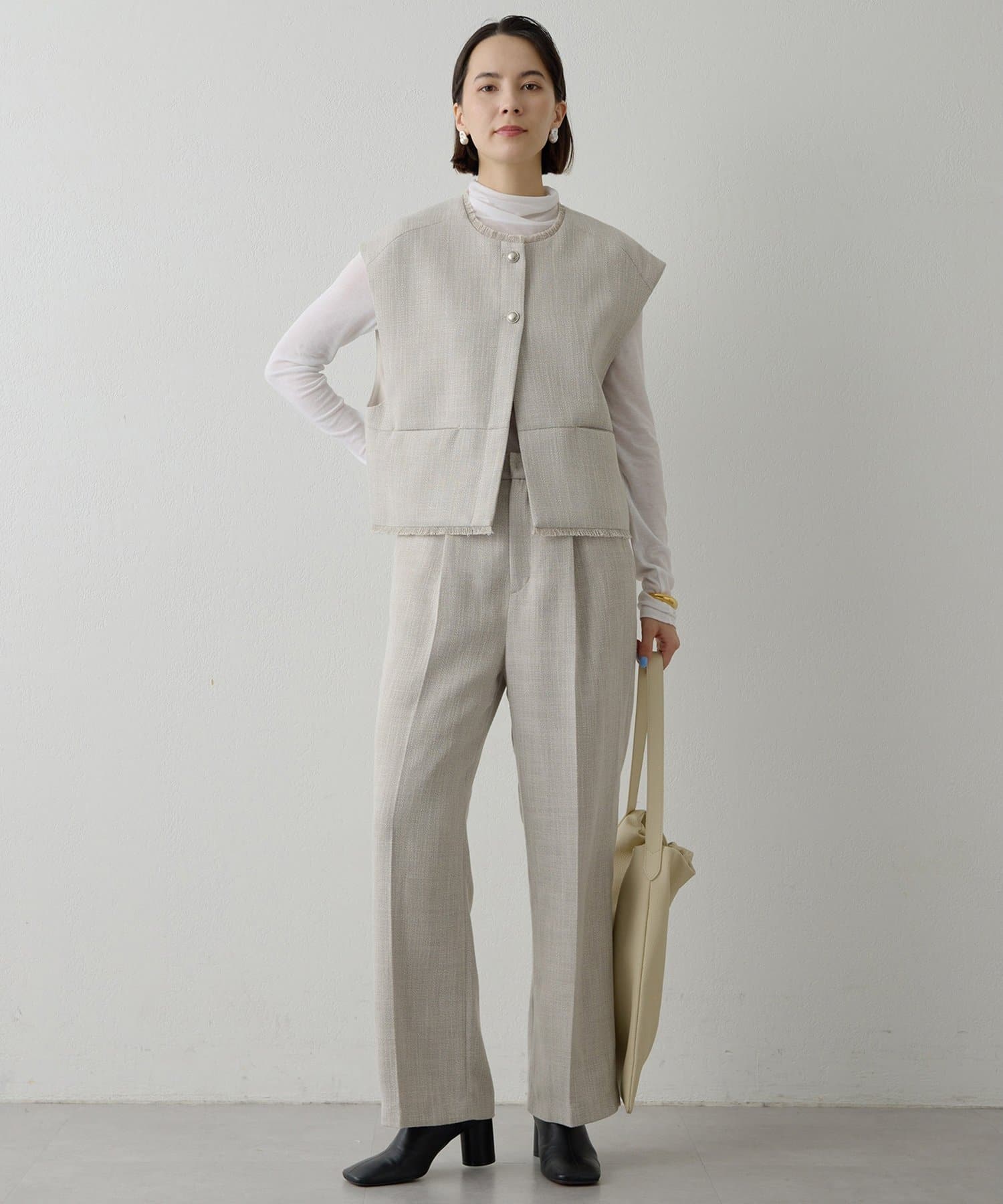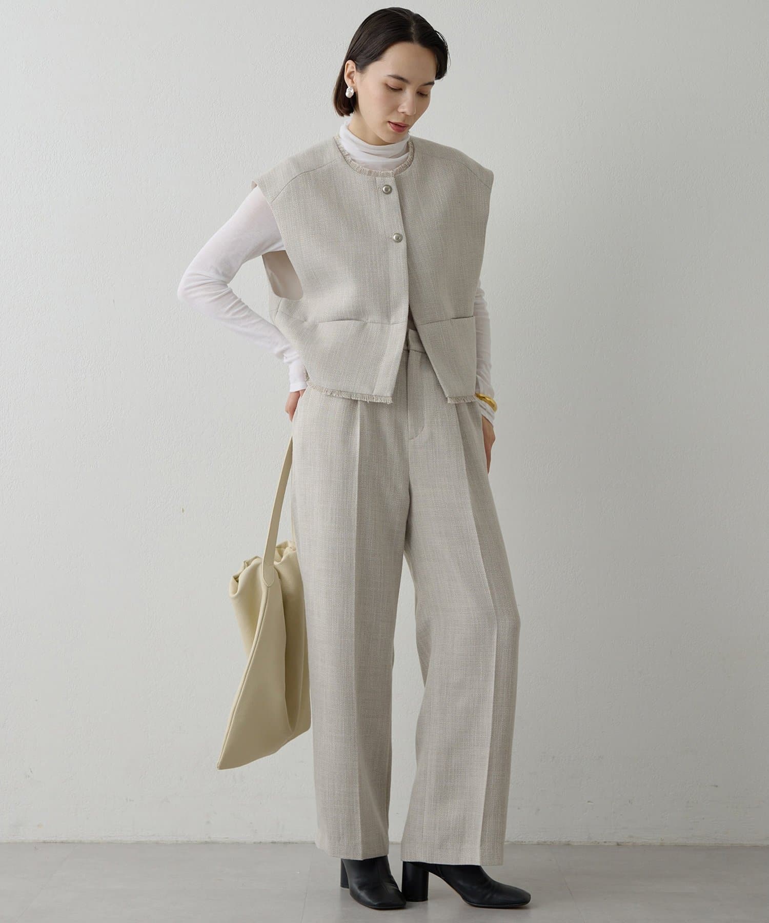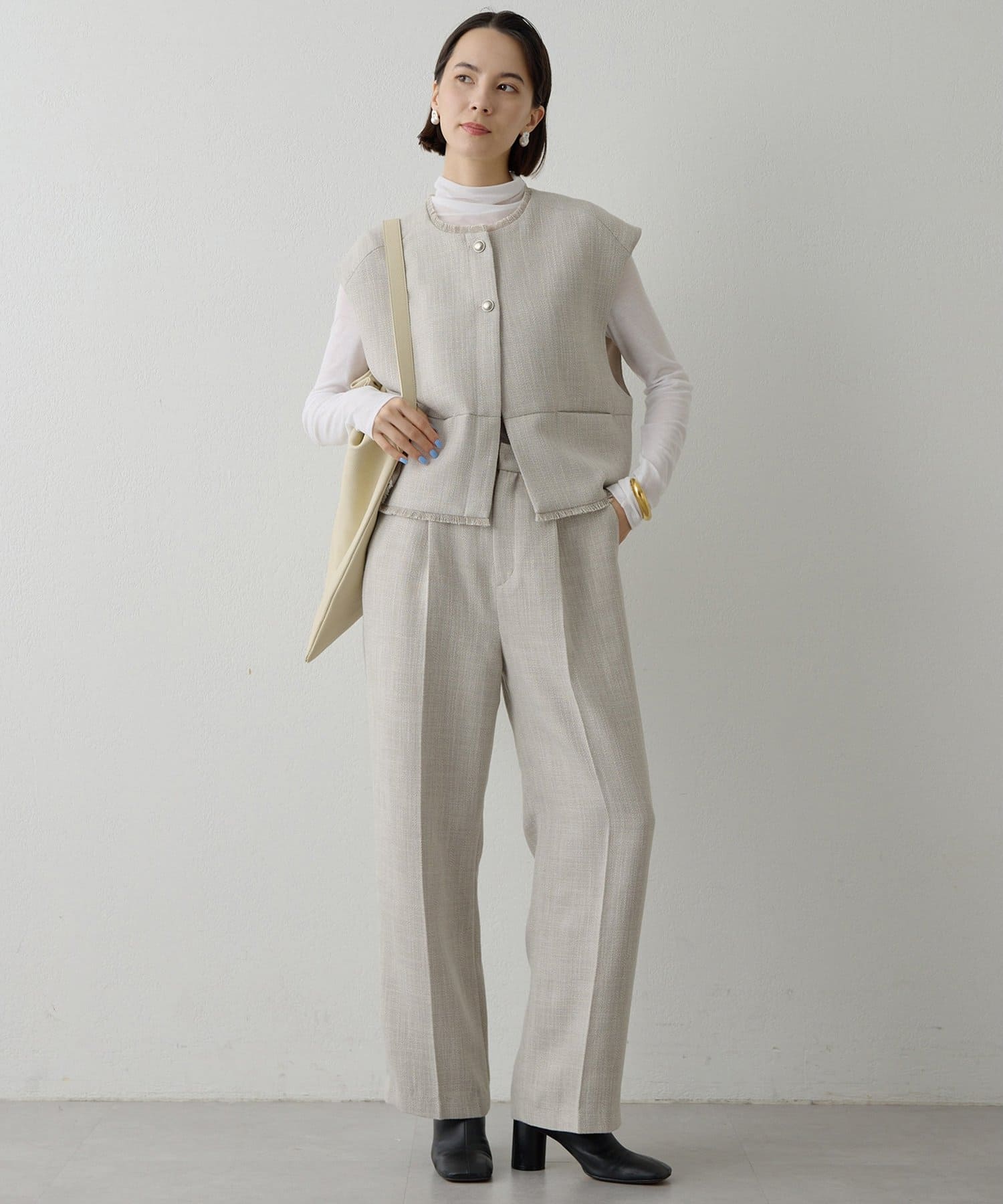 ■【THE PAUSE】ツイードショートジレ(ブランド品番:WGP1052507A0001)とのセットアップもおすすめ。