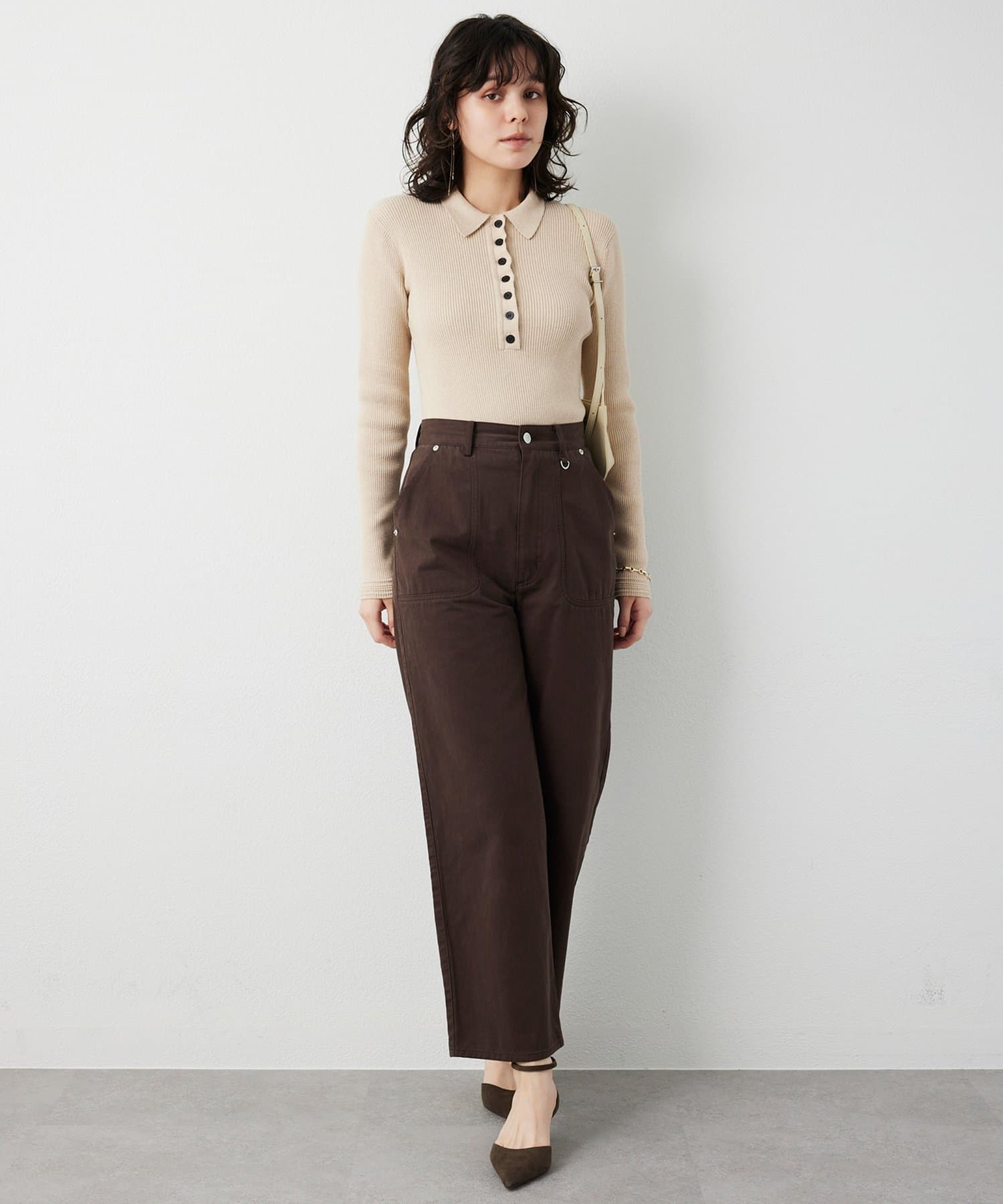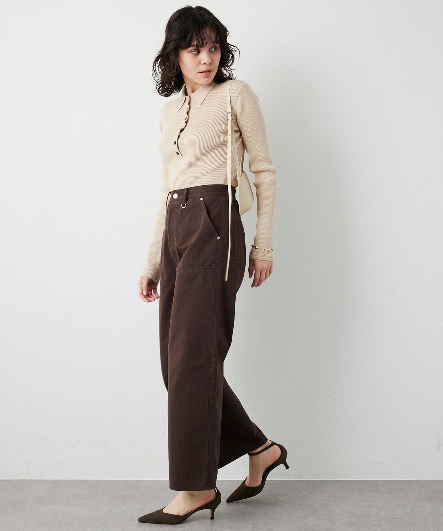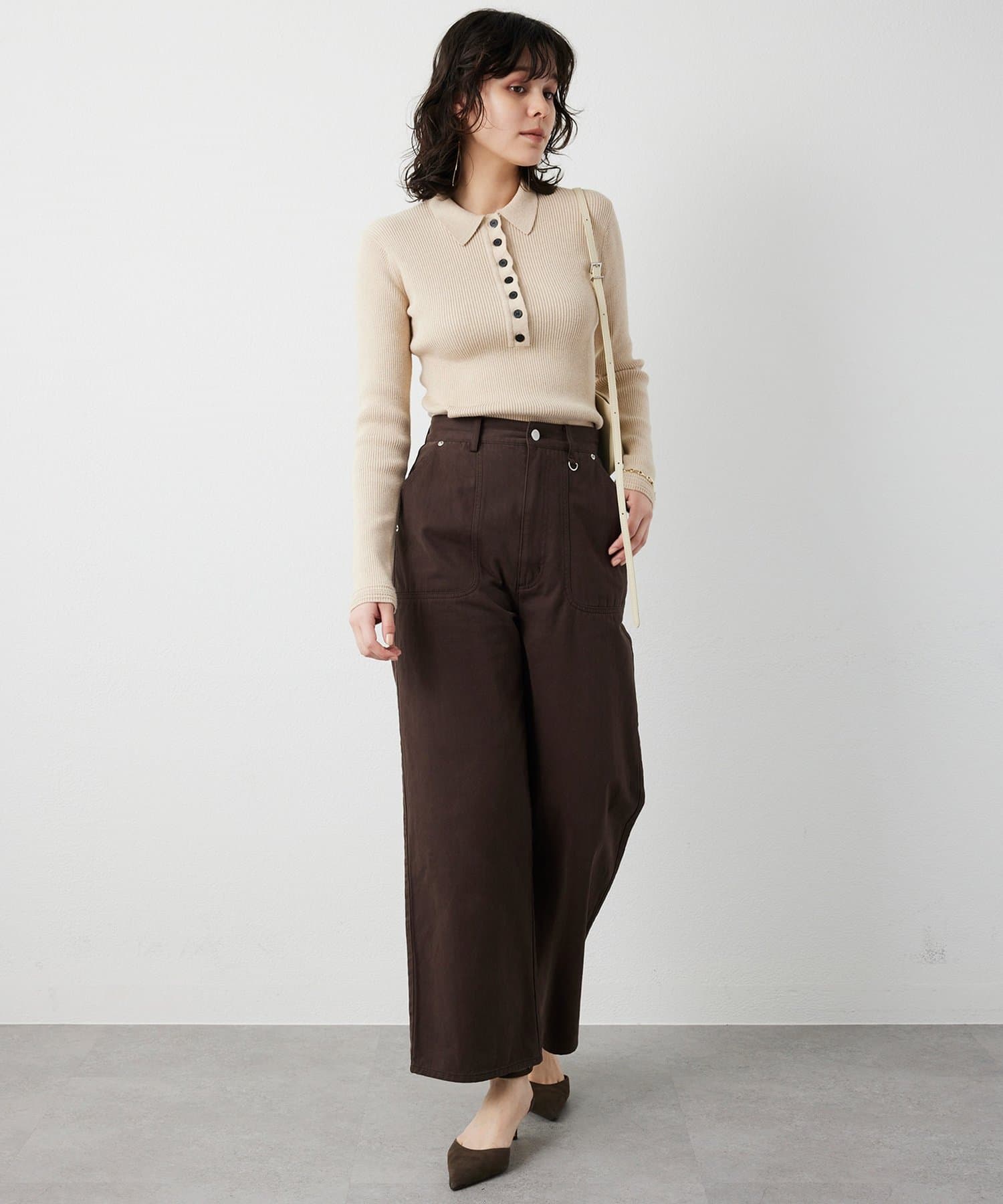 ■程よくゆとりのあるストレートのワイドレッグで、ウエストは股上を深めにしてすっきりと見えるシルエットに。