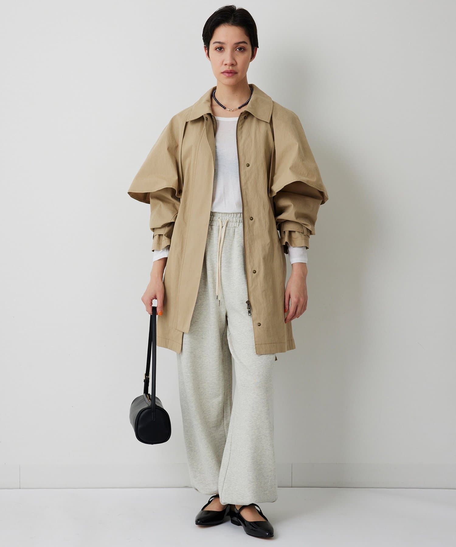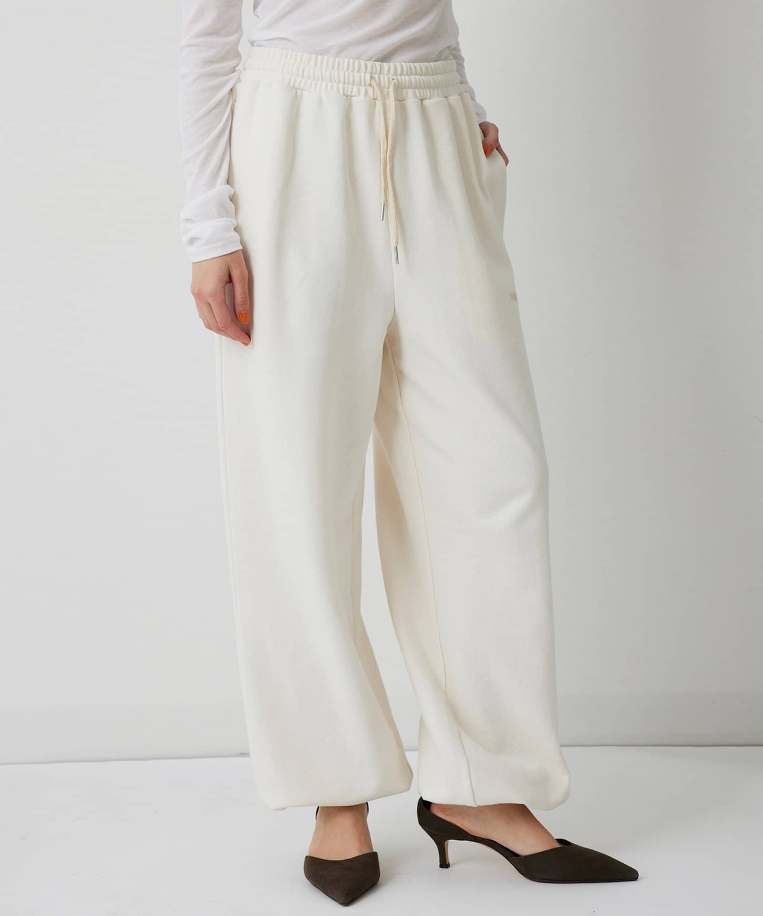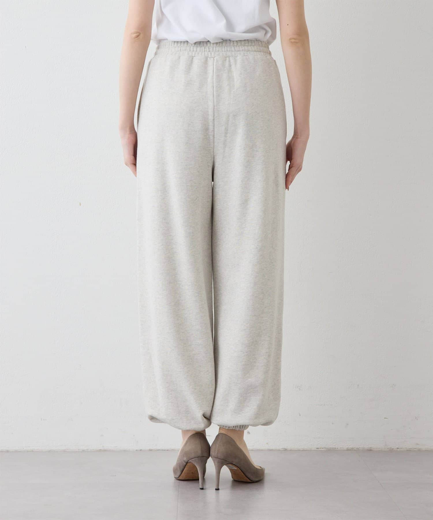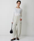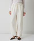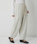 ■やや広めにした裾をゴムできゅっと絞り、裾に溜まるバルーンシルエットがポイントに。