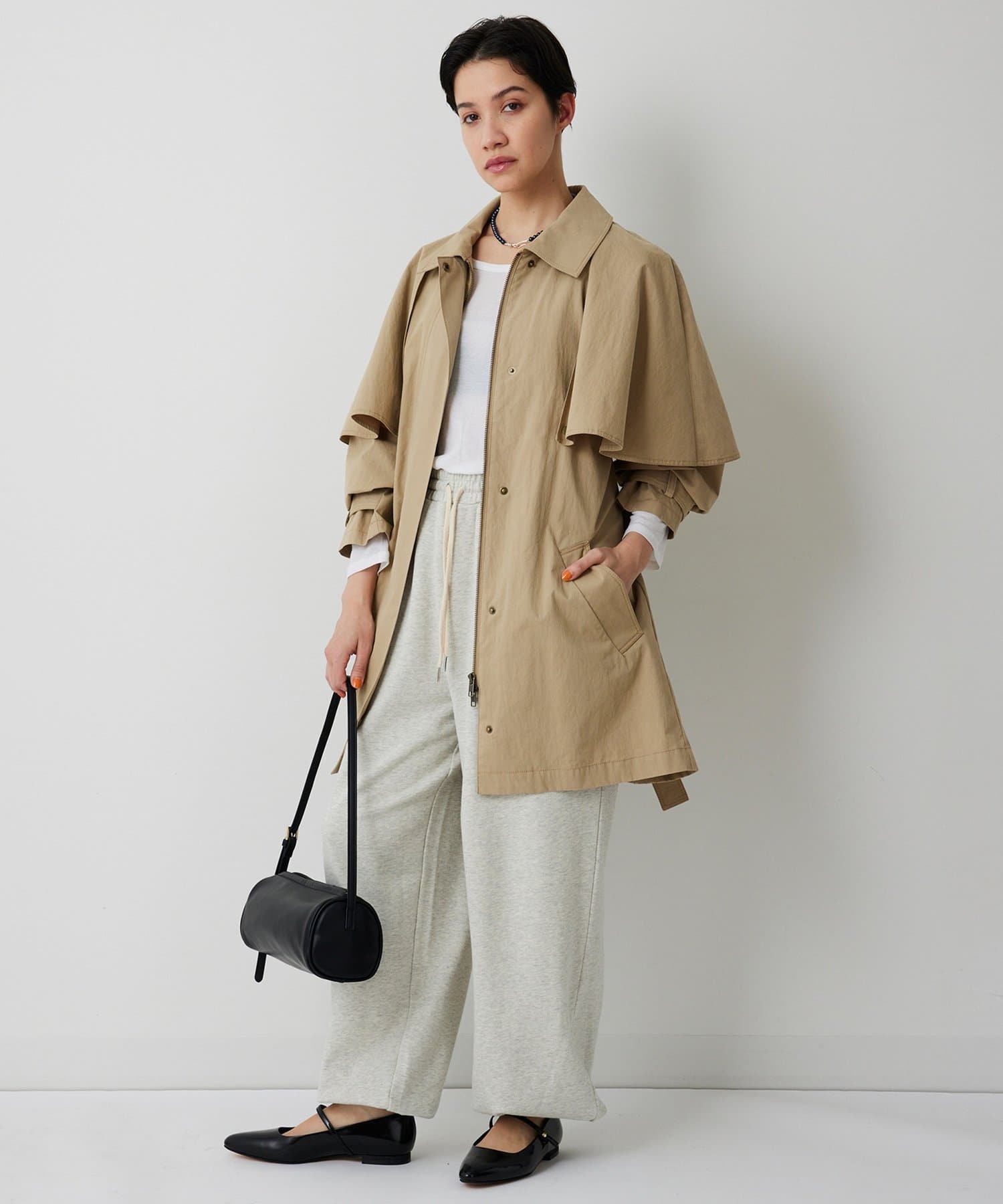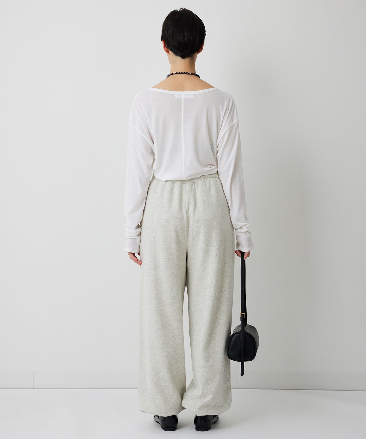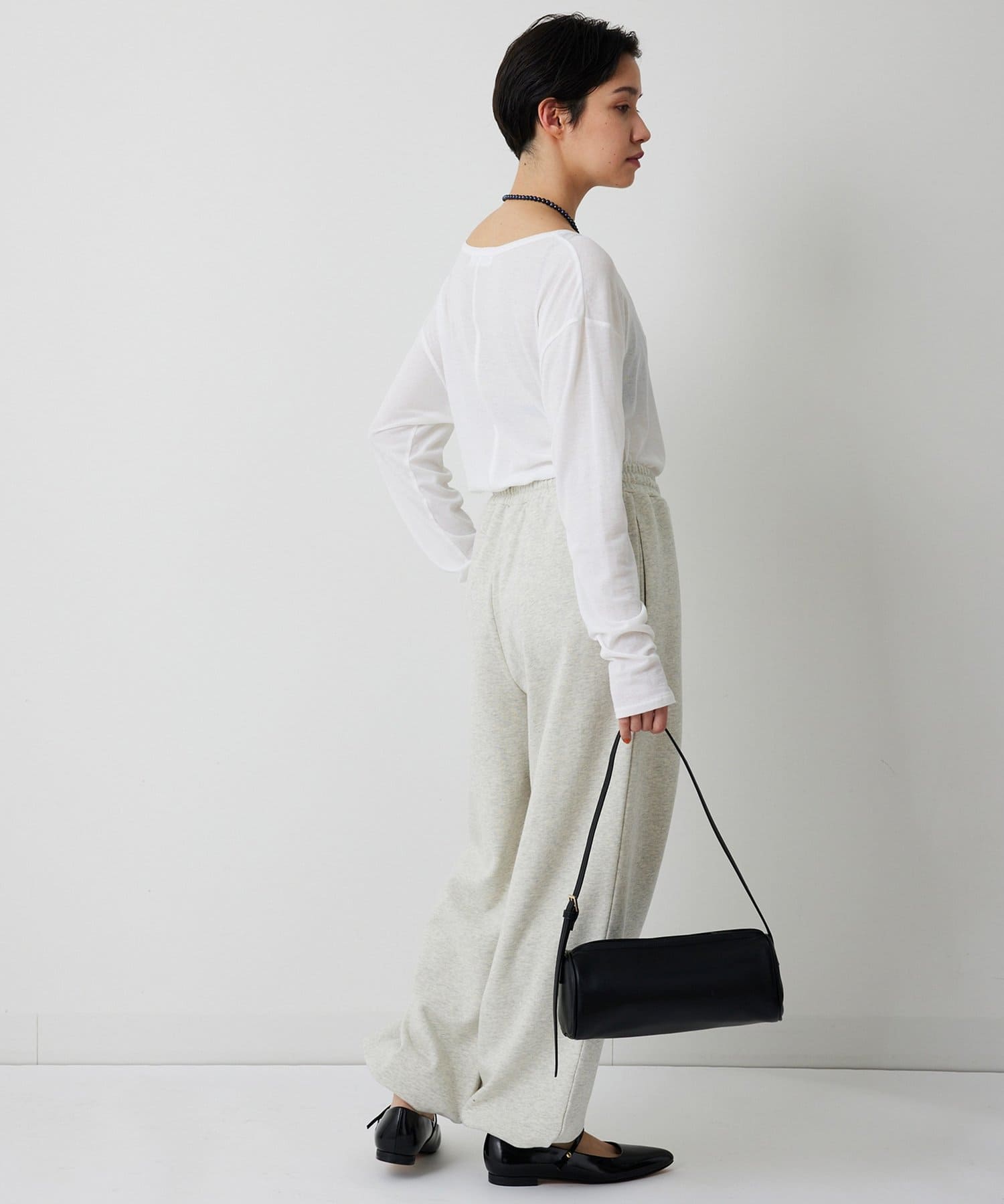 ■やや広めにした裾をゴムできゅっと絞り、裾に溜まるバルーンシルエットがポイントに。