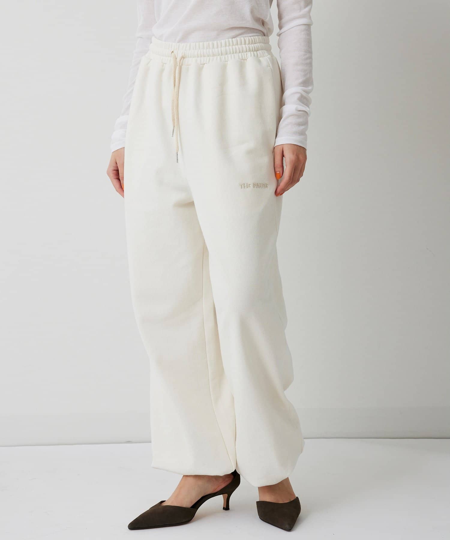 ■オリジナルのブランドロゴ刺繍をあしらったスウェットパンツ。