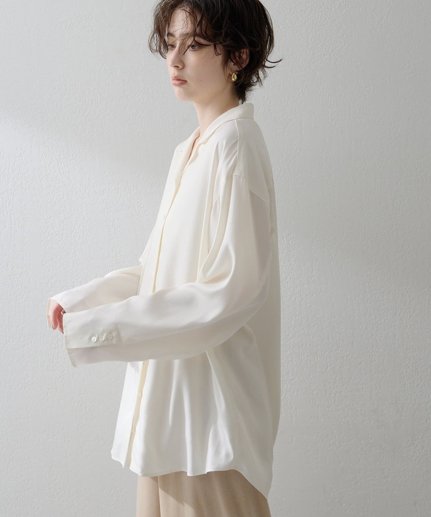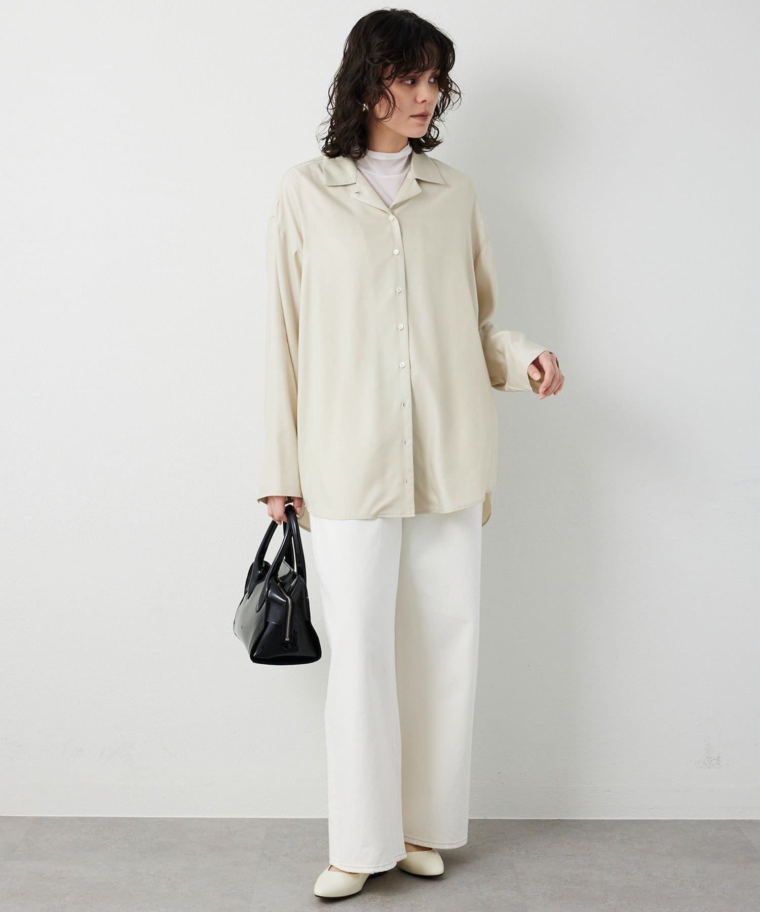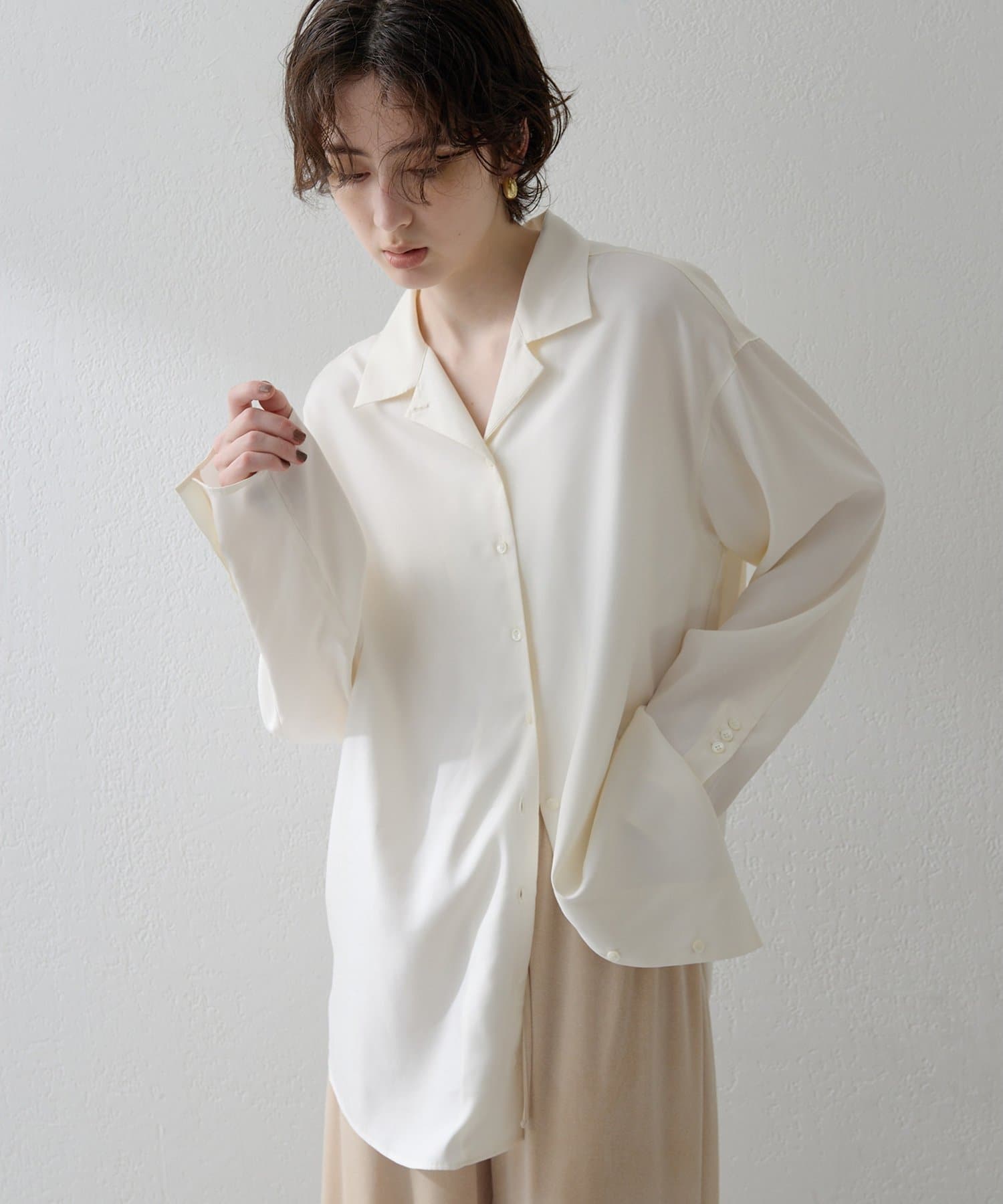 ■開襟やカフスの無い袖のデザインが程よい抜け感をプラスしてくれ、リラックス感のあるコーディネートに。