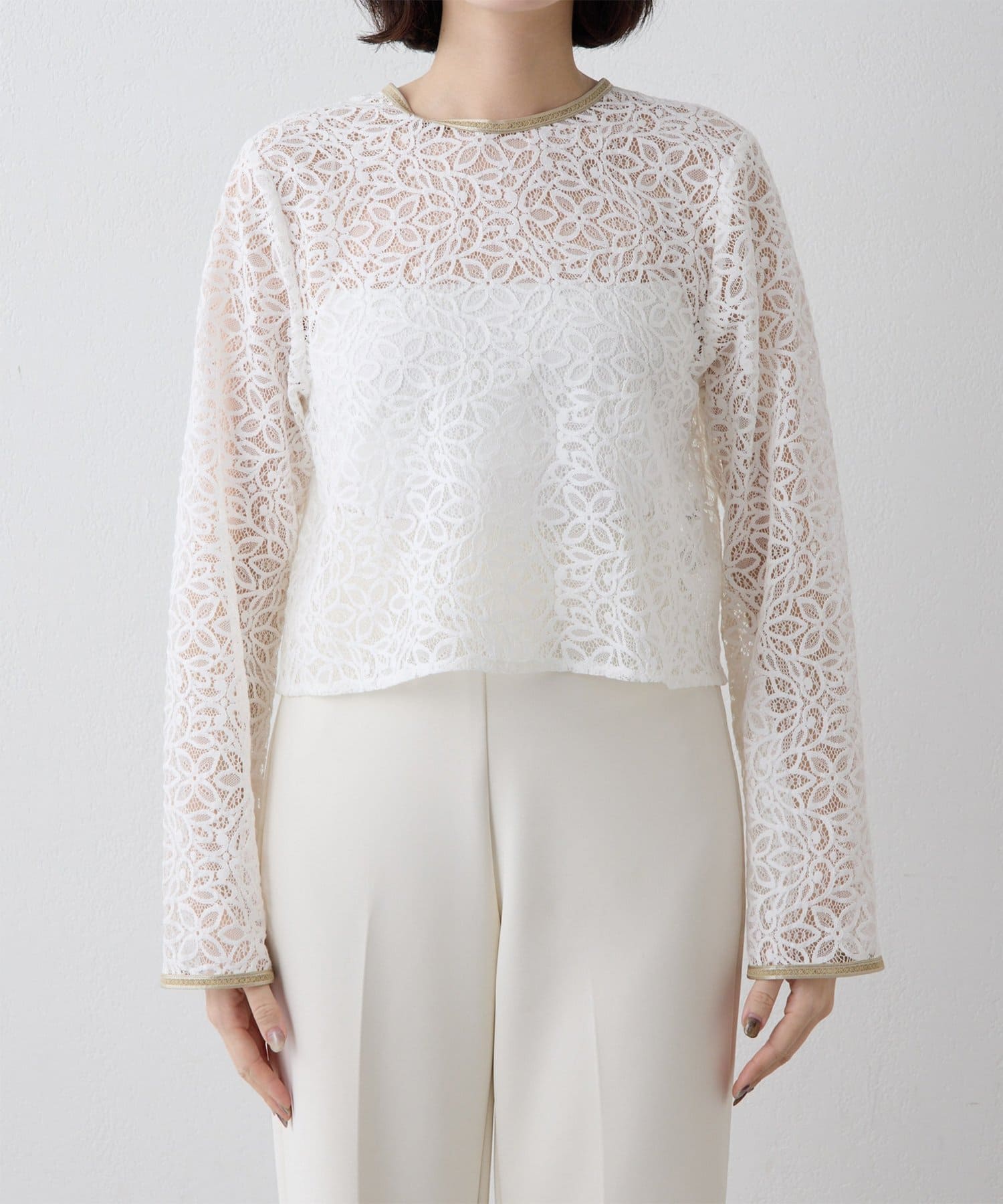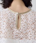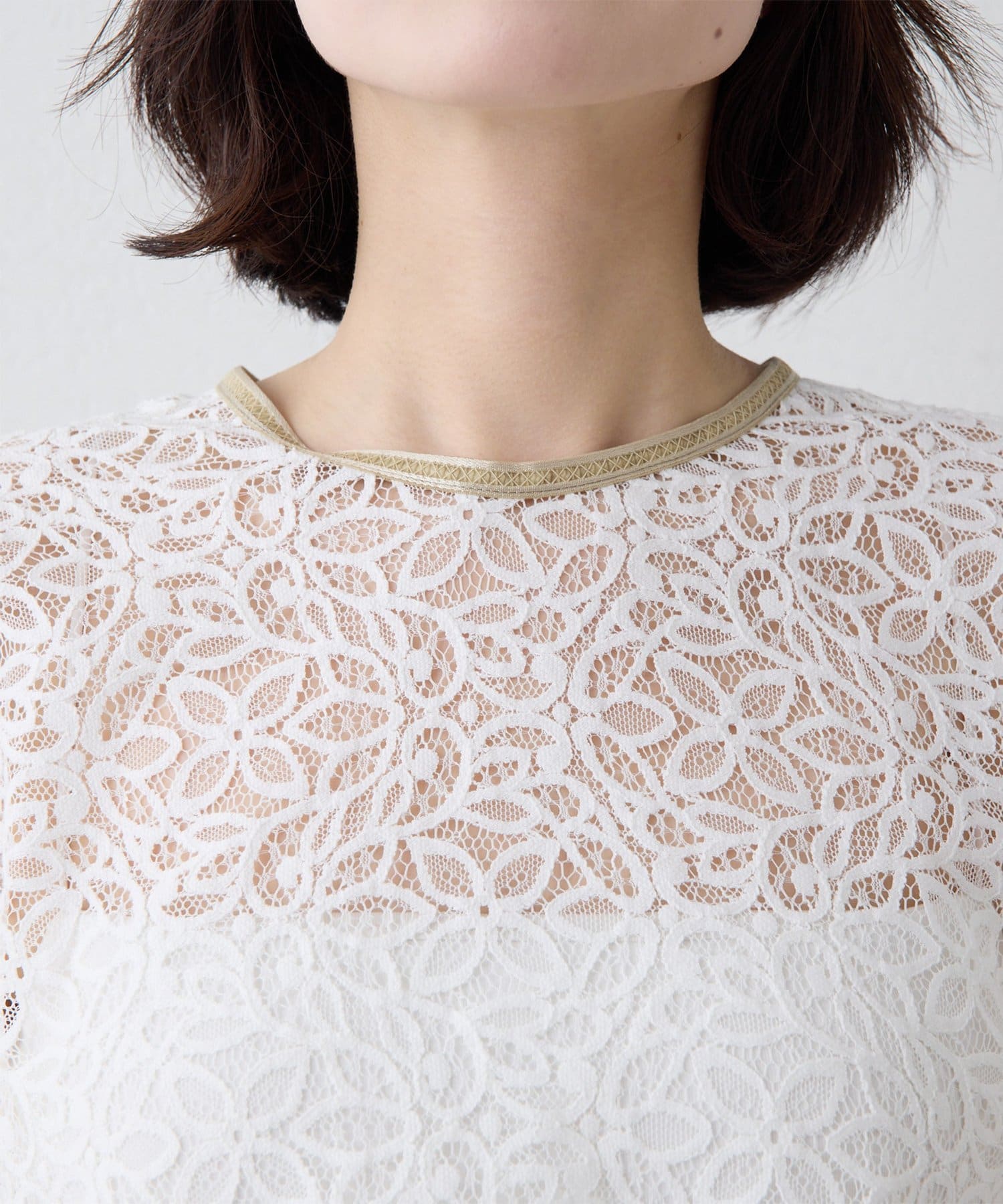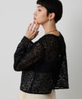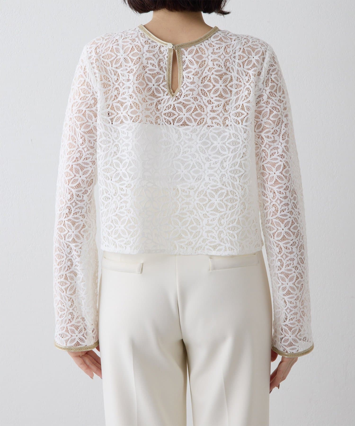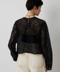 ■ボタニカル柄のレースを使用したクルーネックブラウス。