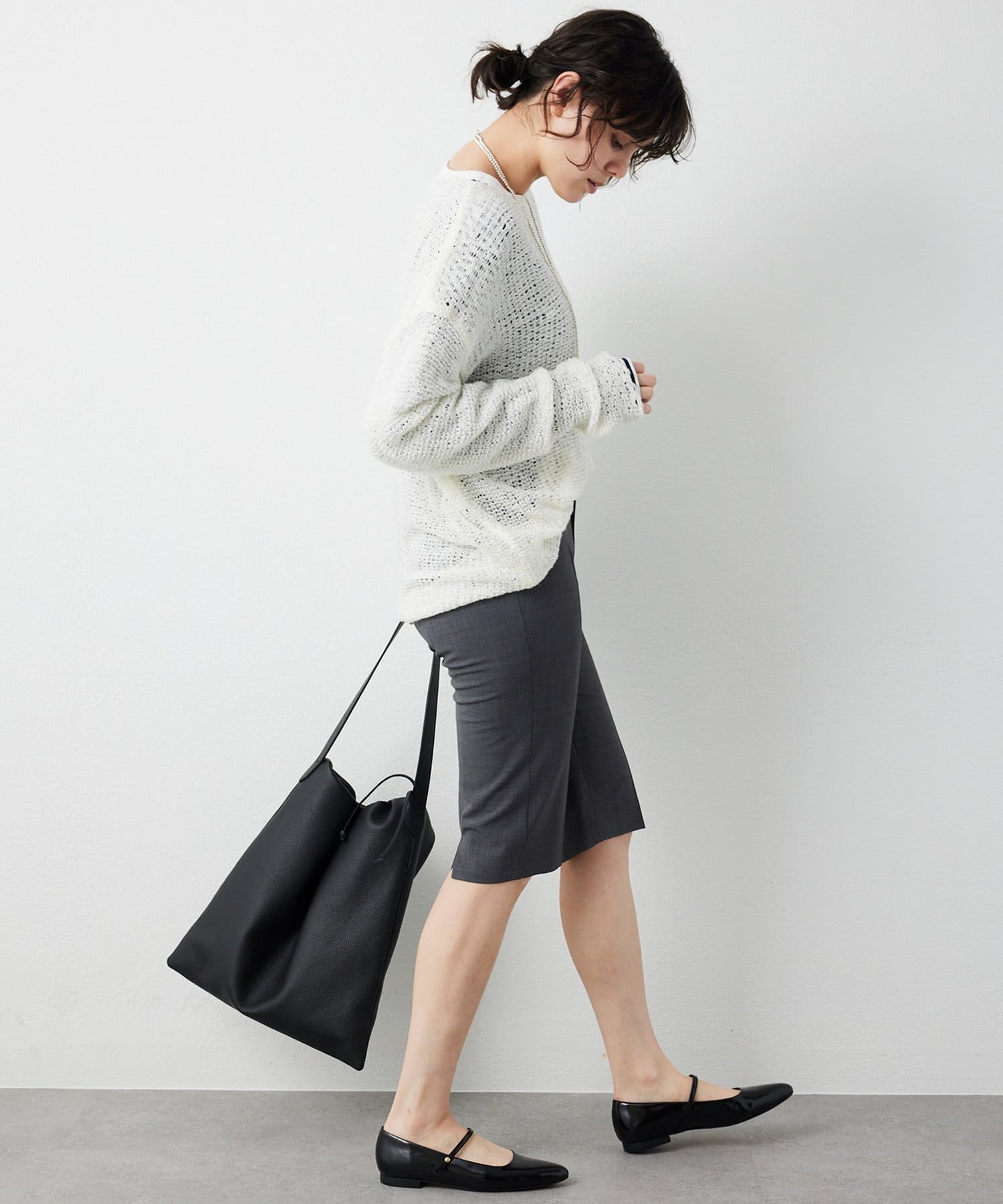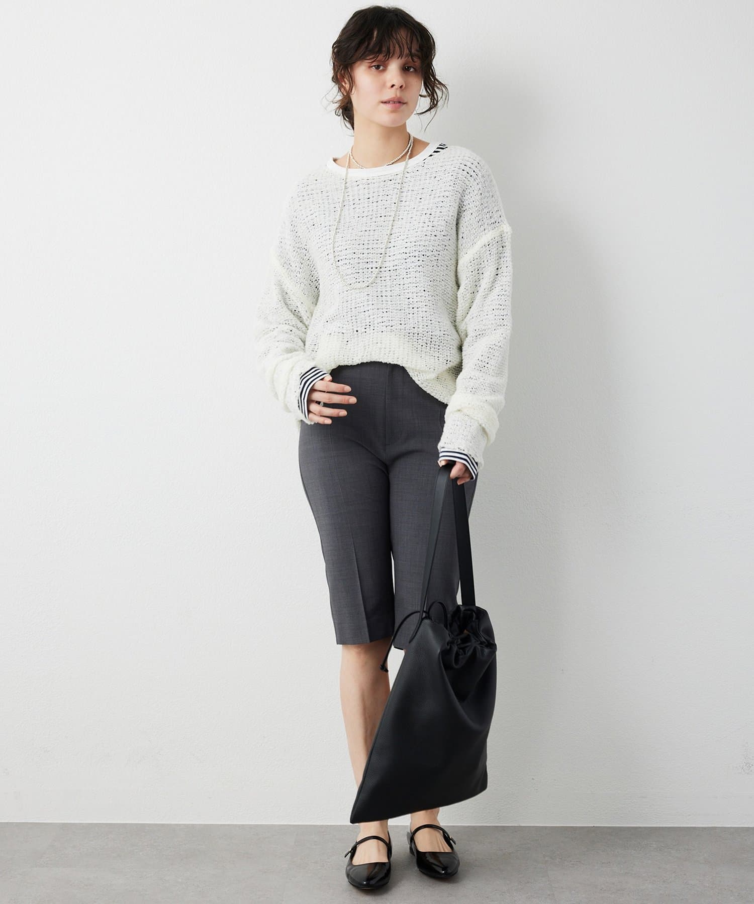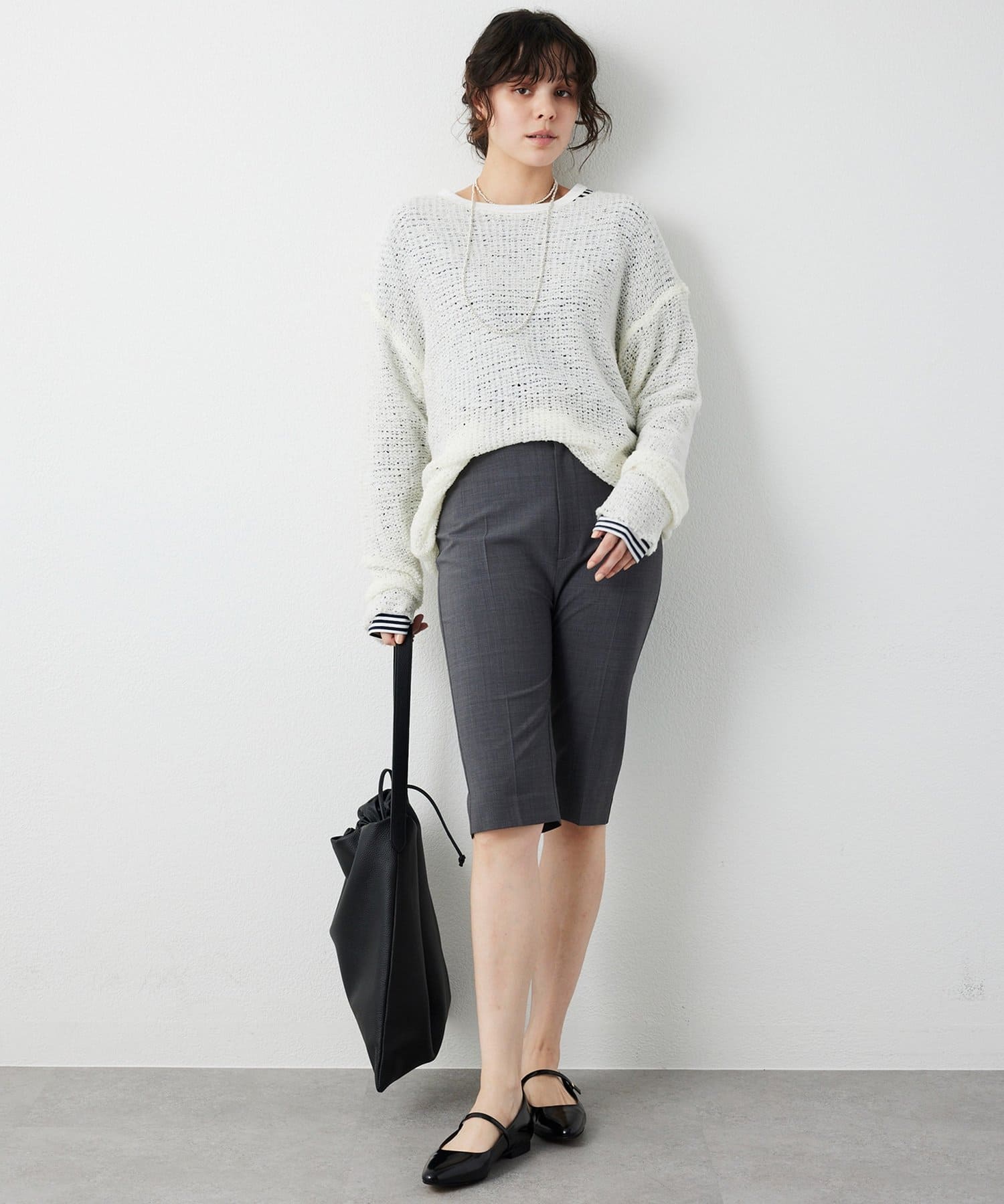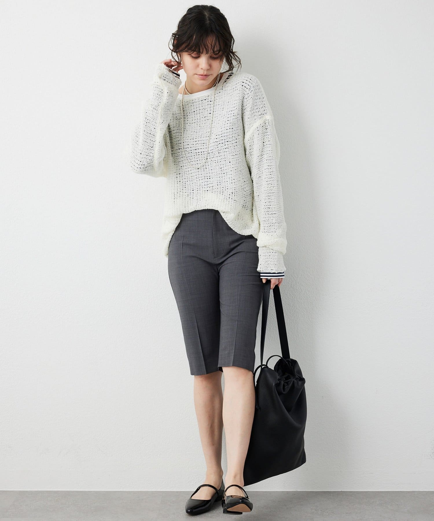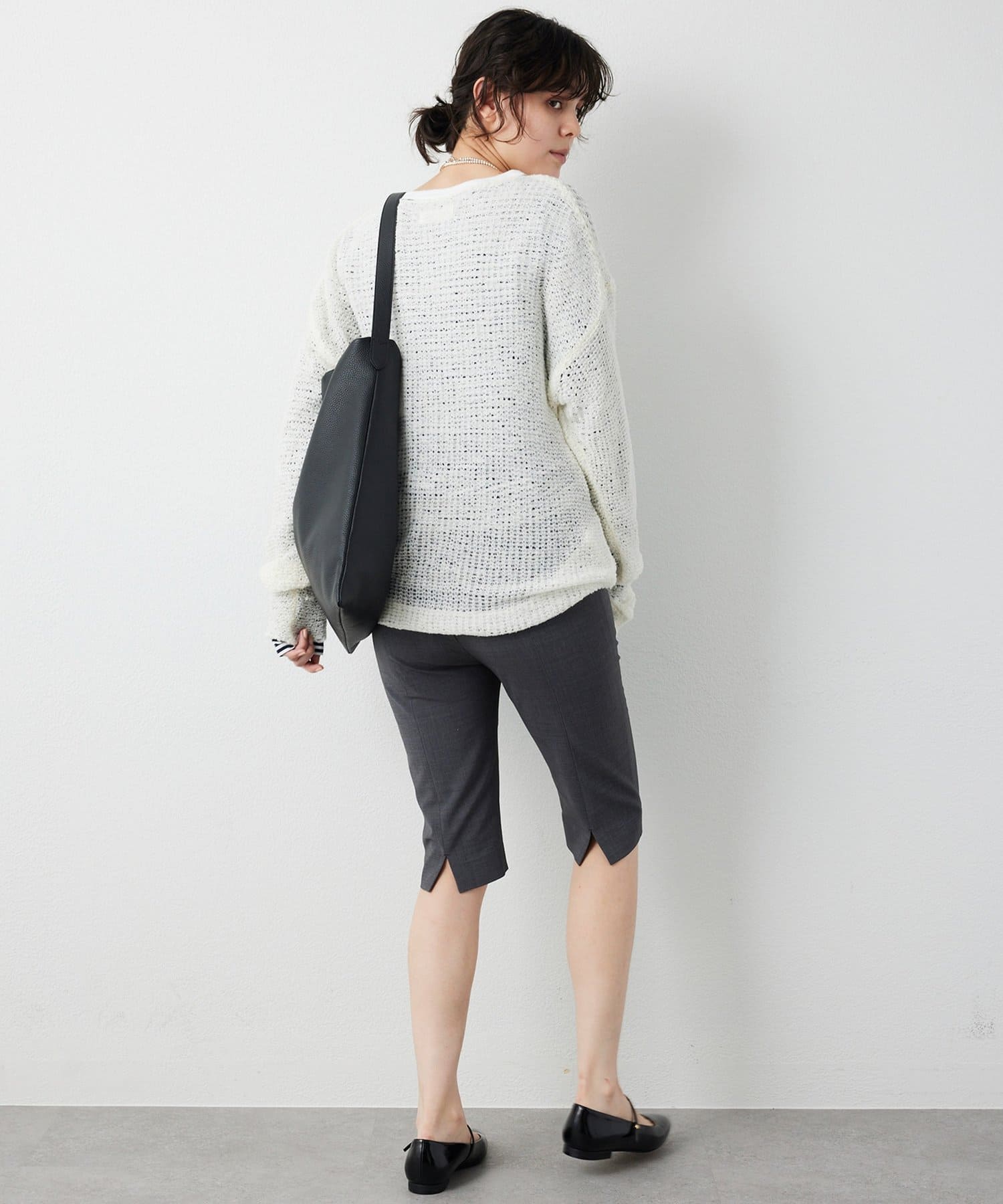 ■やや横に開いたネックラインが女性らしく、顔周りに抜け感をプラス。