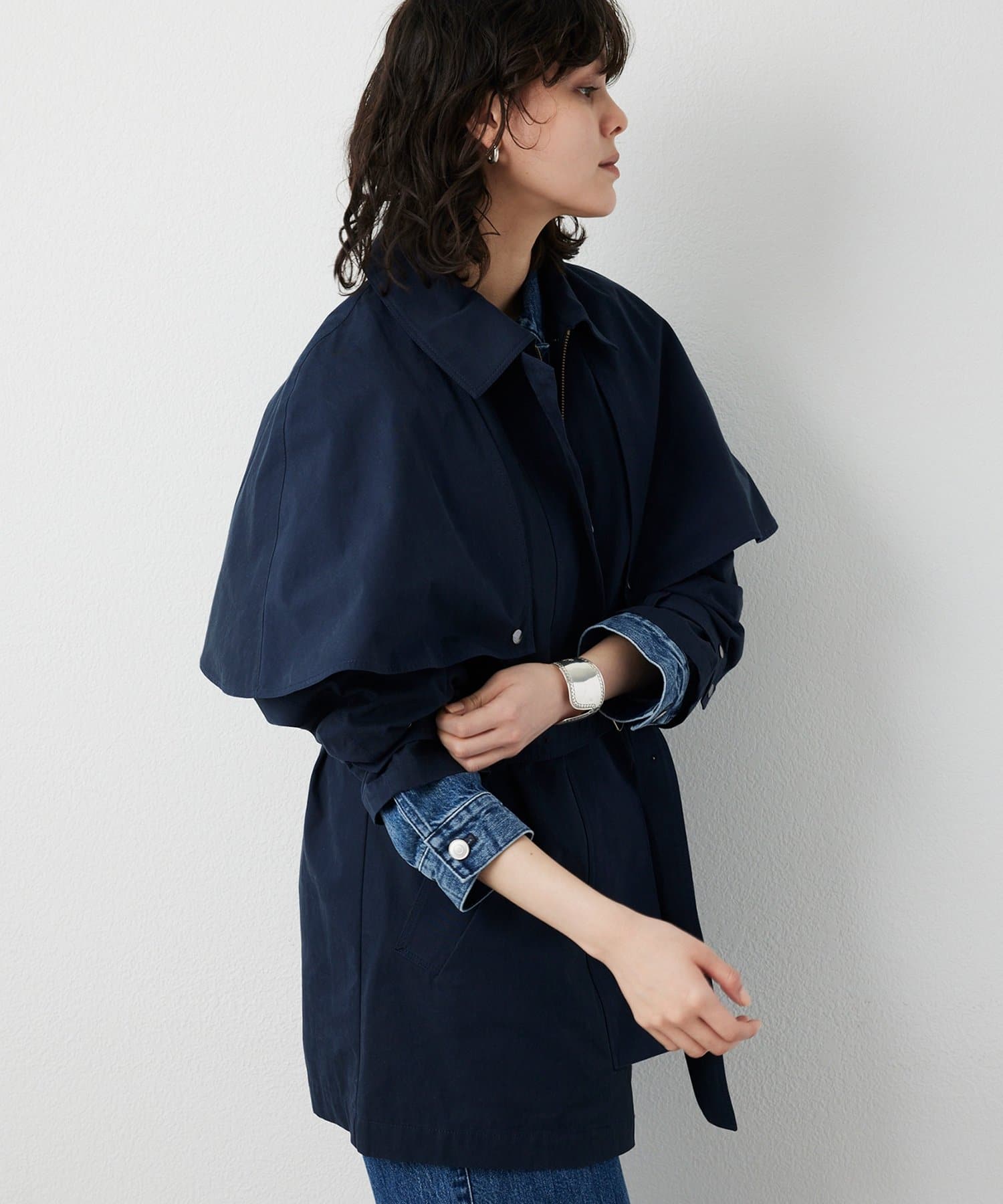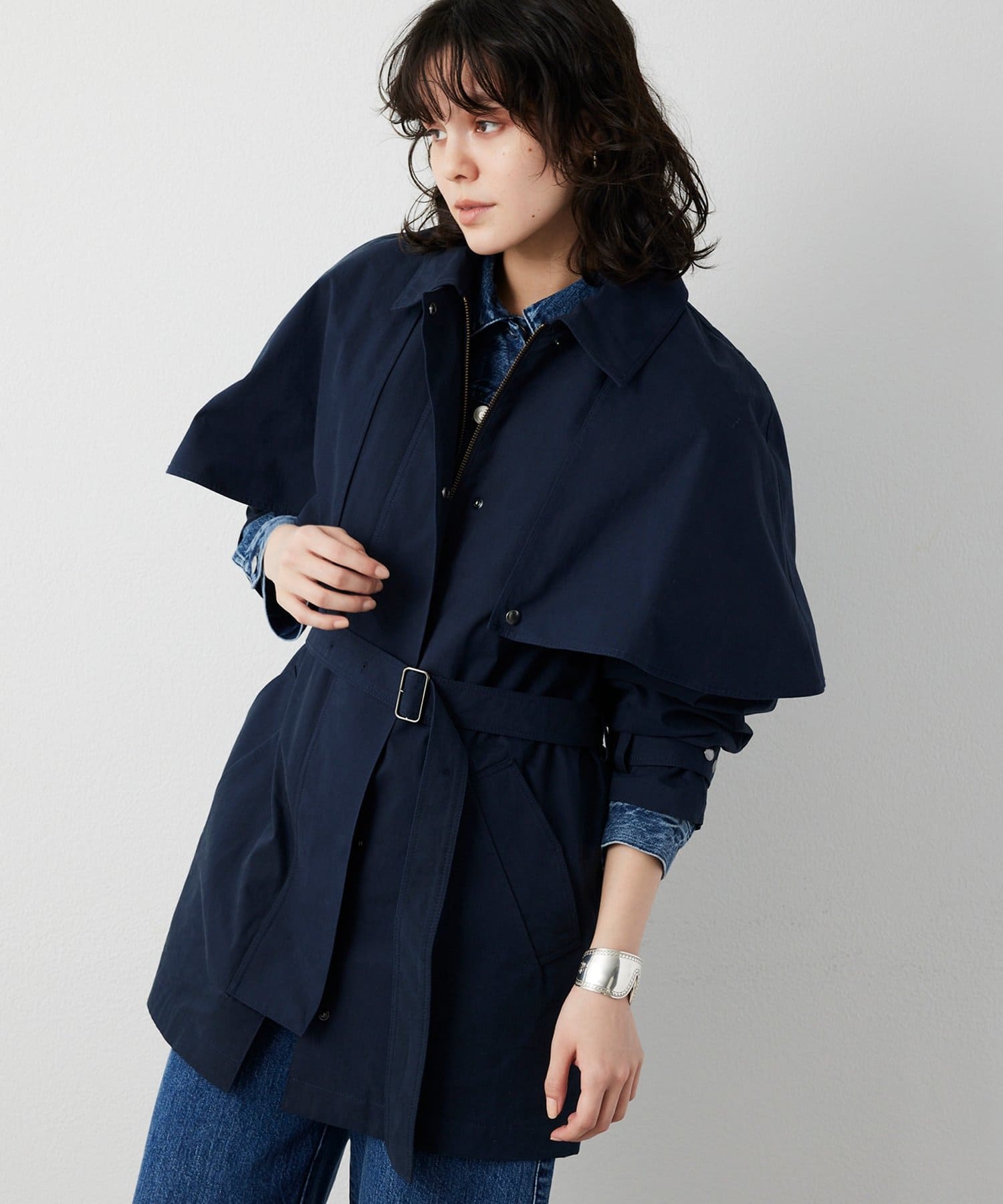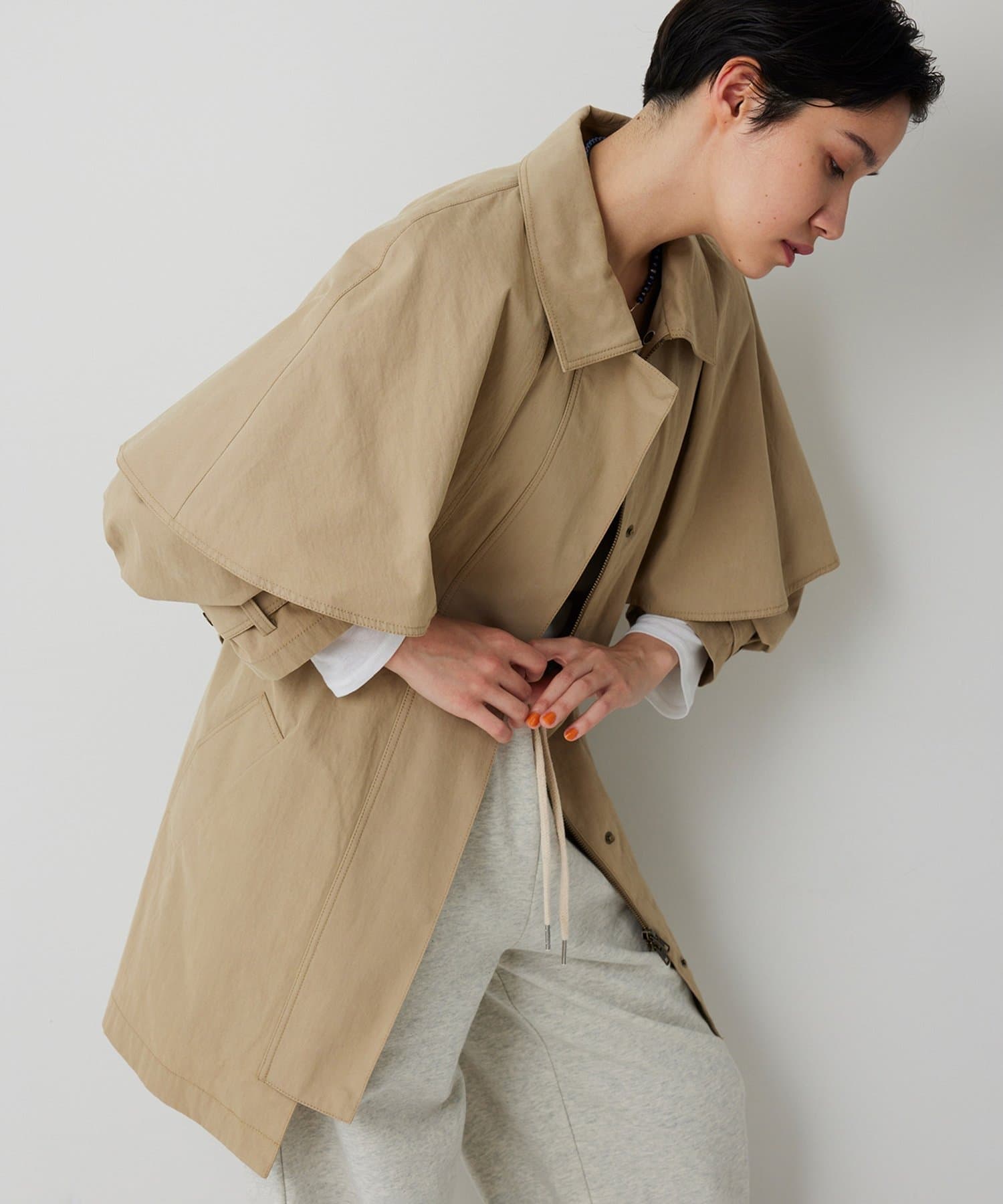 ■ウエストベルトをギュッと締めると、ケープのフレア感が際立ち特徴的なシルエットを楽しめるデザイン。