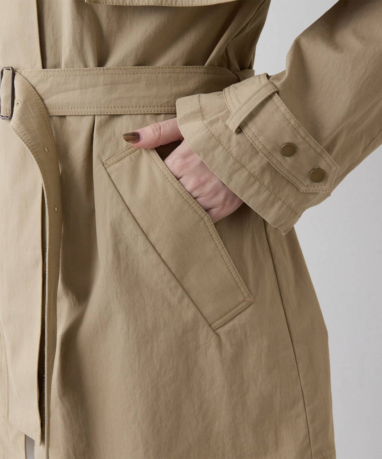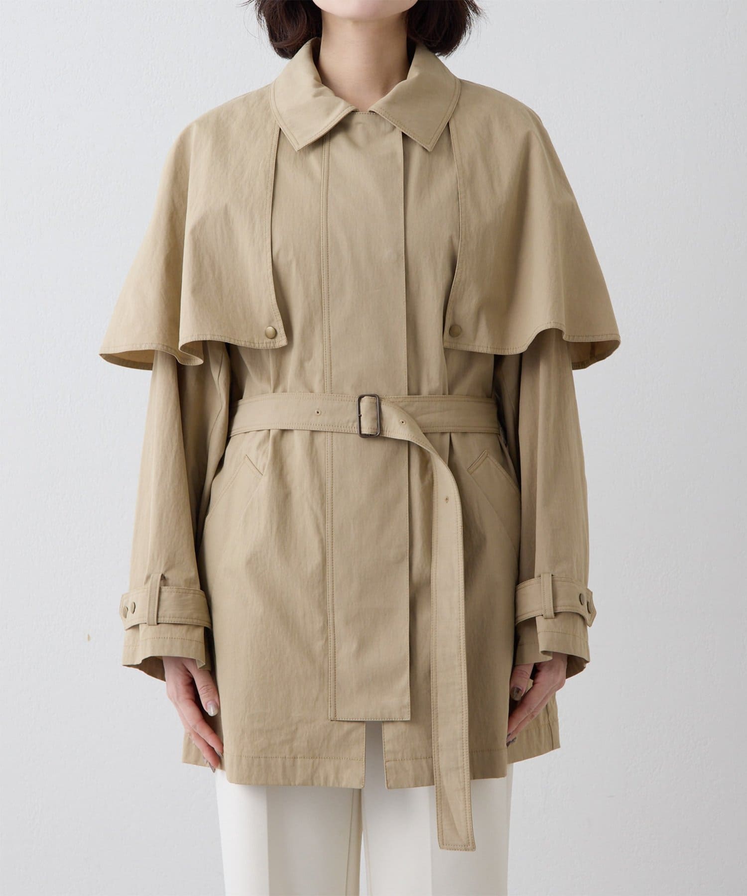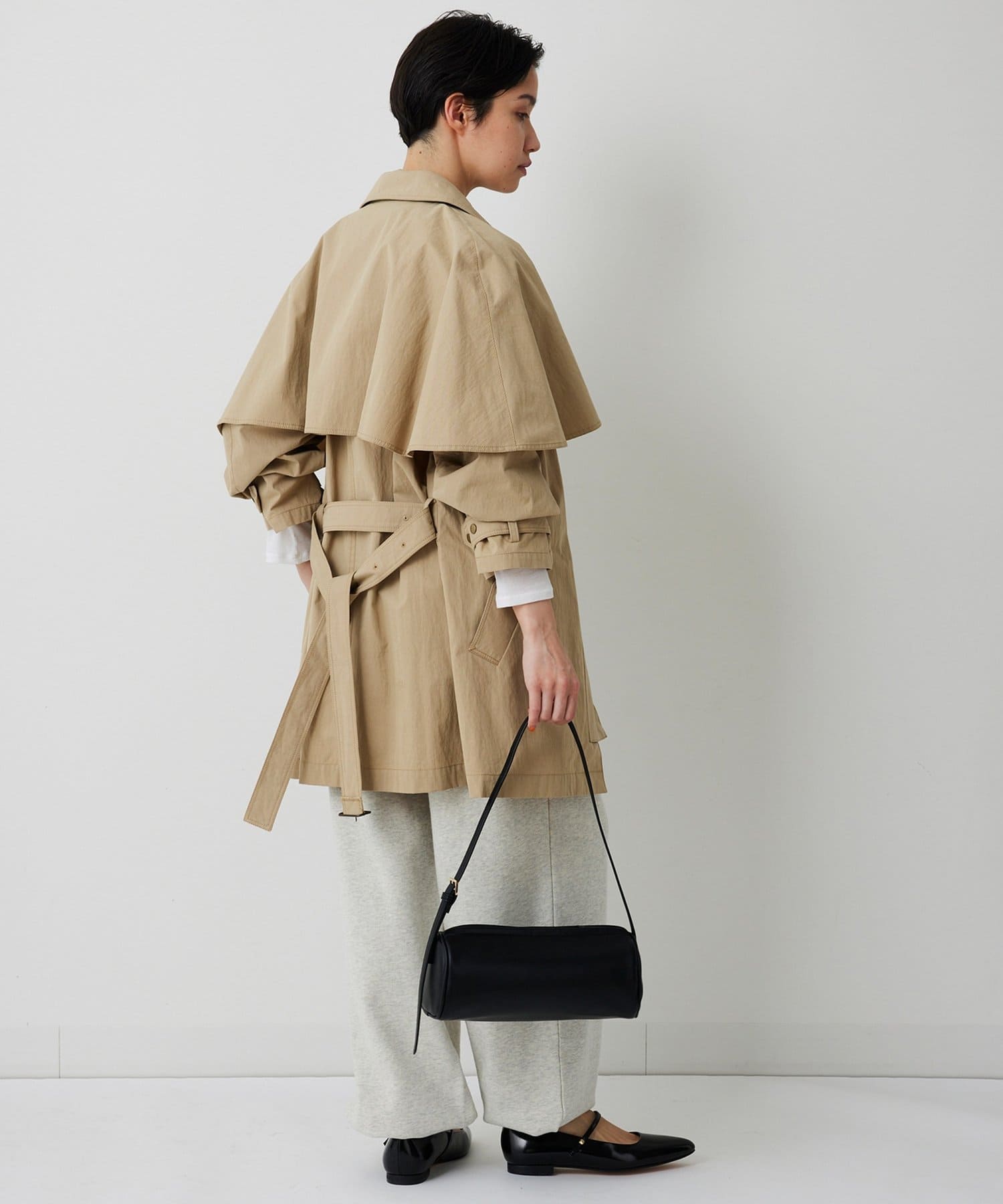 ■ウエストベルトをギュッと締めると、ケープのフレア感が際立ち特徴的なシルエットを楽しめるデザイン。