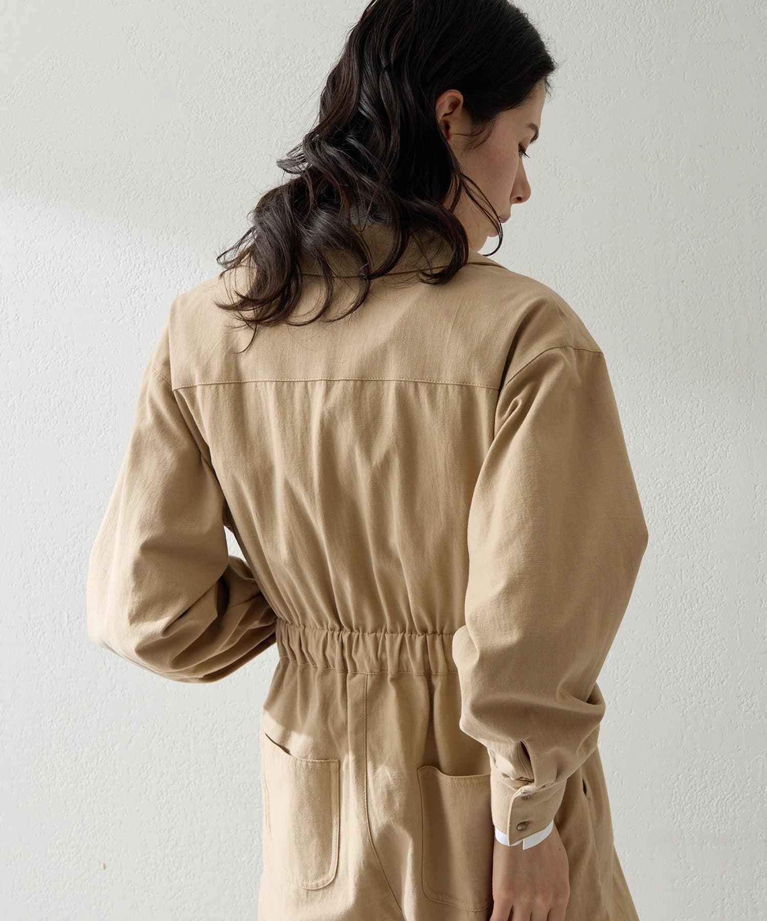 ■カイキン襟や、ウエストのドロスト、パッチポケットなど随所にデザインをちりばめた着映えする一枚。