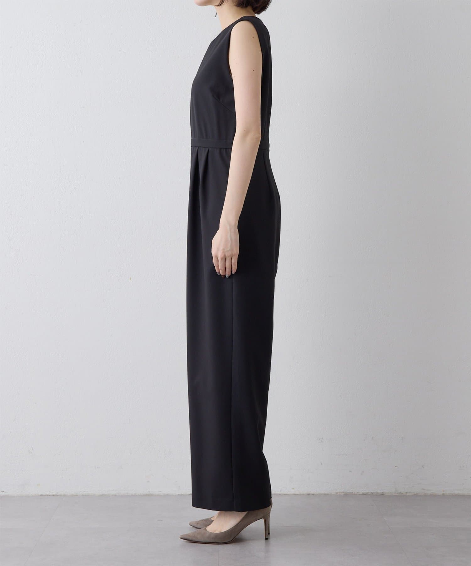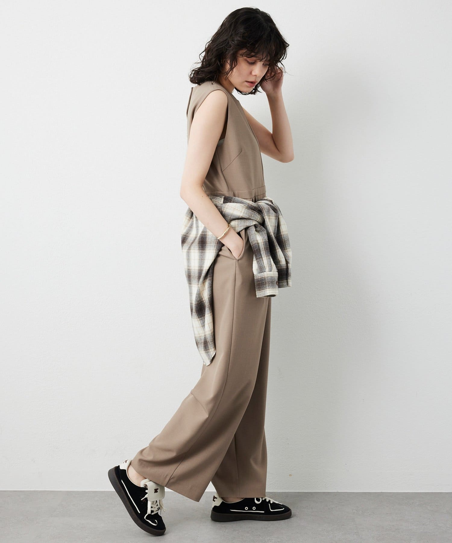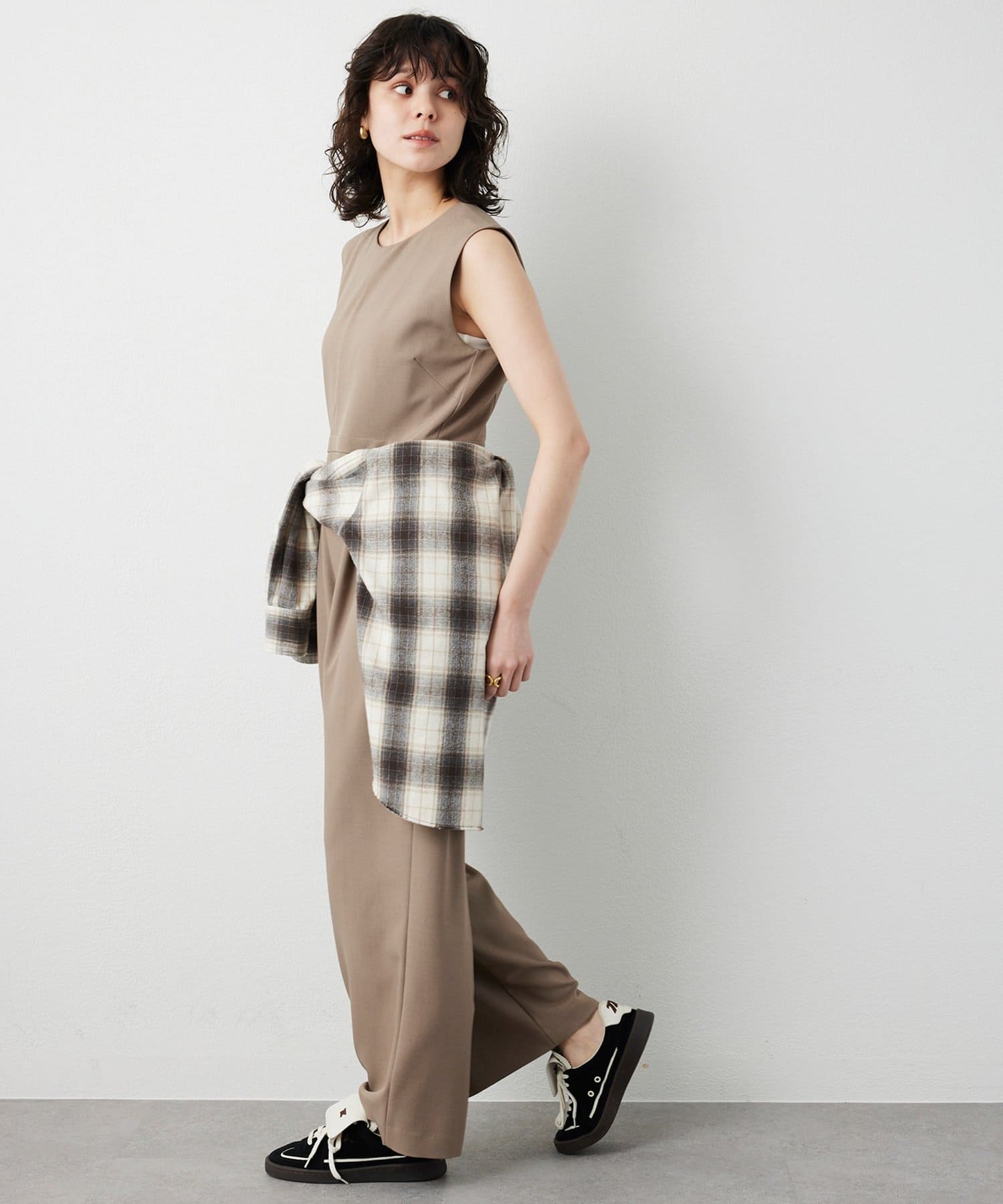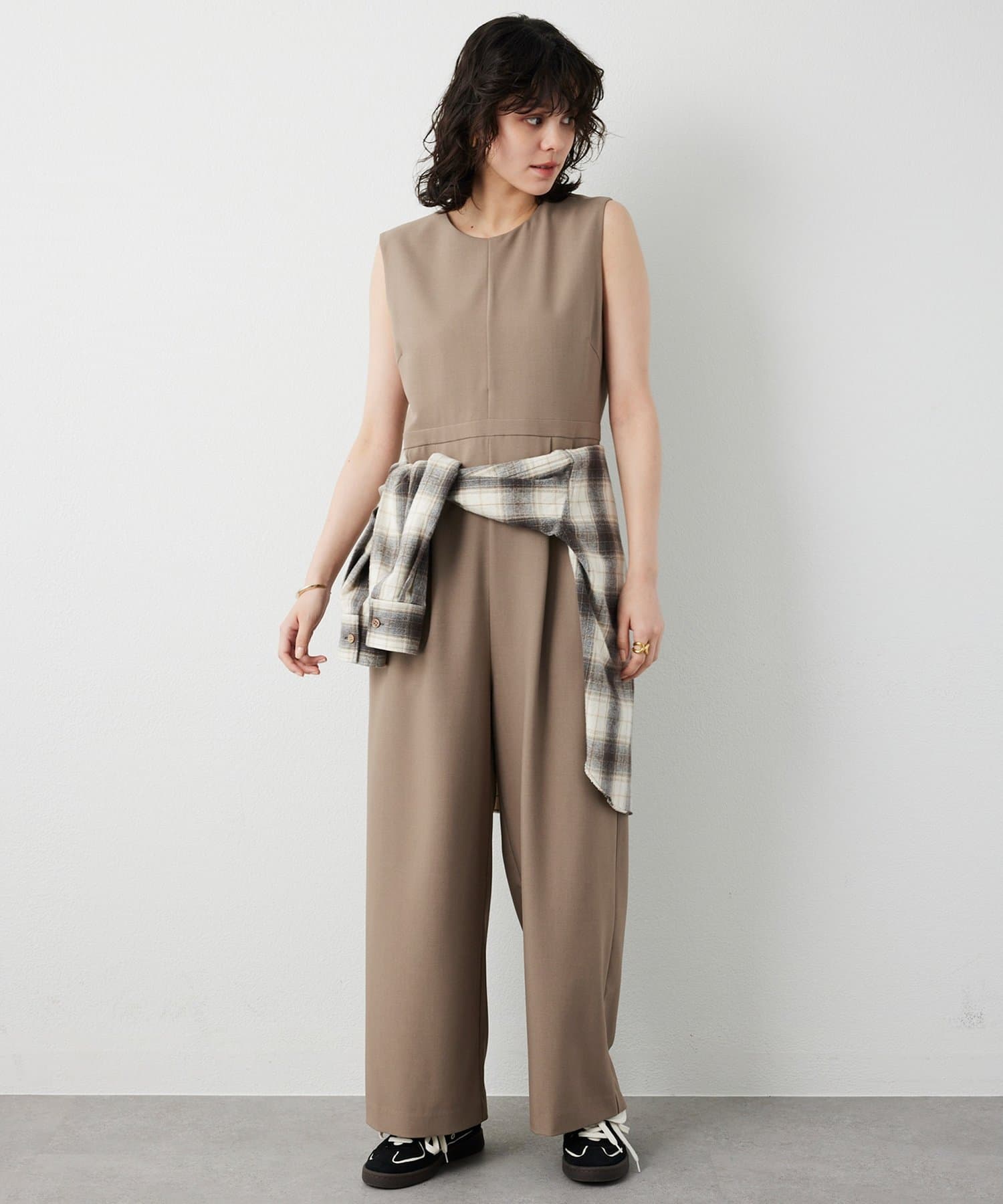 ■コンビネゾンは、ウエストにダーツを入れ程よい開きのクルーネックですっきりとした印象。
