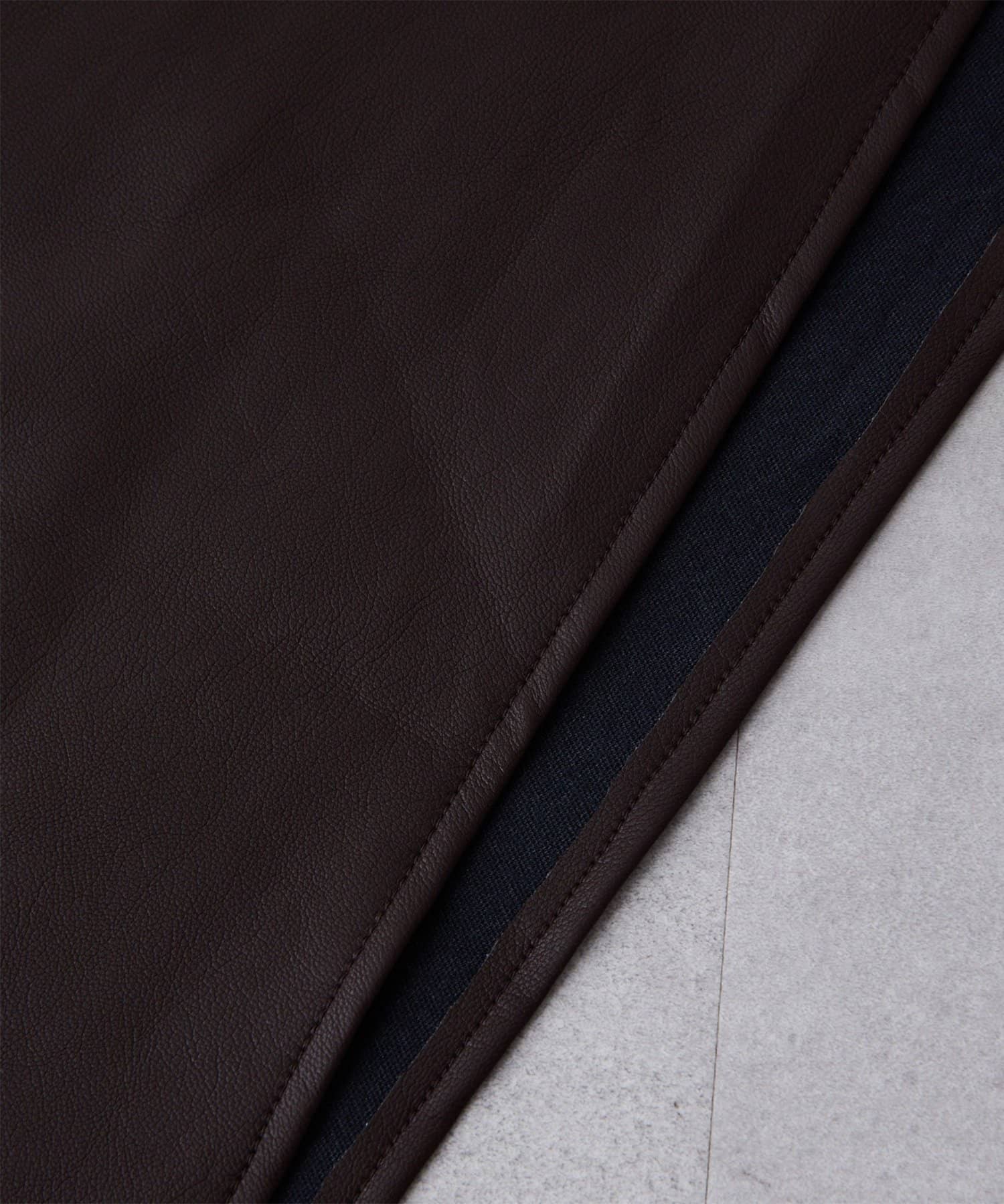 ■フェイクレザーの程よい光沢がアクセントになり、いつものコーディネートを新鮮に導いてくれるアイテム。