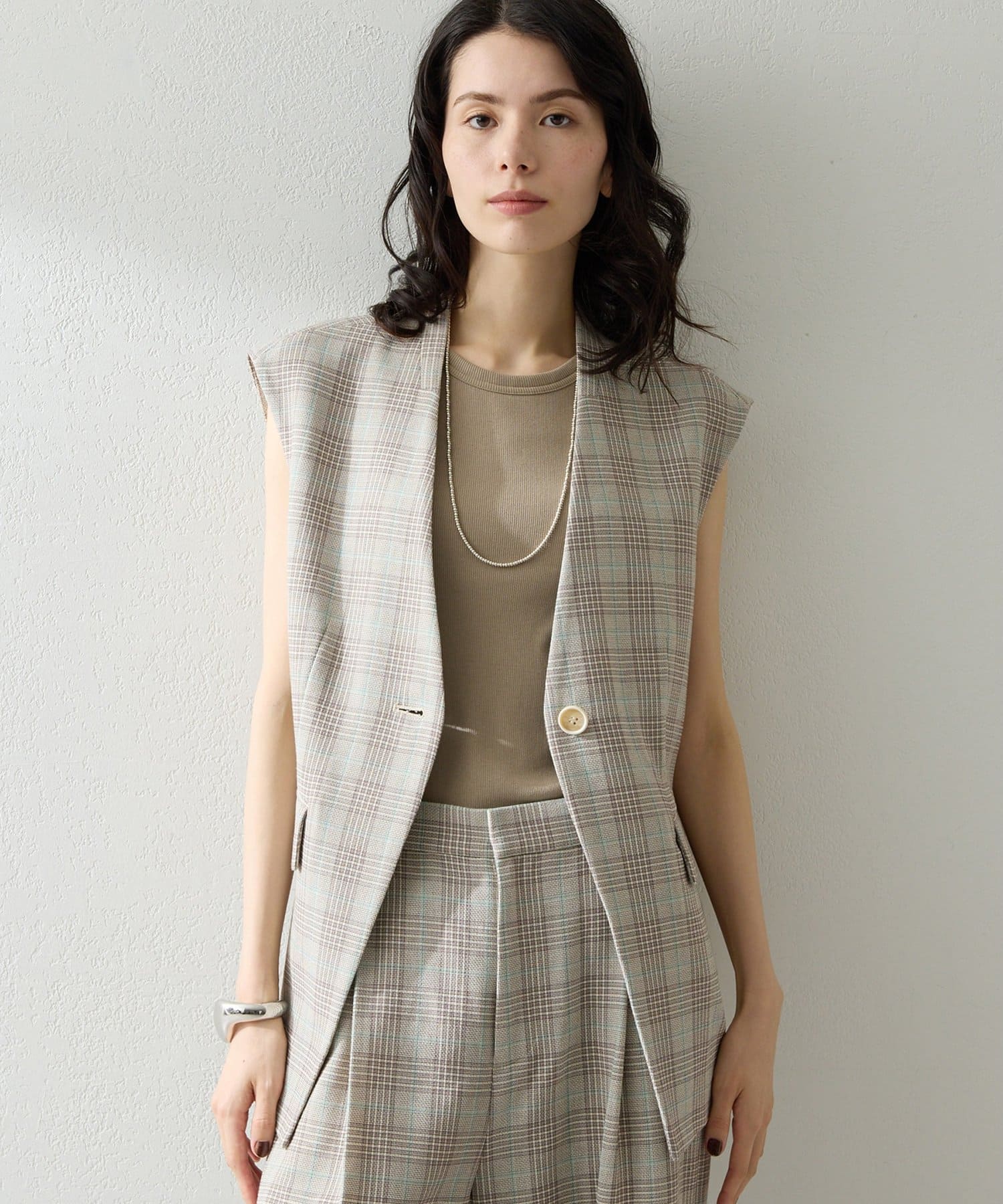 ■ヘルシーなアームホールや詰まった衿元、旬のクロップド丈がスタイルアップも叶えてくれる一枚。