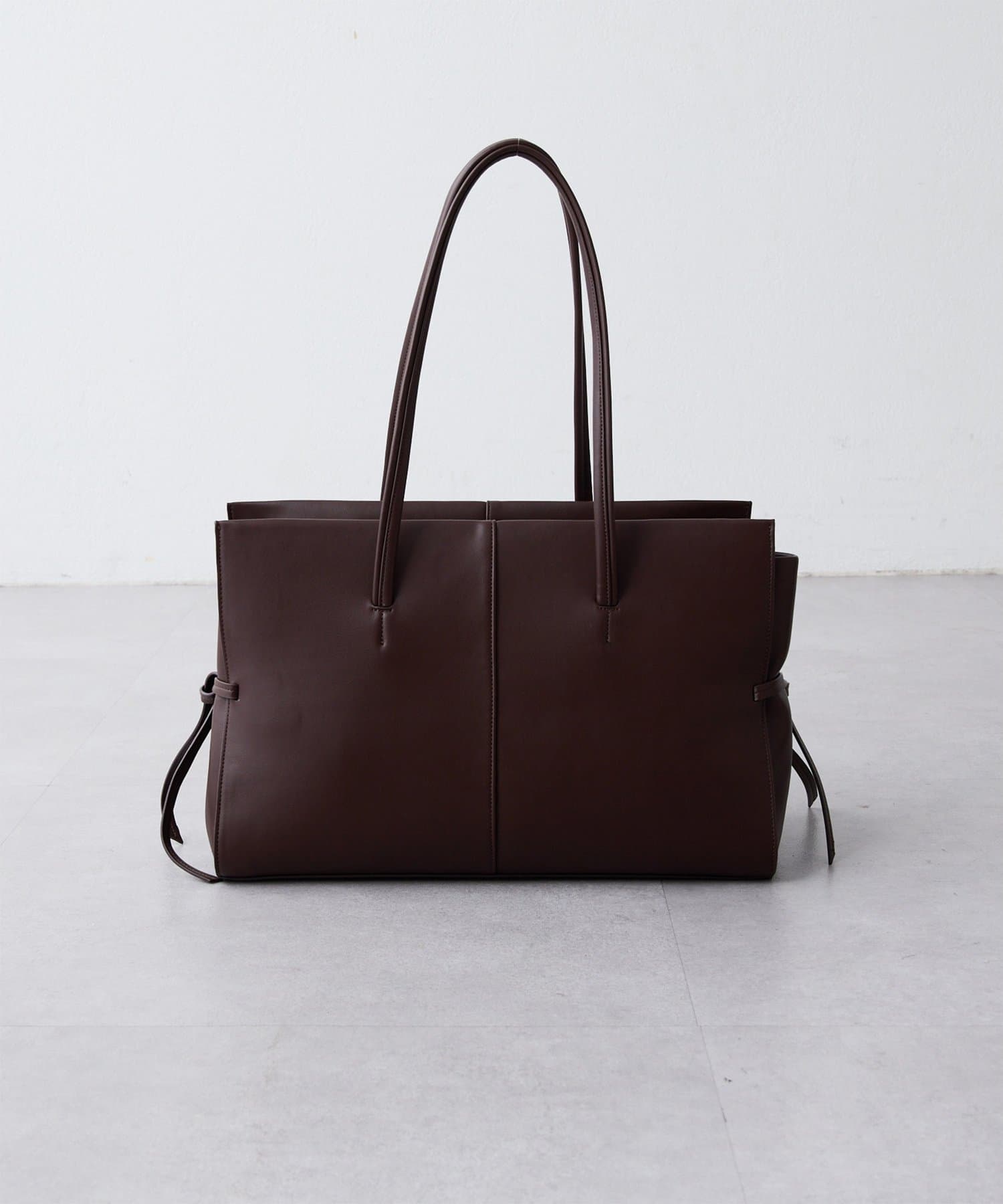 ■マチを程よく絞ってくれるサイドリボンがアクセントになり、かっちりしすぎず抜け感を出してくれるアイテム。
