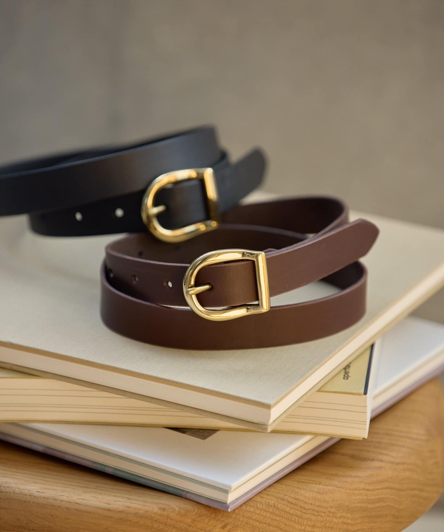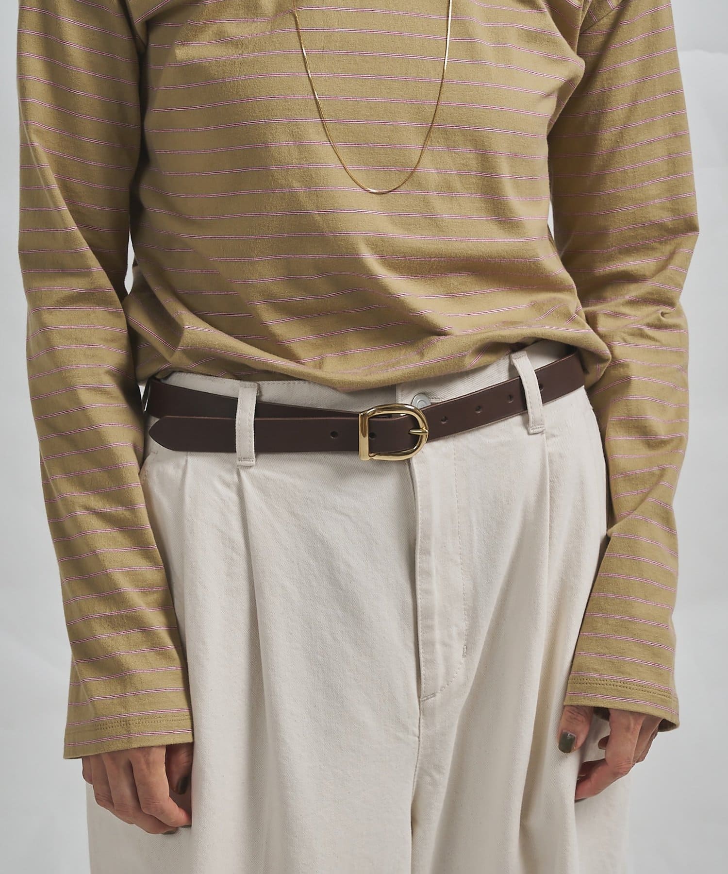 きれいめにもカジュアルにも合わせやすいレザーベルト