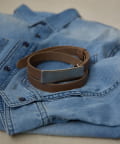 ■バックルは国内で丁寧に作られた真鍮製で、表面にサティーナ仕上げを施しマットな質感に。