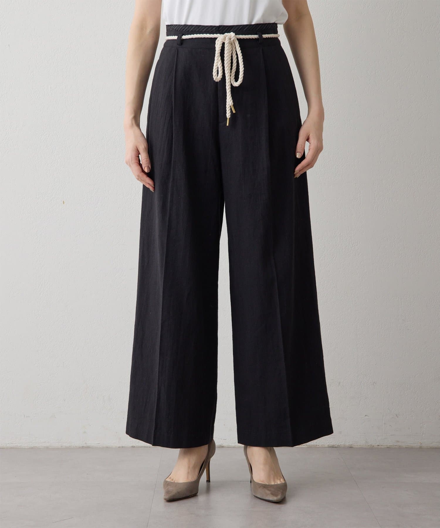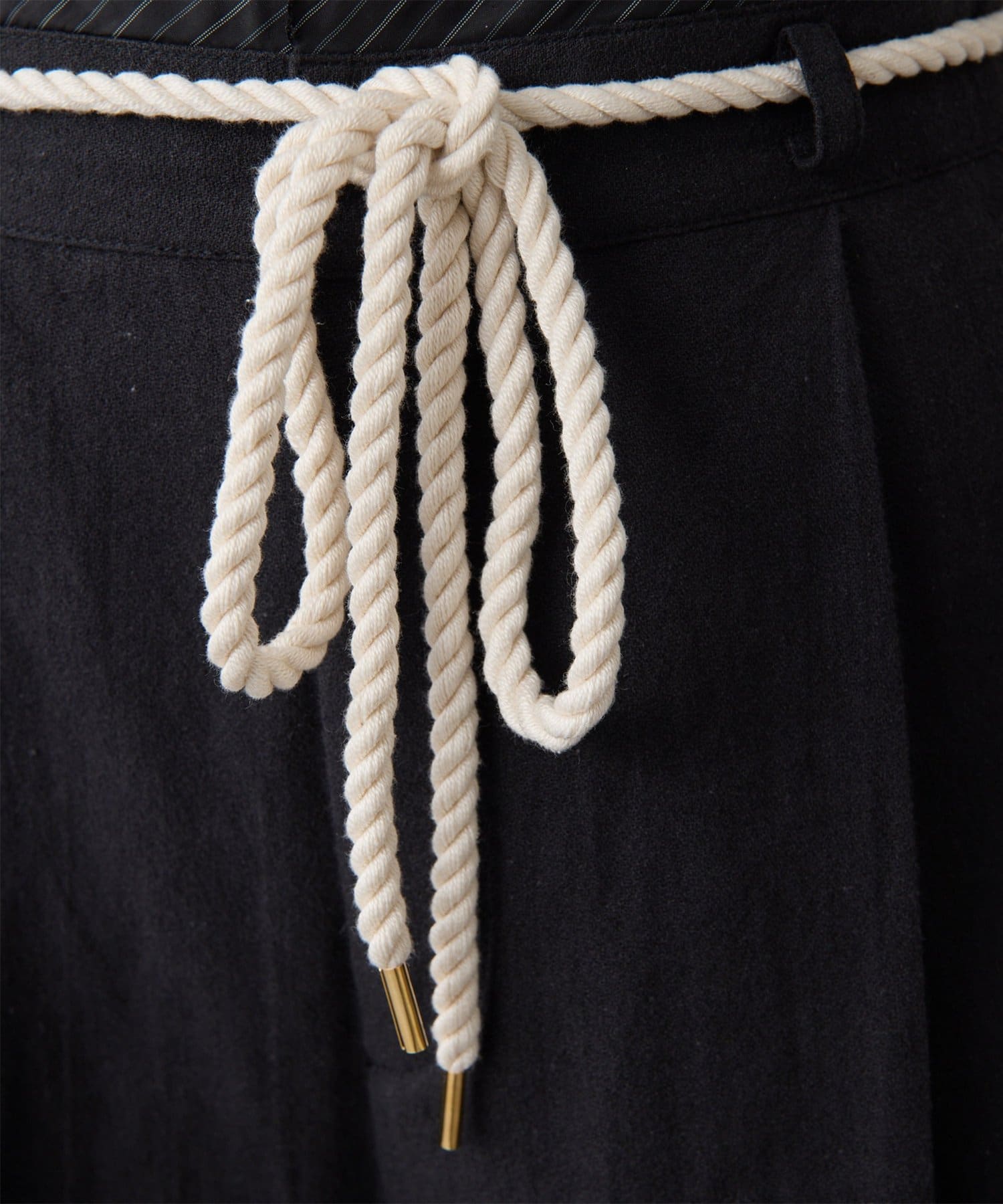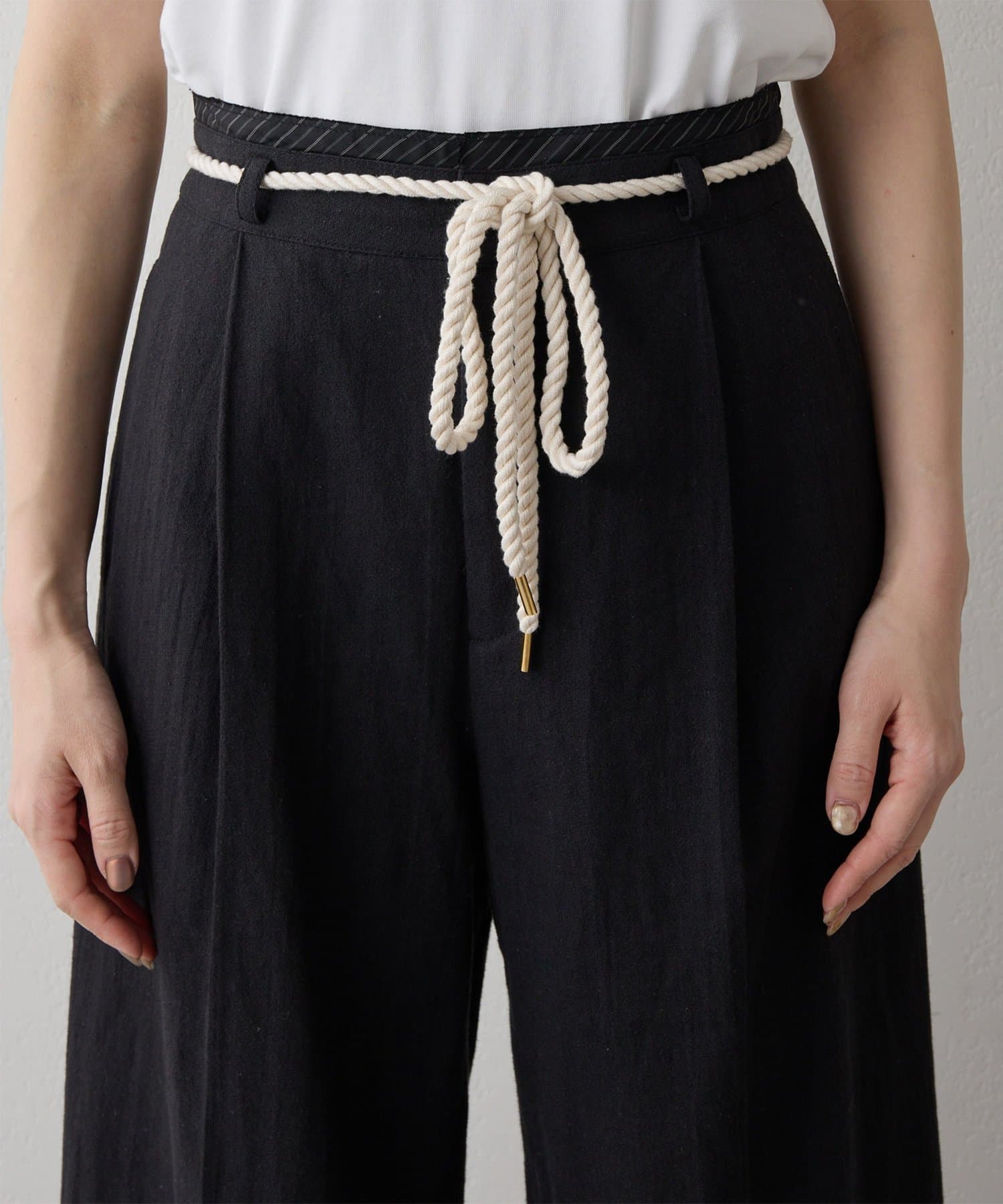 ■太めのロープベルトがアクセントになるワイドパンツ。