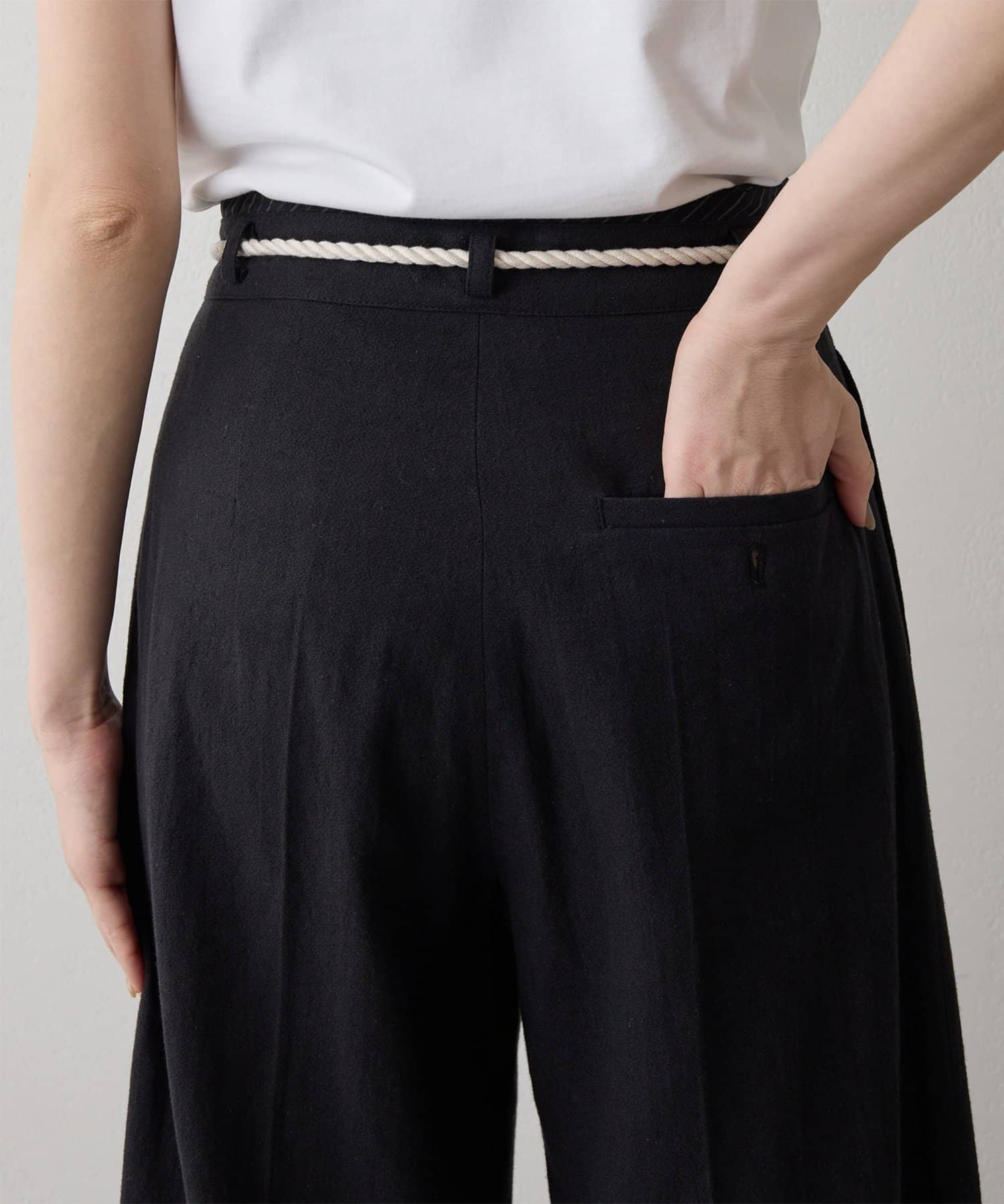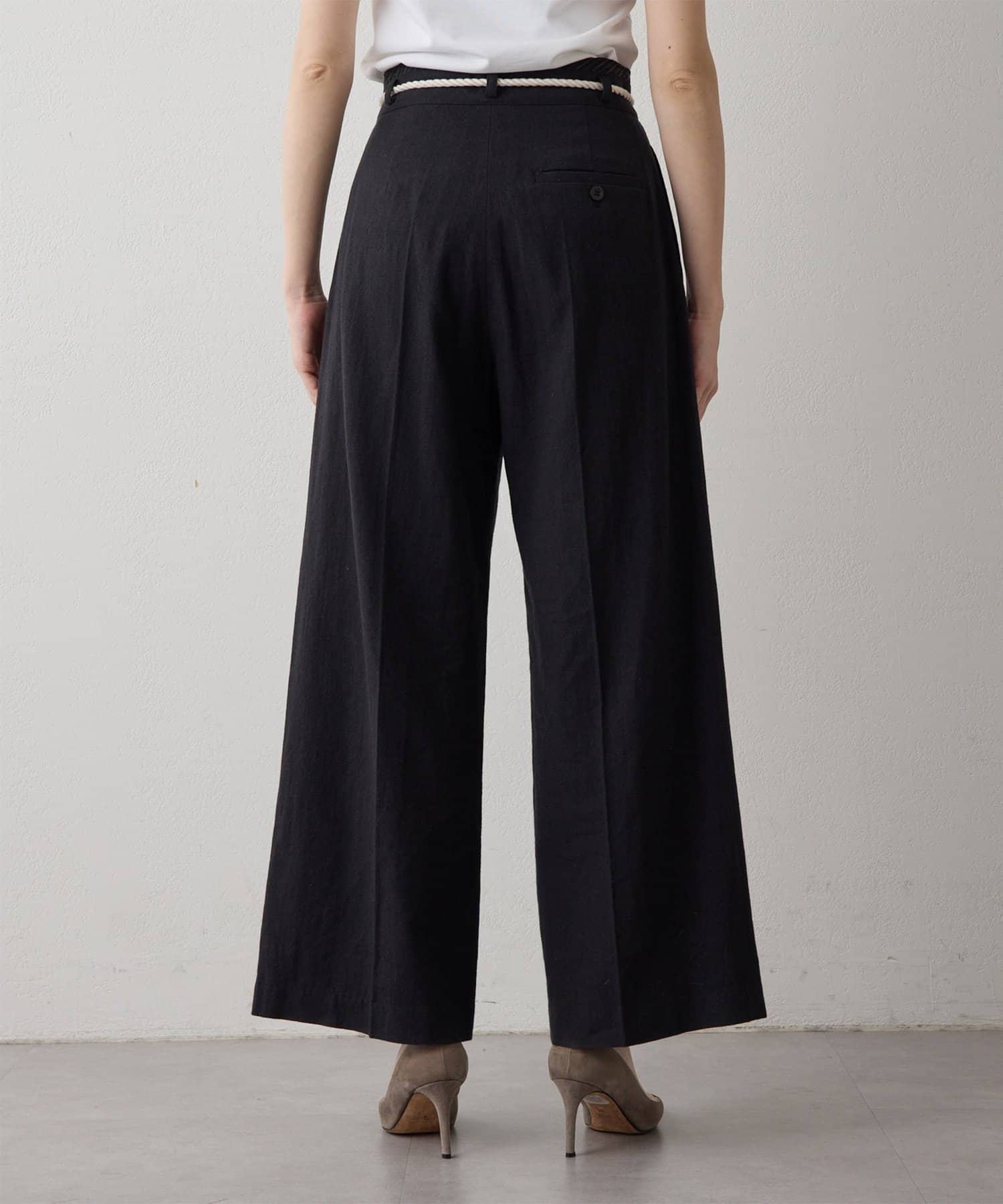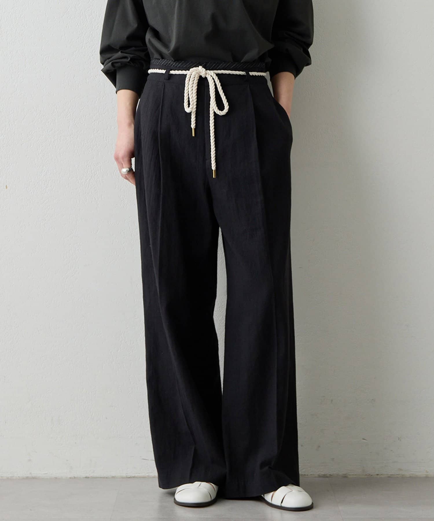 ■太めのロープベルトがアクセントになるワイドパンツ。