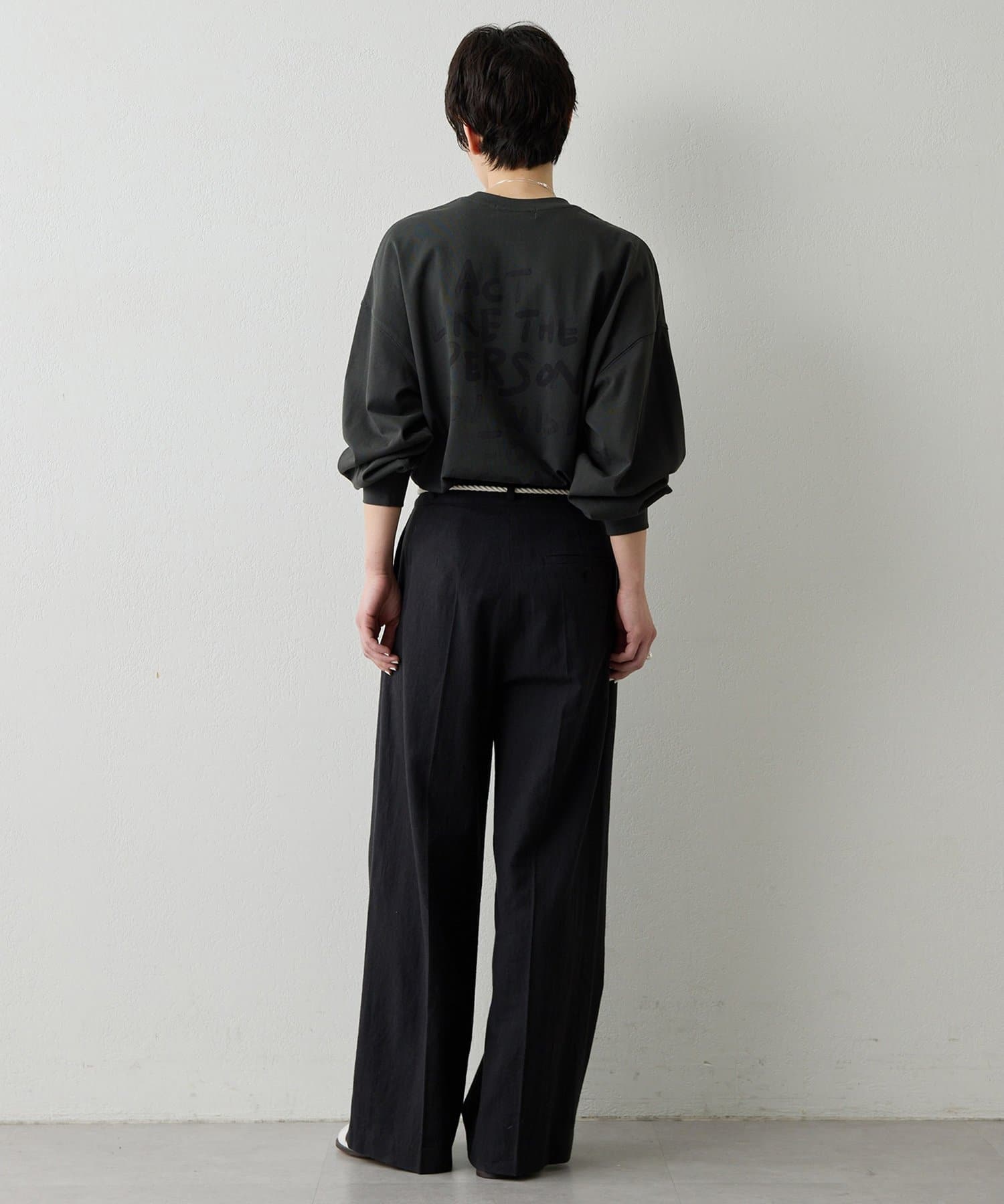 ■ワイドストレートシルエットのタックパンツで、太すぎずすっきりと履けるデザイン。