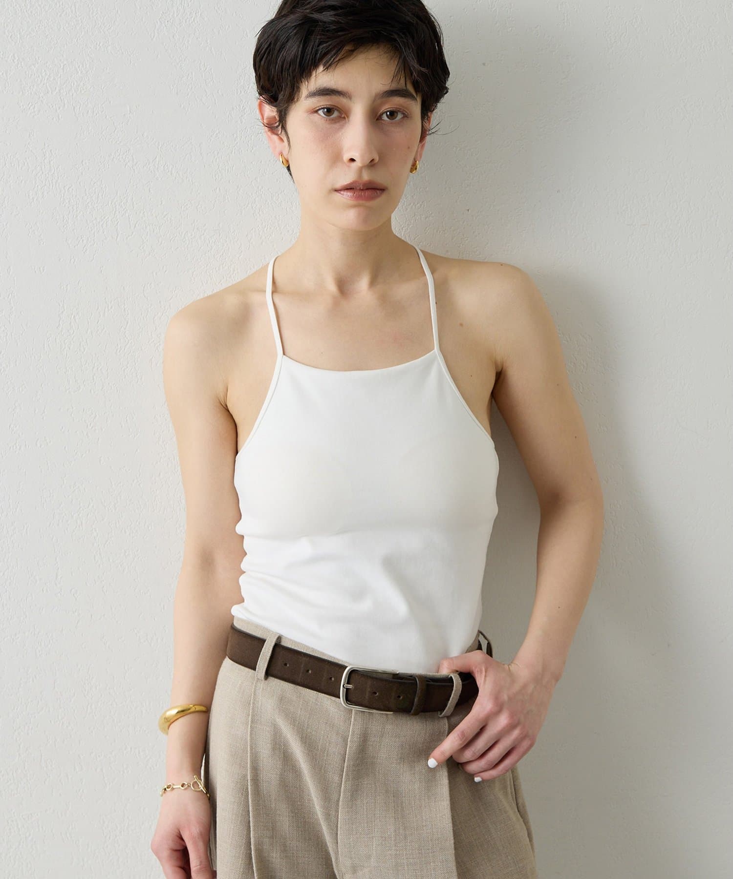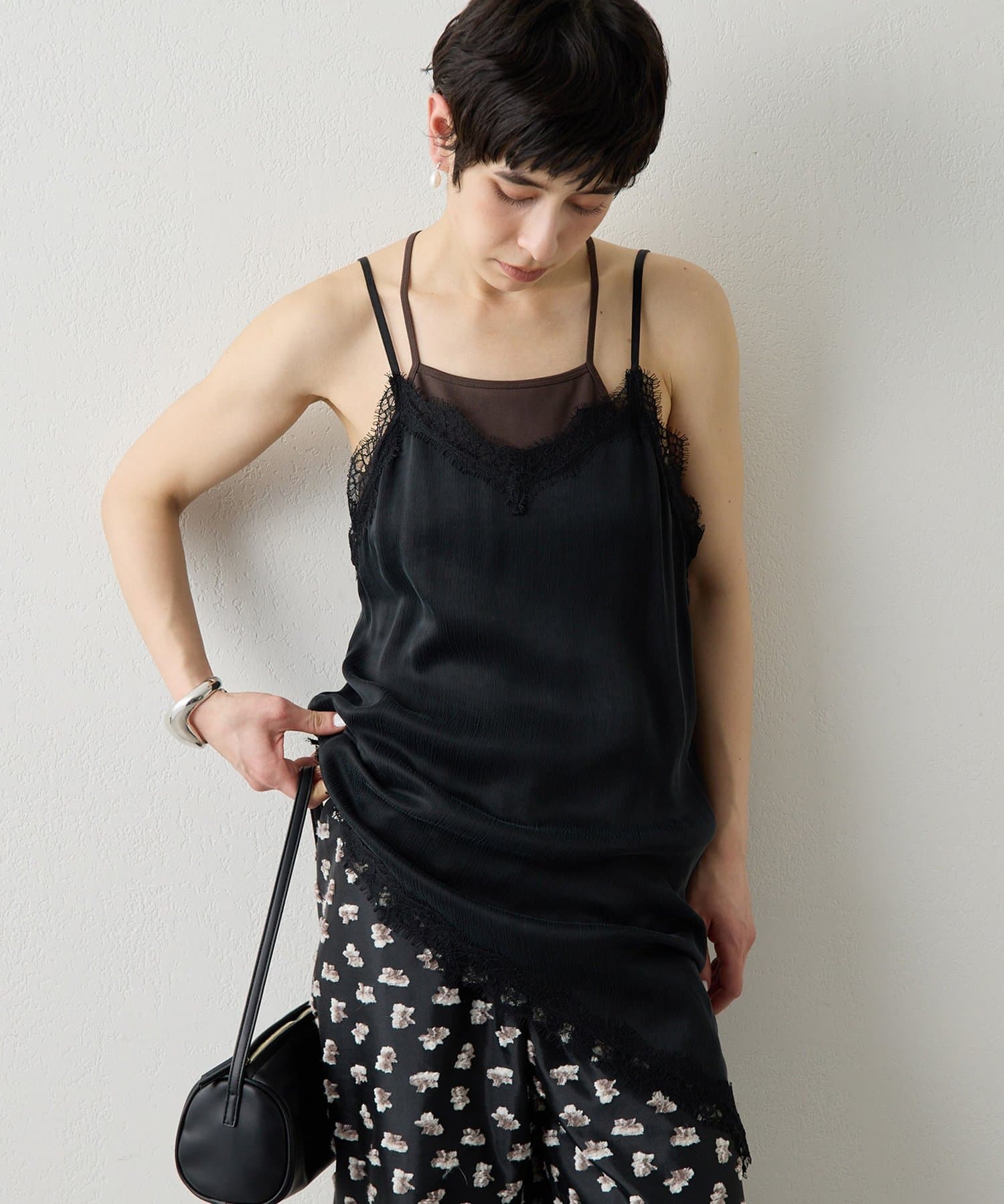 ■春夏の装いに一枚あると重宝するカップ付きのキャミソール。