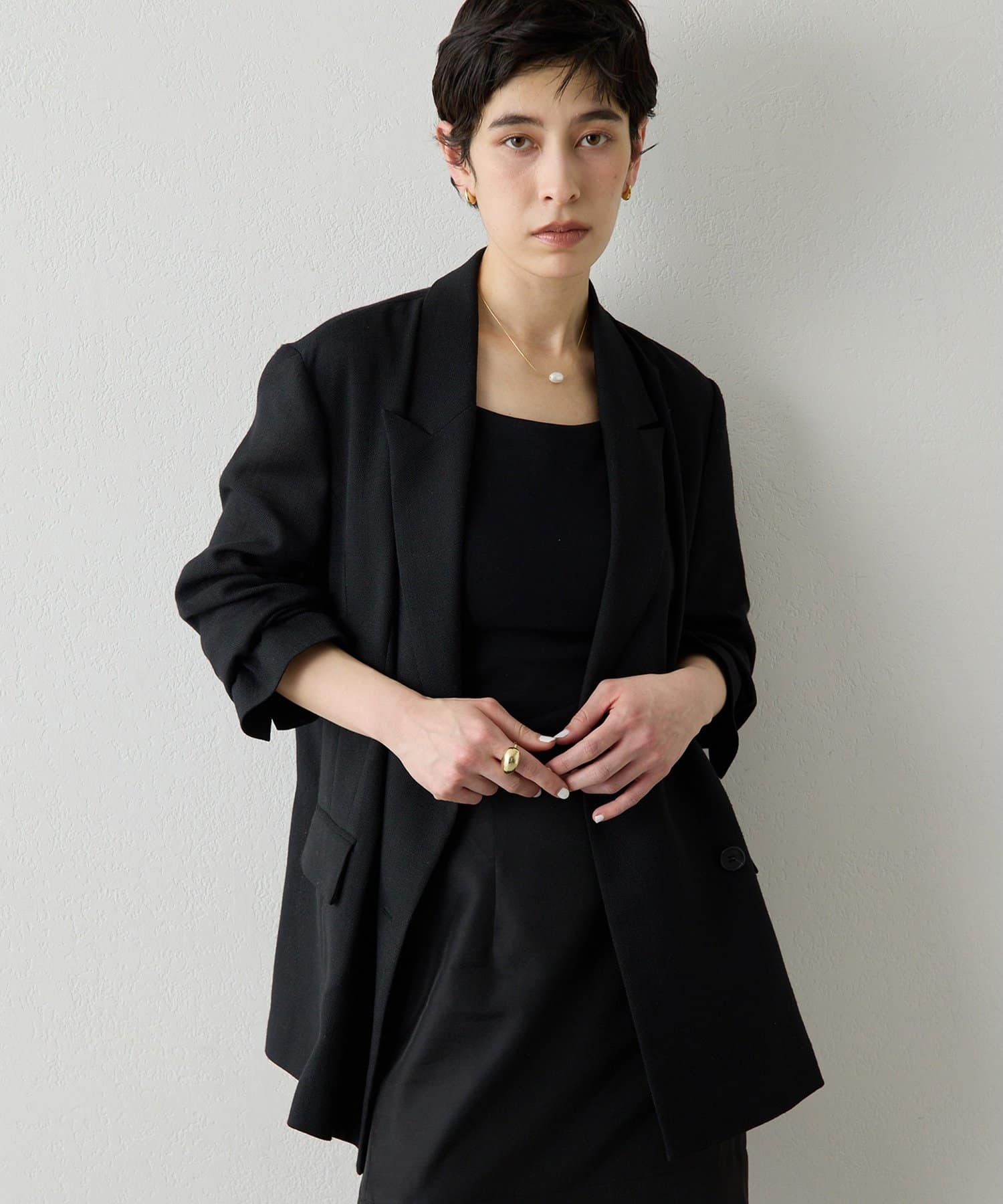 ■インナーに着やすいよう、身体にフィットするコンパクトなサイズ感に仕上げた一枚。