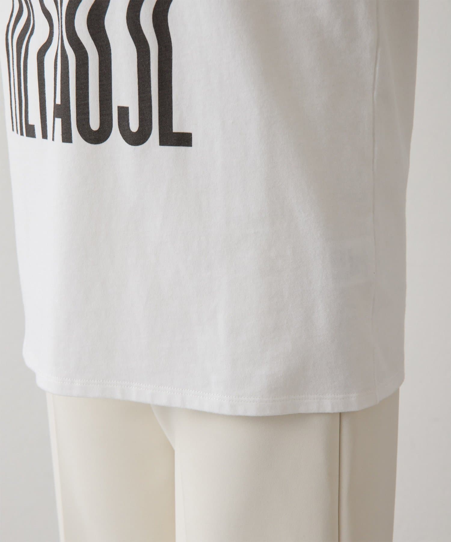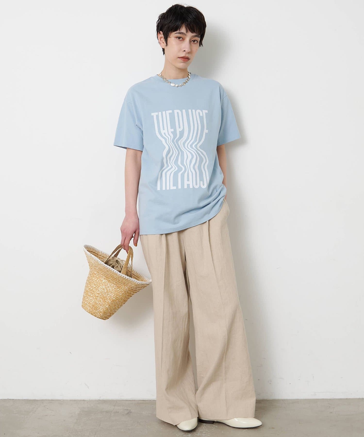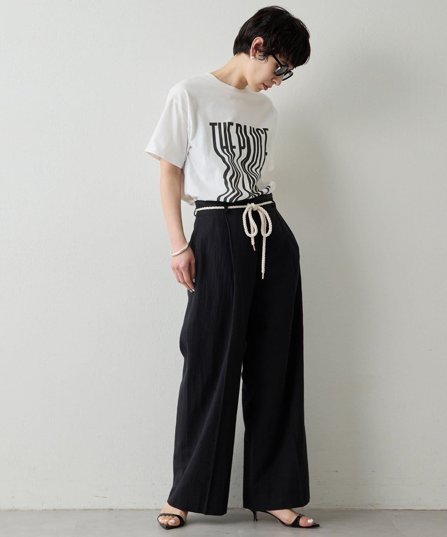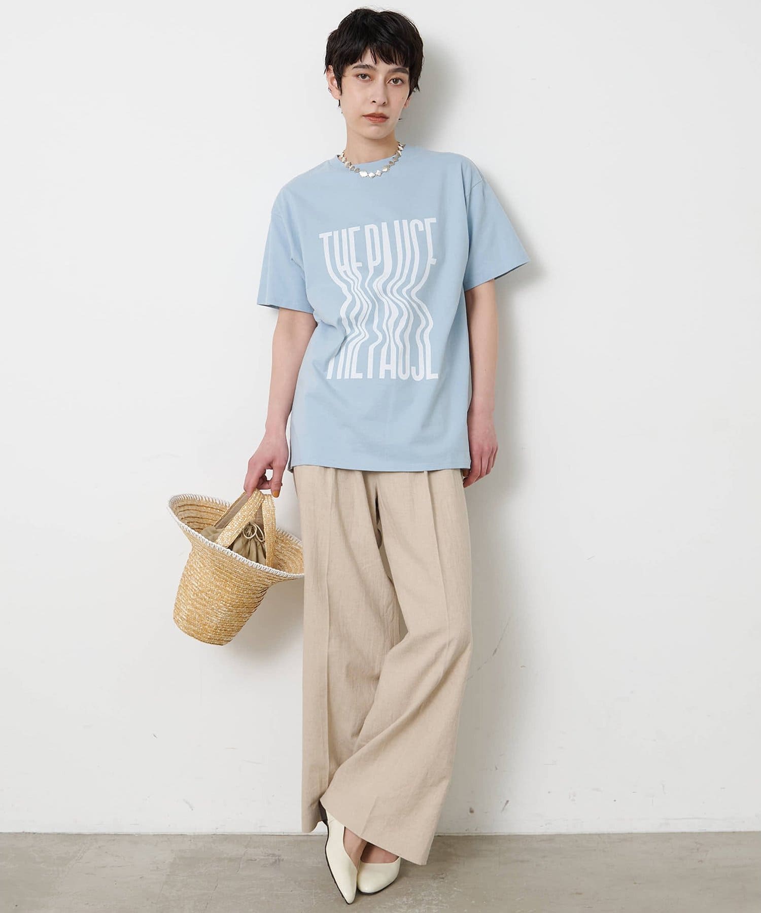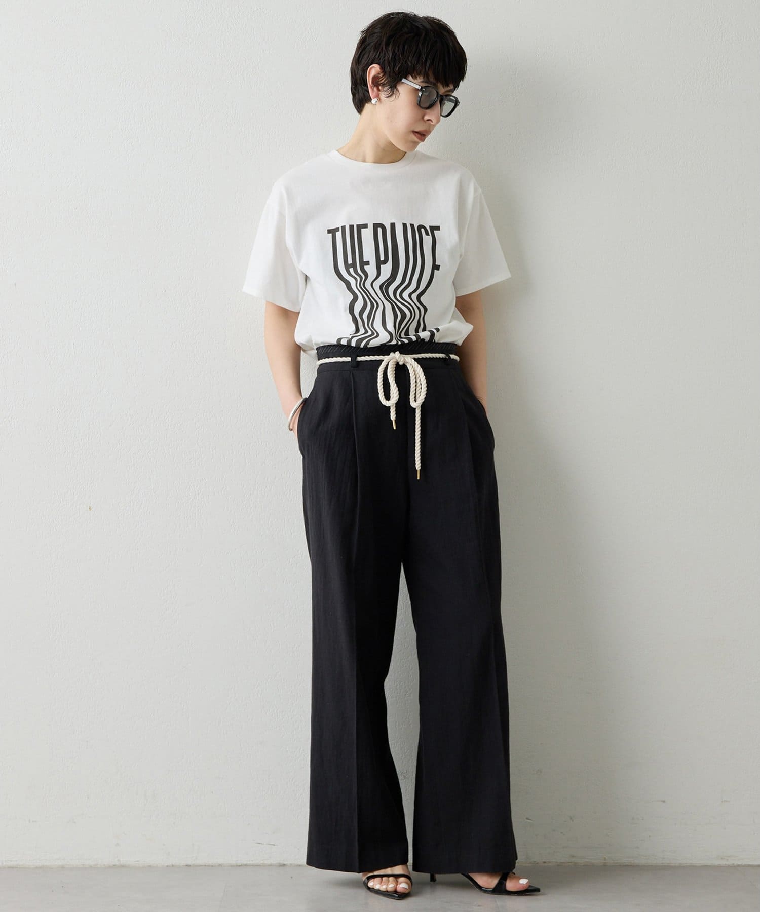 ■『THE PAUSE』の文字を縦に引き延ばしたロゴが遊び心を感じさせるTシャツ。