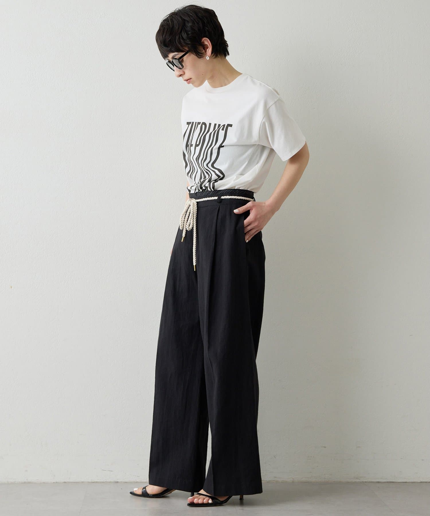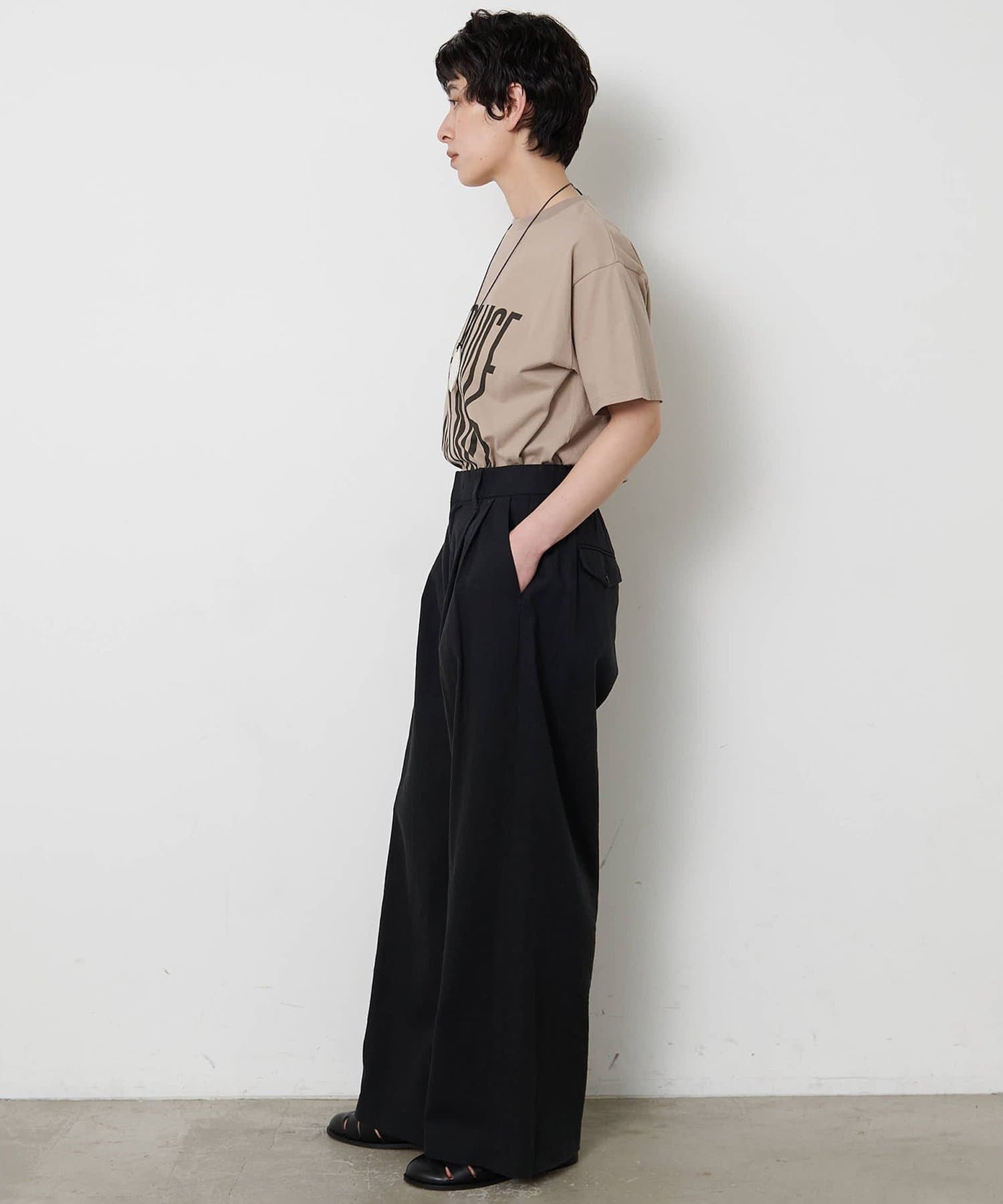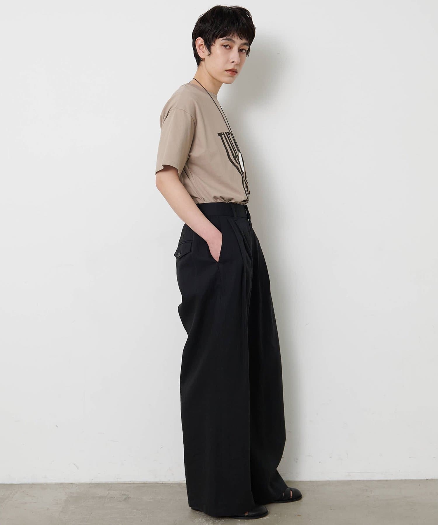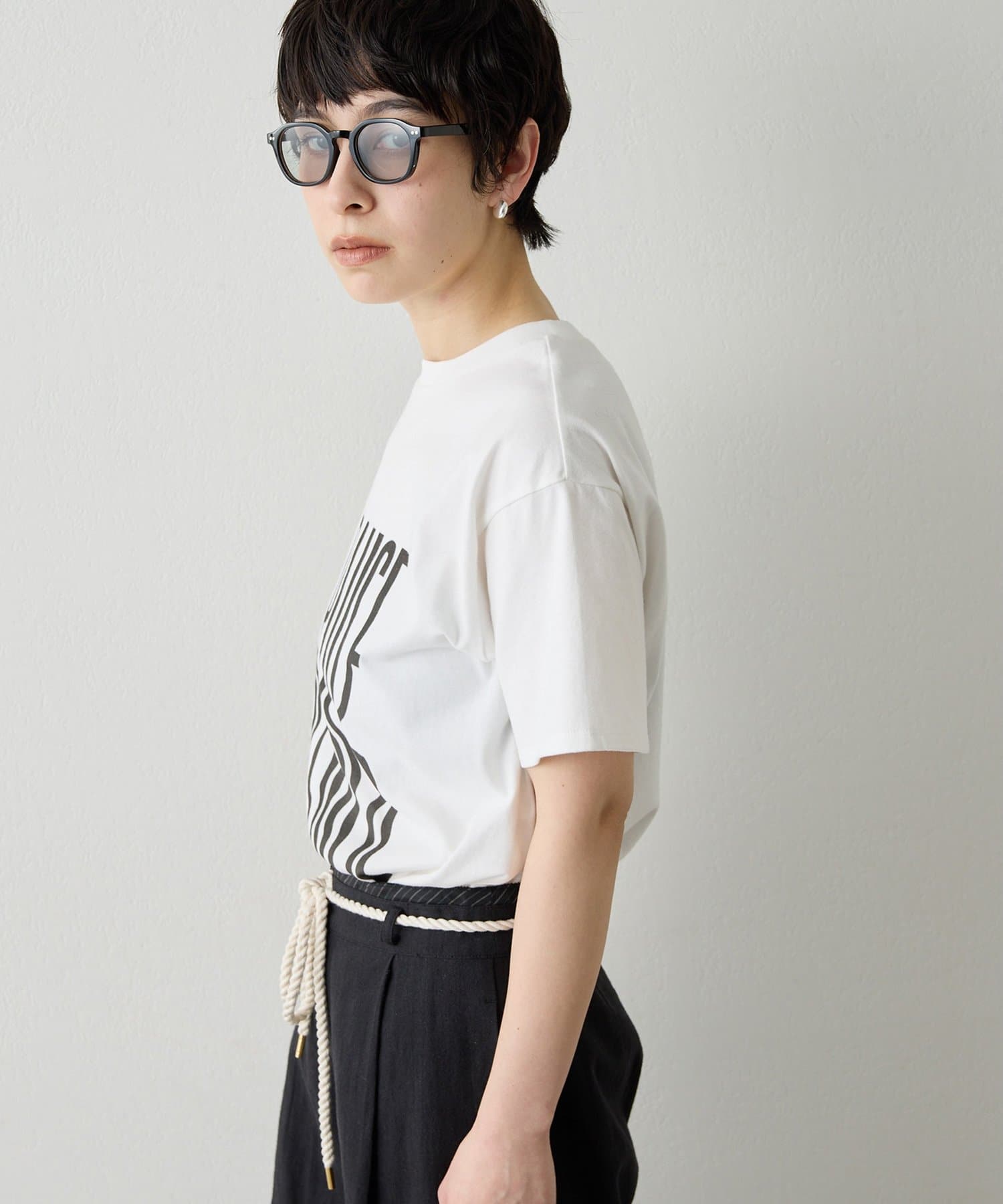 ■『THE PAUSE』の文字を縦に引き延ばしたロゴが遊び心を感じさせるTシャツ。