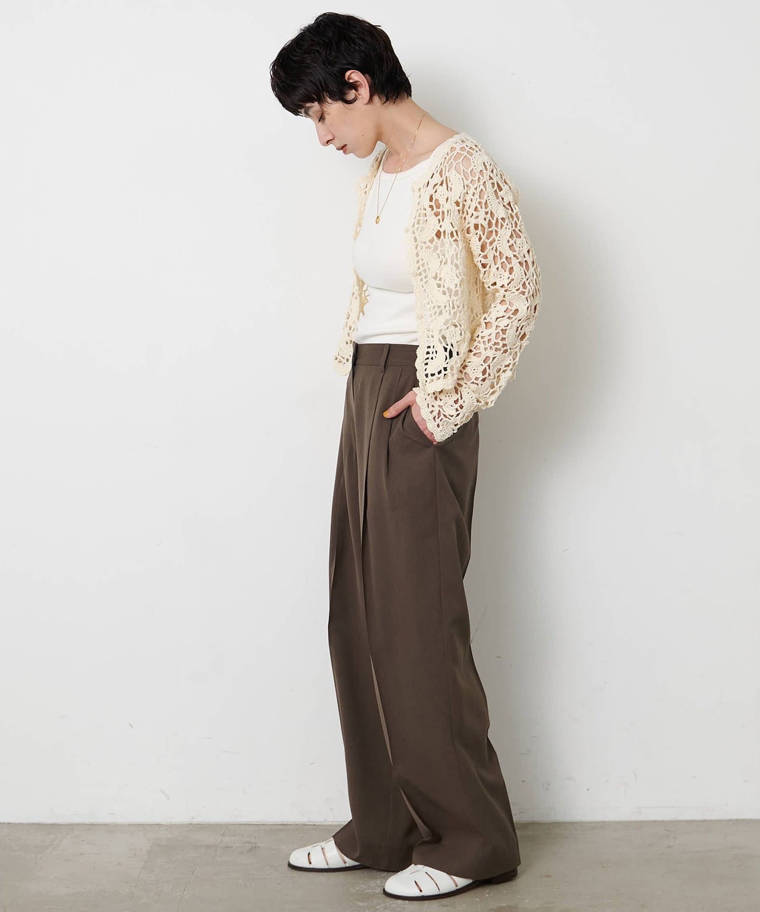 抜け感と軽さを演出する、きれいめワイドパンツ