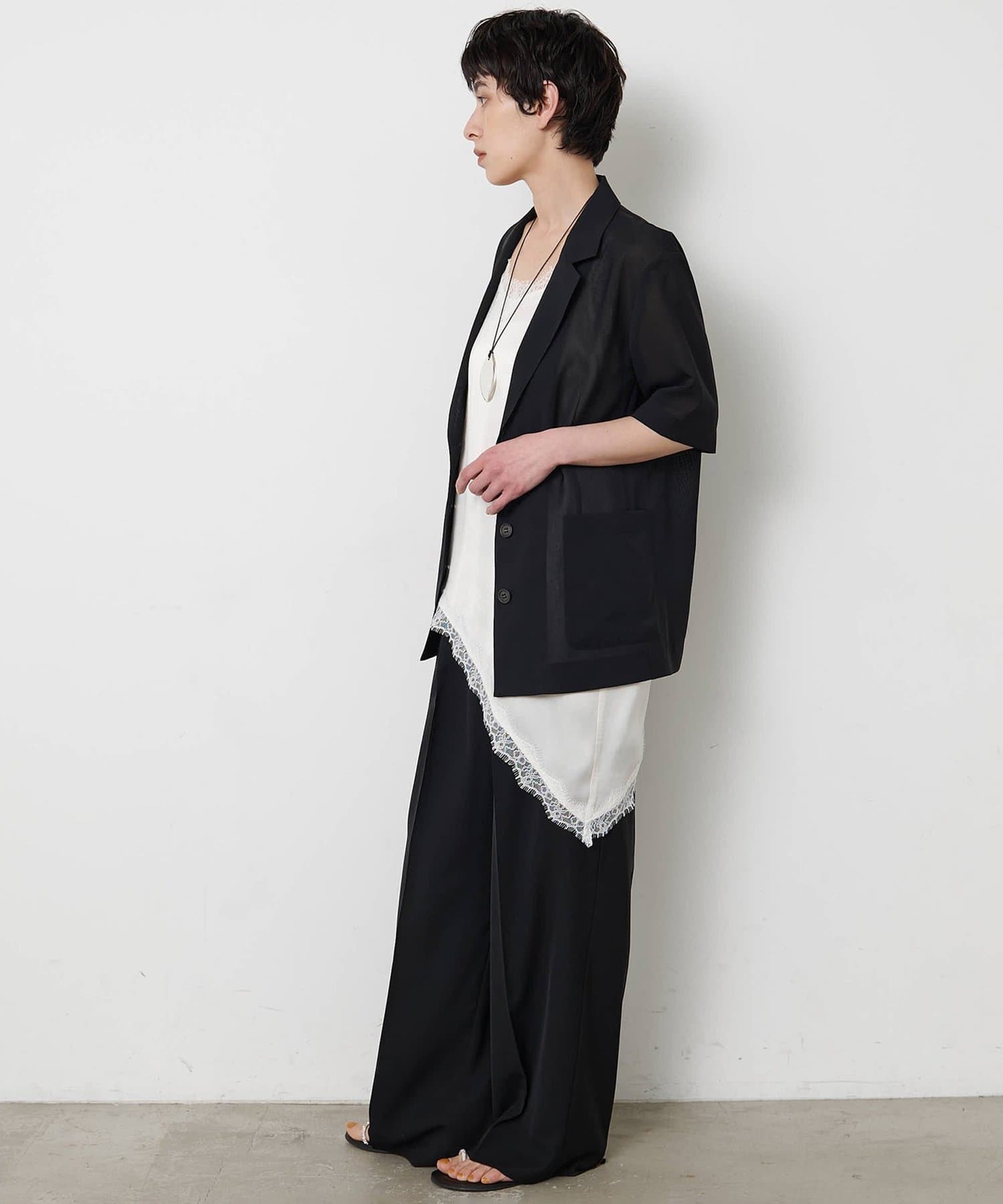 ■同素材の【THE PAUSE】シアーハーフスリーブジャケット(ブランド品番:WGP1061407A0001)とのセットアップもおすすめ。