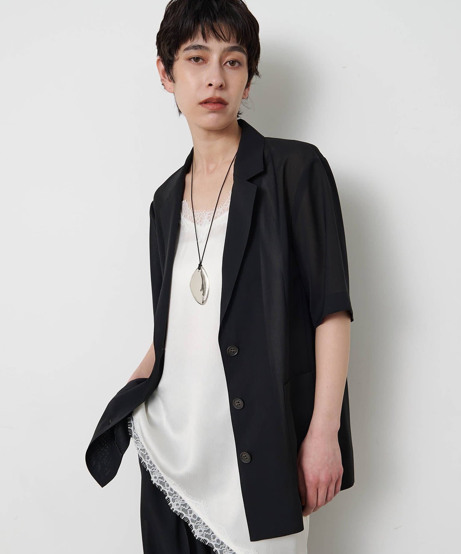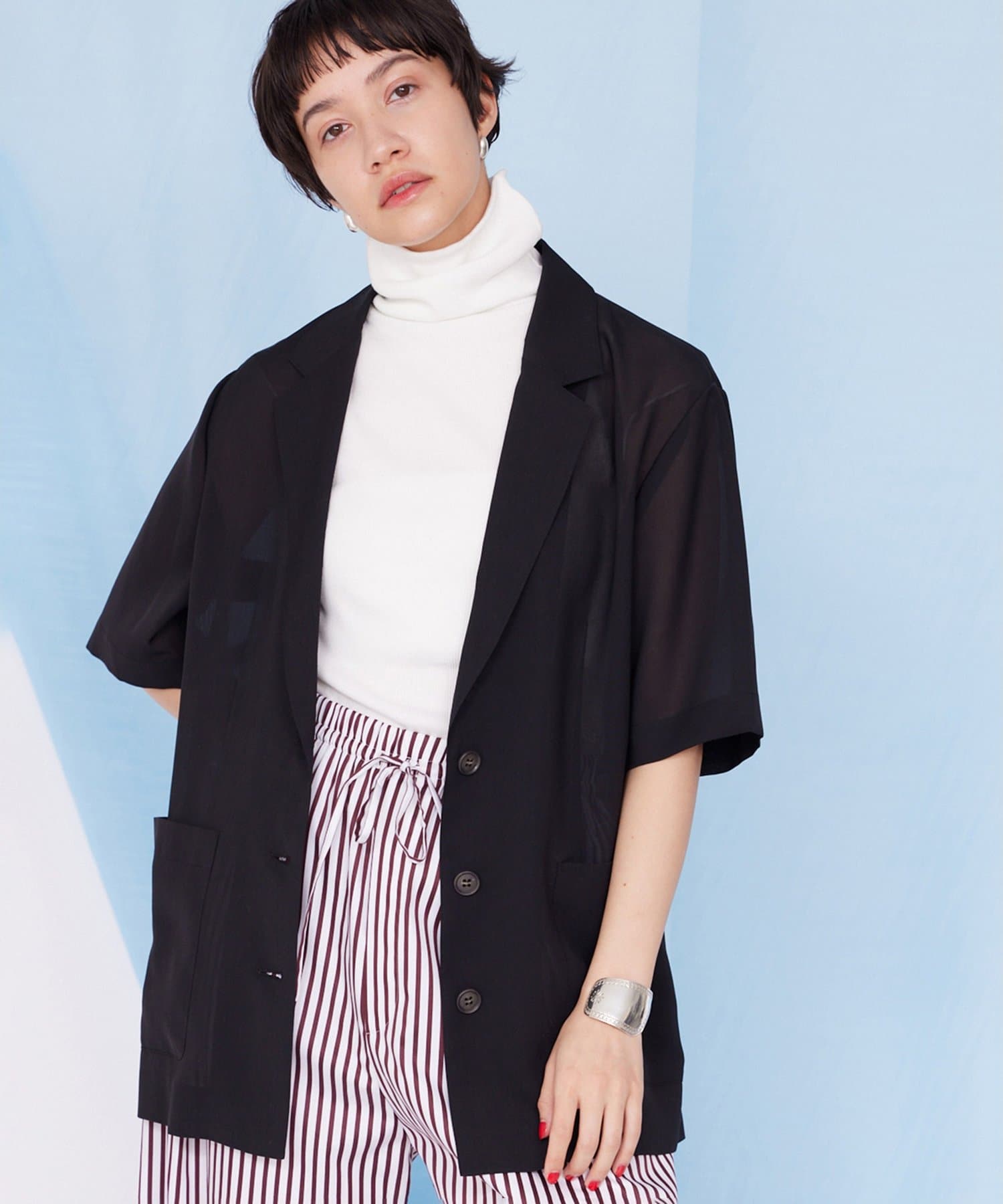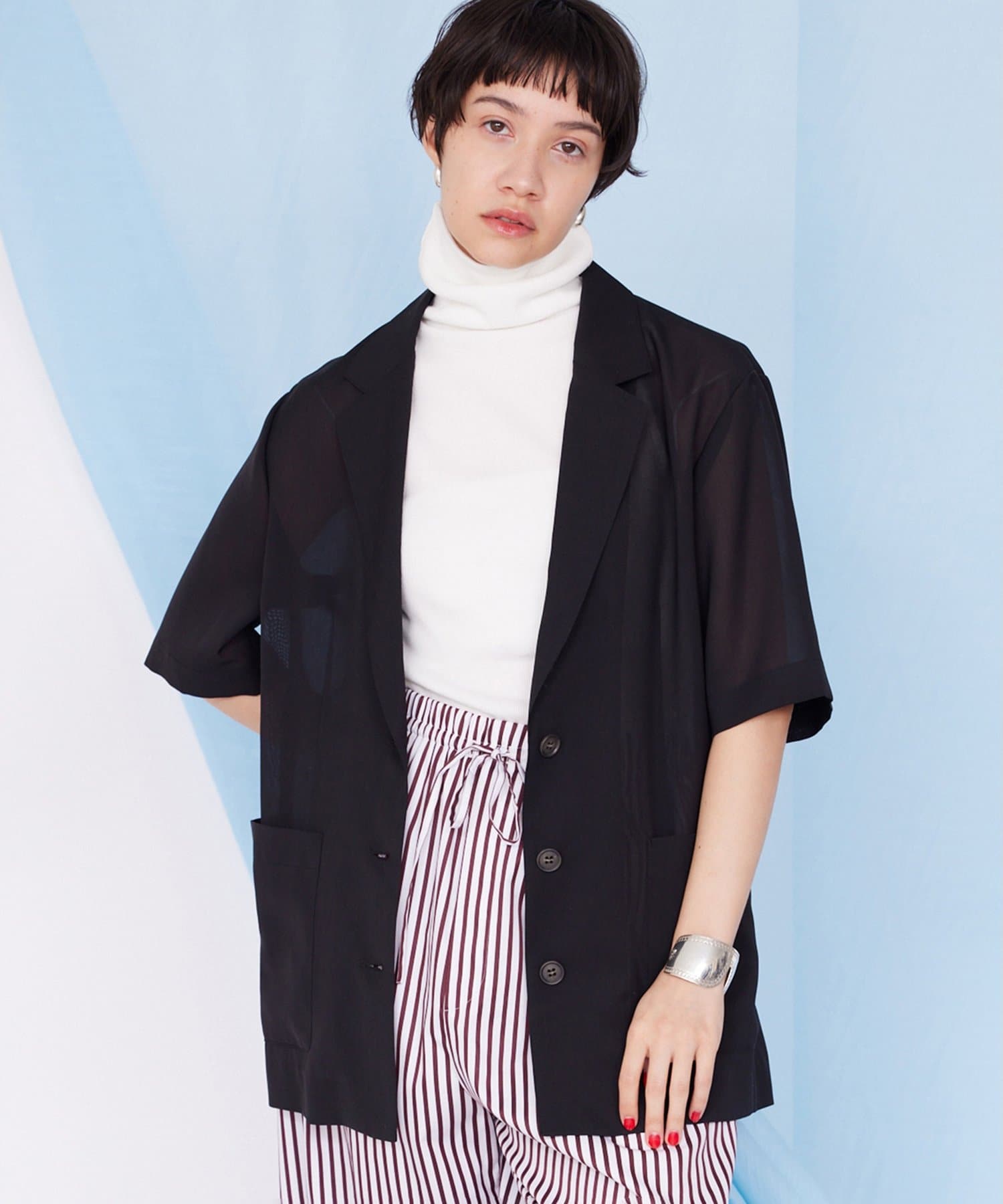 【THE PAUSE】シアーハーフスリーブジャケット