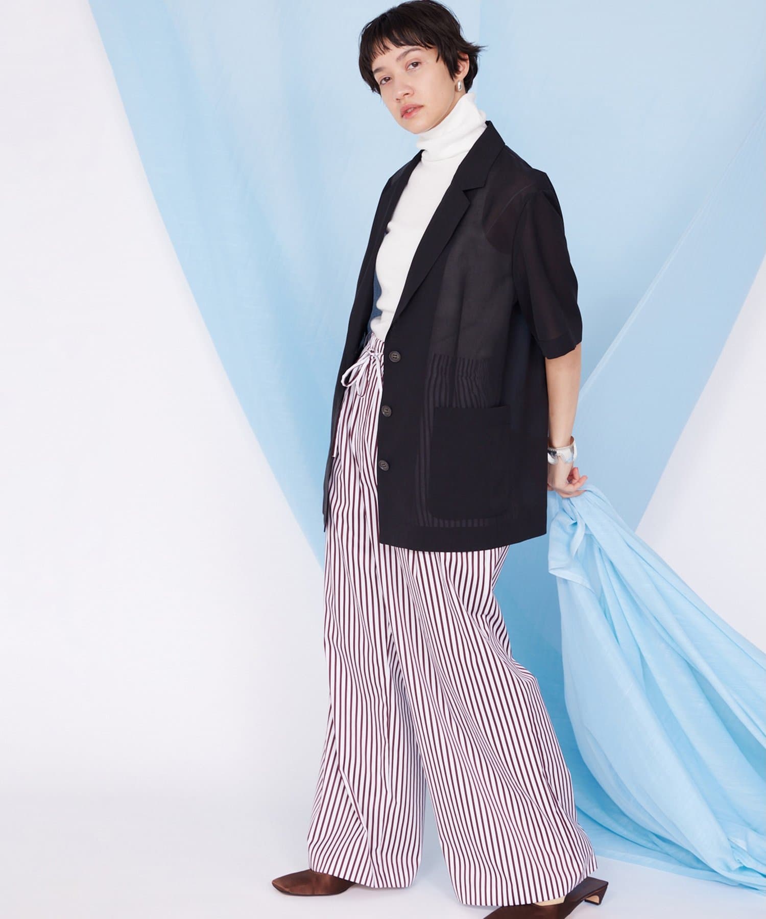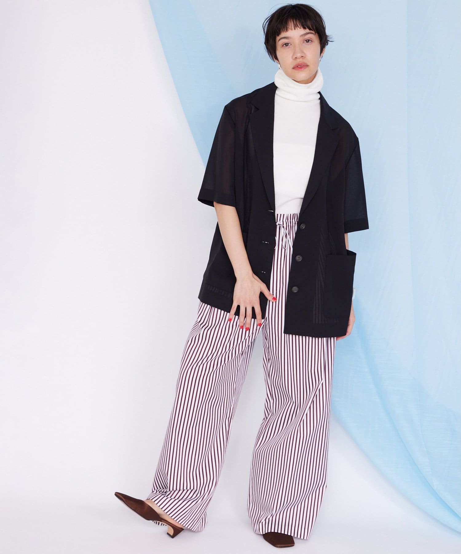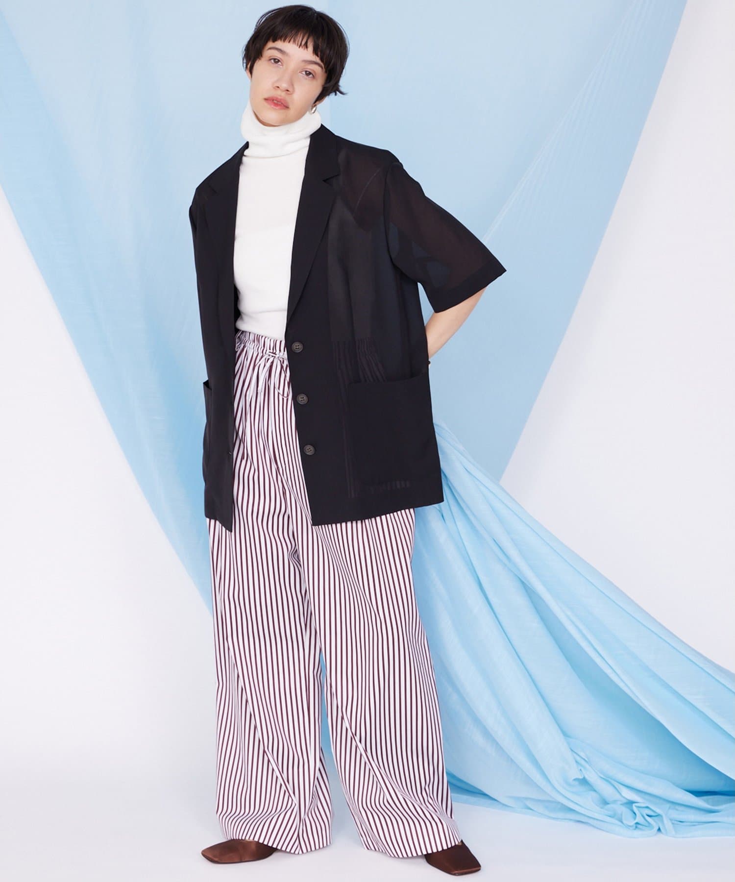 【THE PAUSE】シアーハーフスリーブジャケット