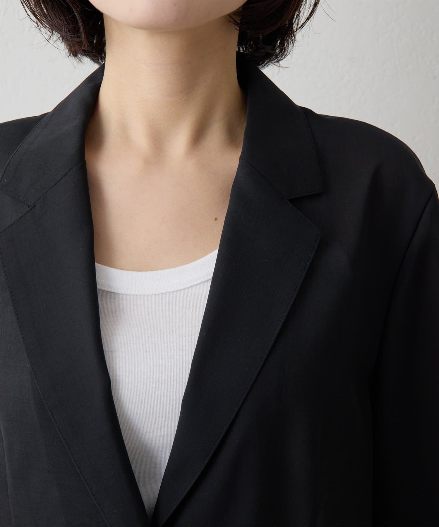 ■テーラーカラーがきちんと感を持たせつつ、シャツのようにさらっと羽織れる軽さもポイント。