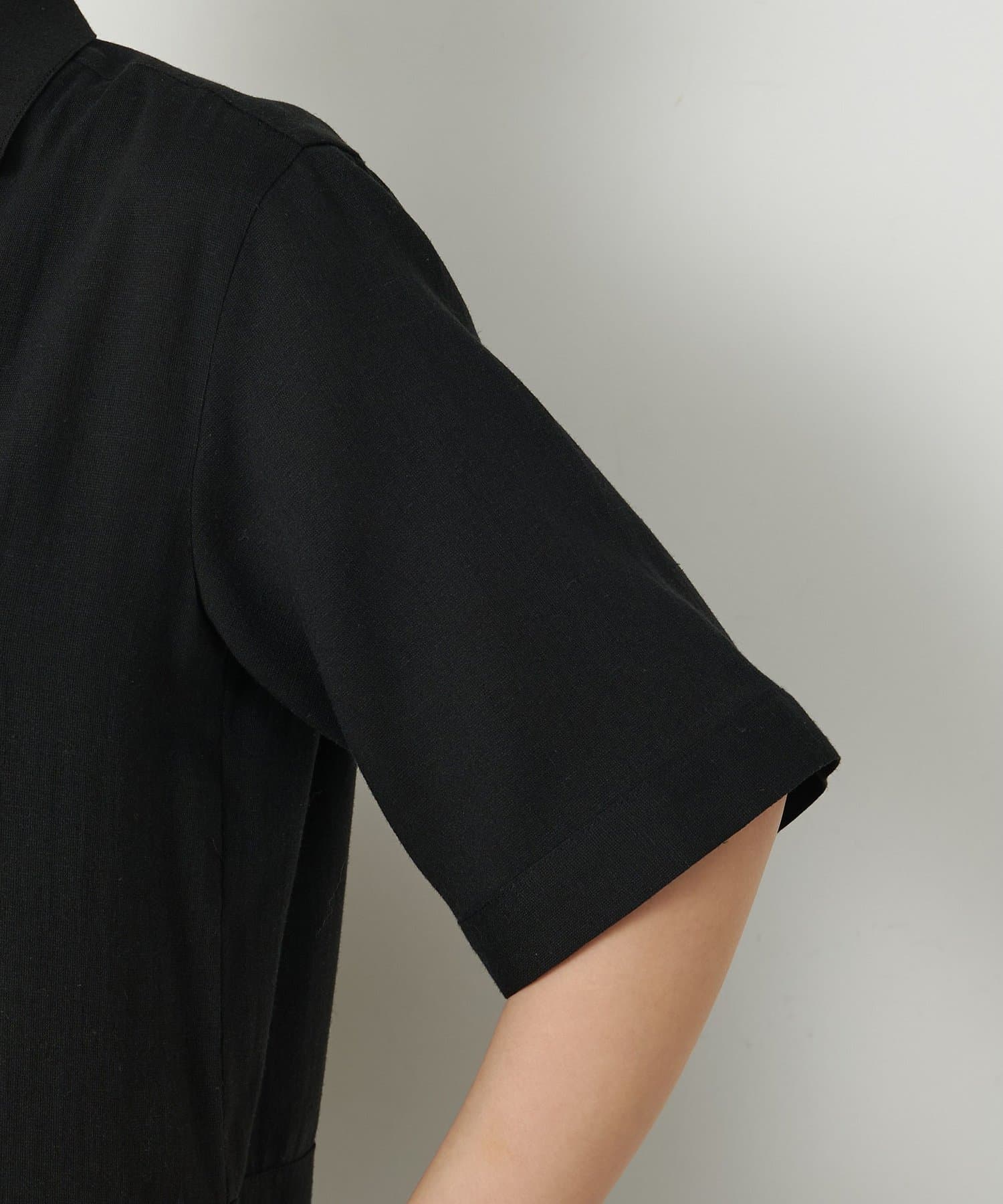 ■リネン混素材で軽やかに仕上げた半袖オールインワン。
