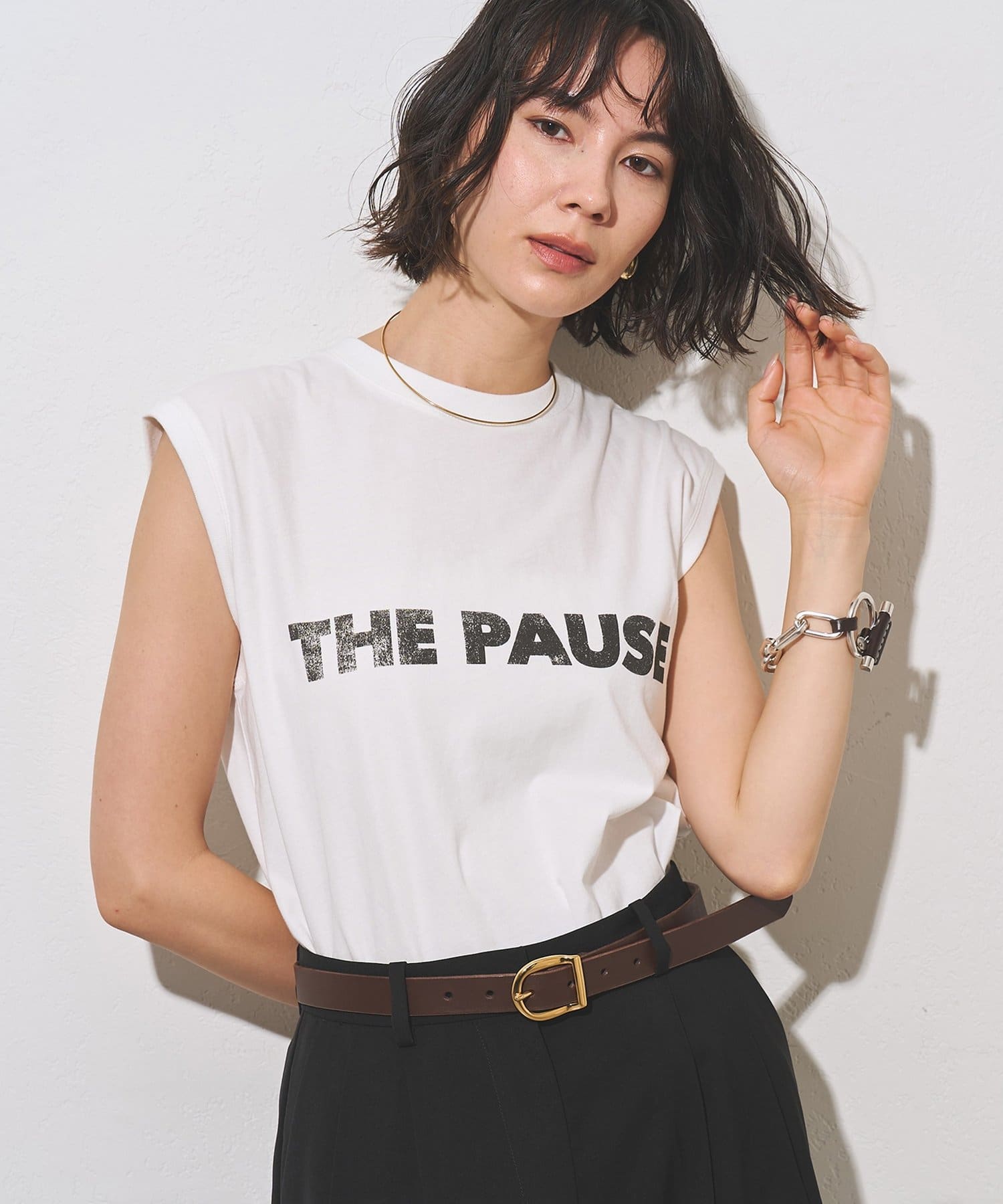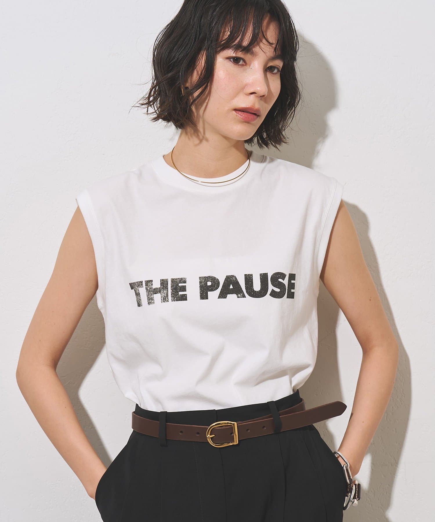 ■定番のTHE PAUSE Tシャツと同じロゴデザインを使用したノースリーブTシャツ。