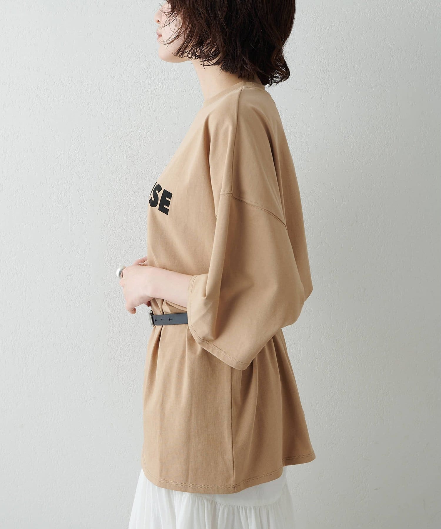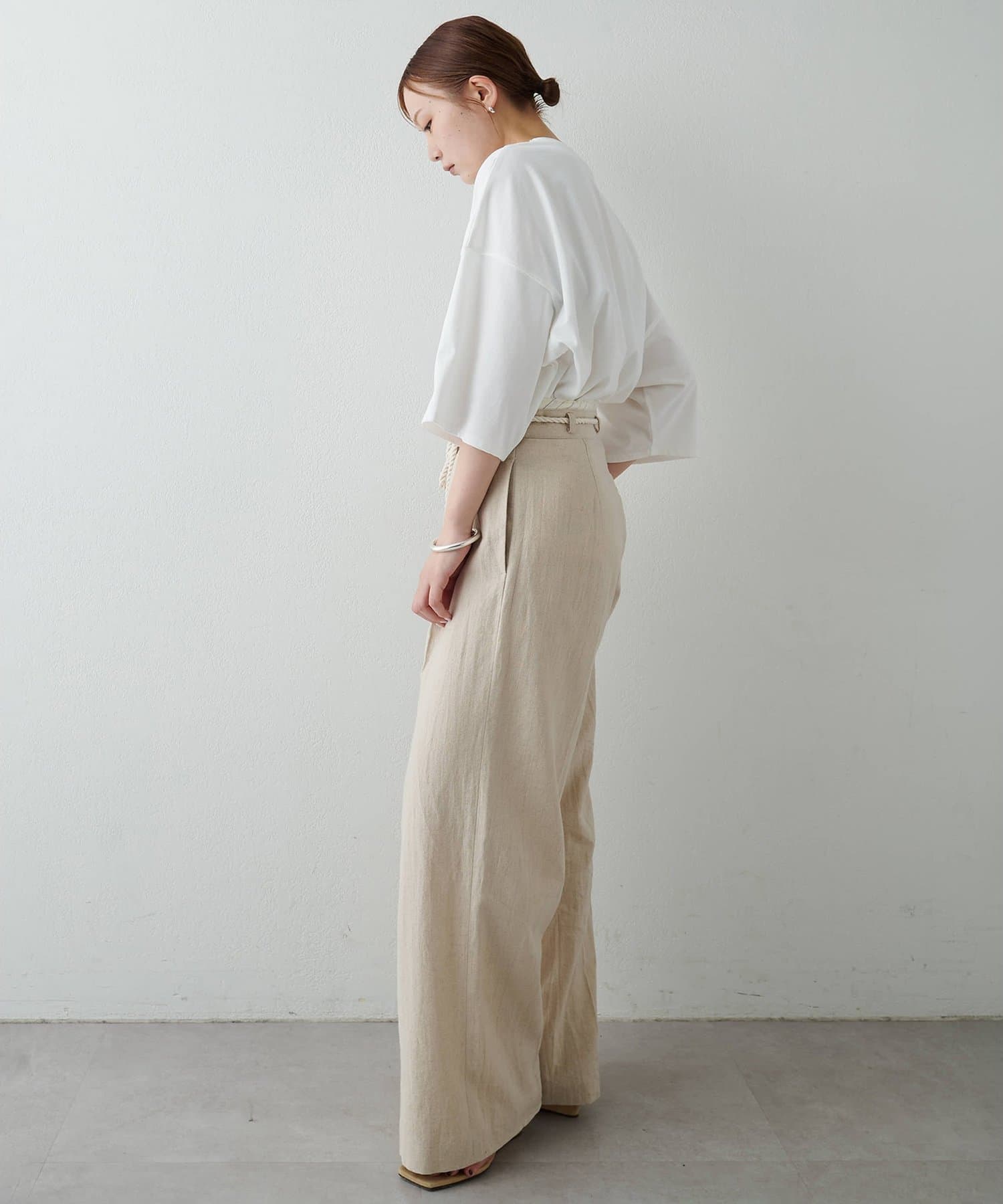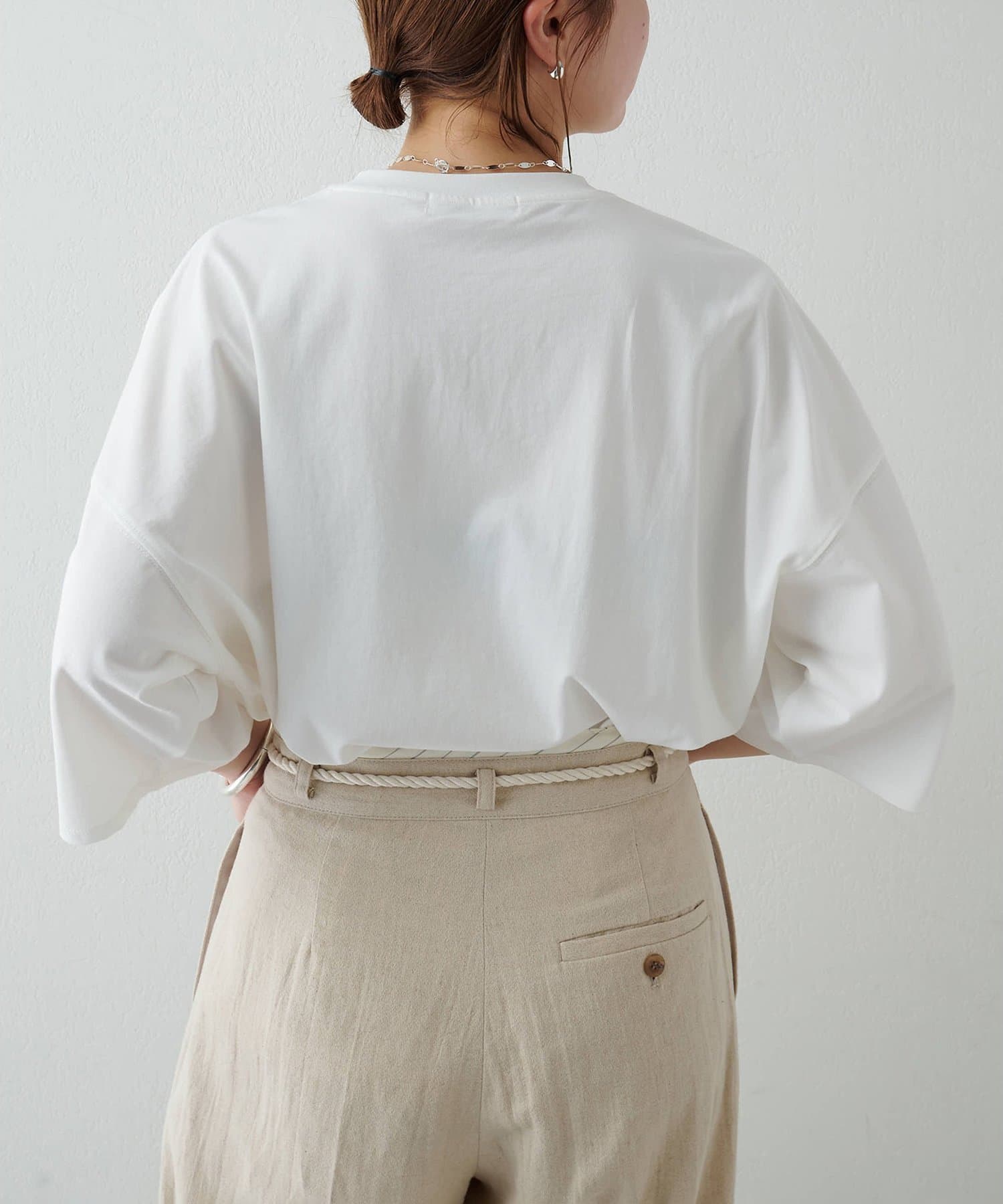 ■適度に落ち感があるため、カジュアルながらもどこか女性らしい雰囲気に。