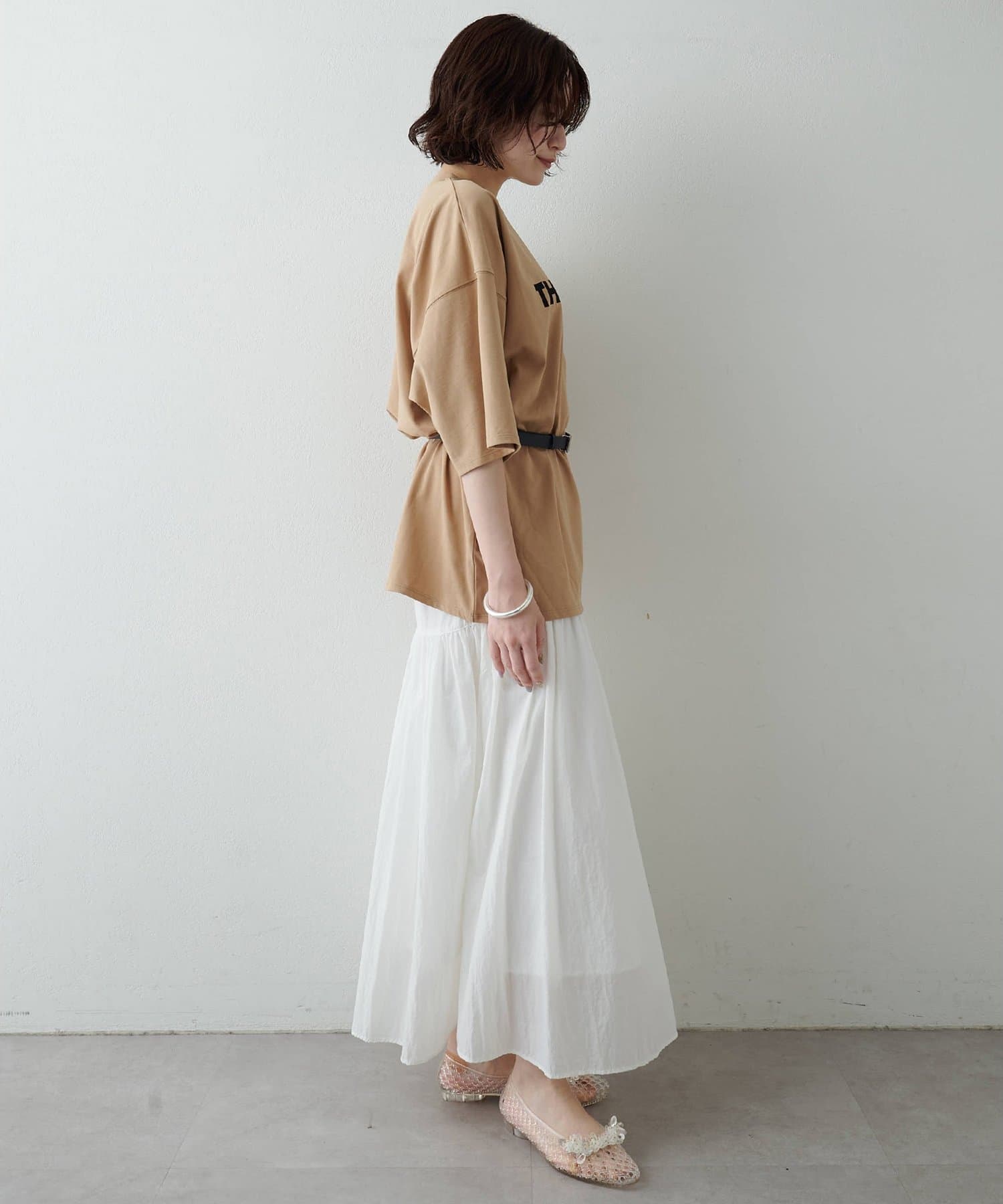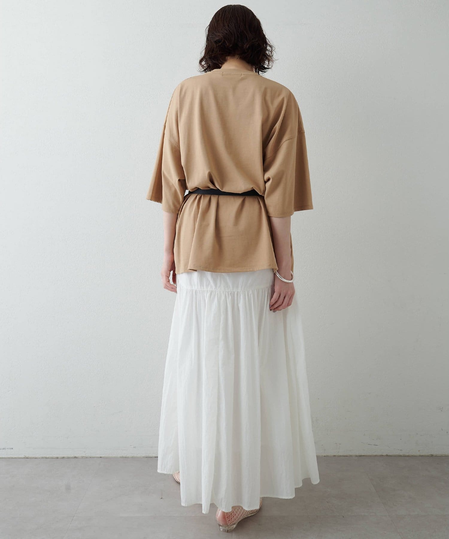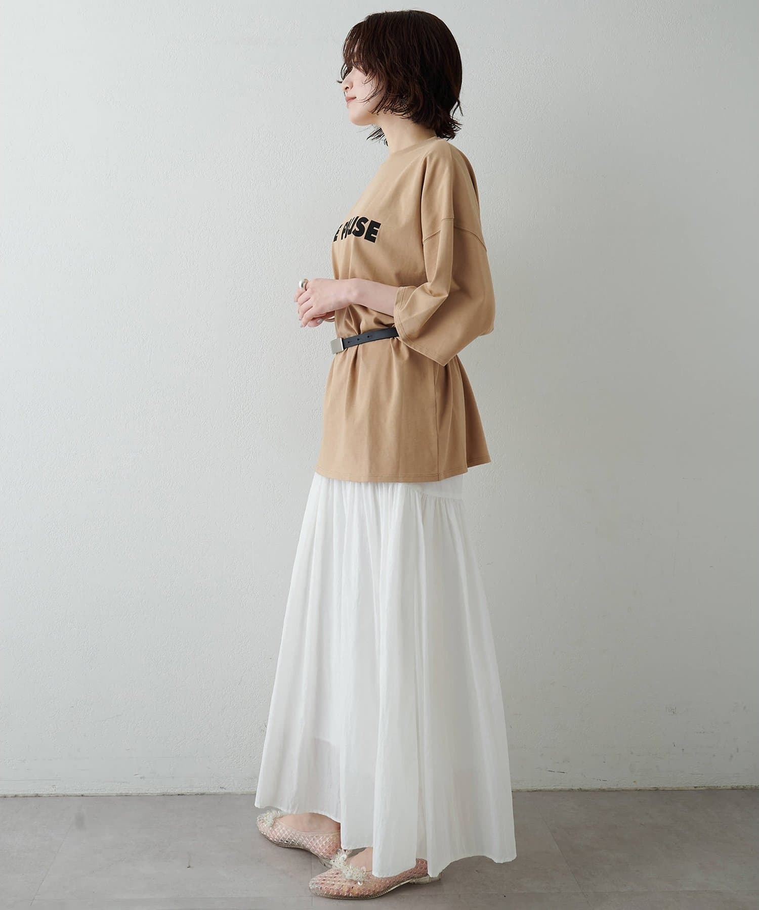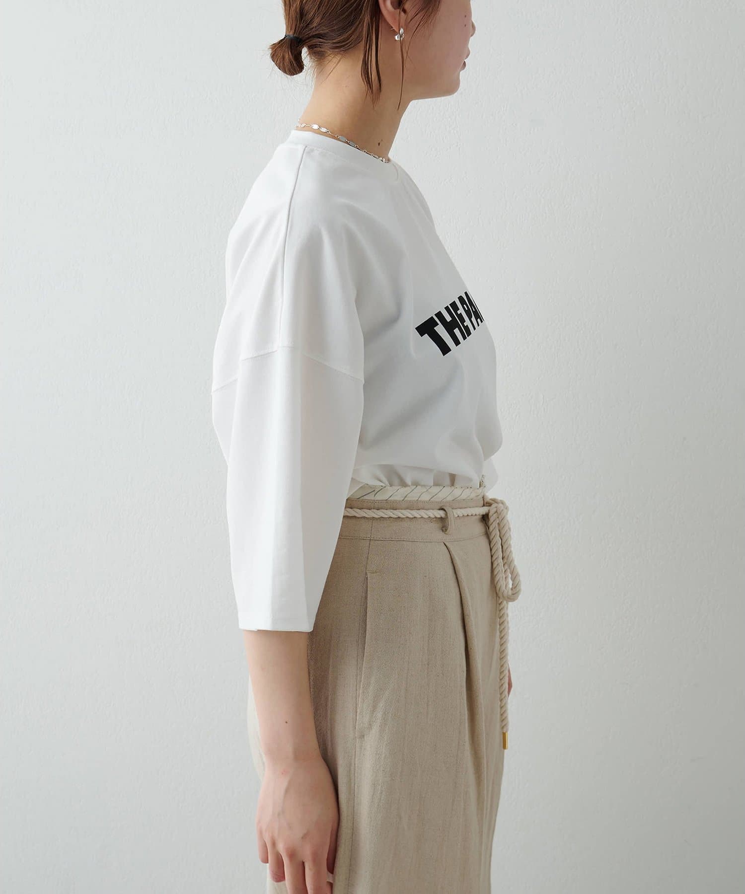 ■適度に落ち感があるため、カジュアルながらもどこか女性らしい雰囲気に。