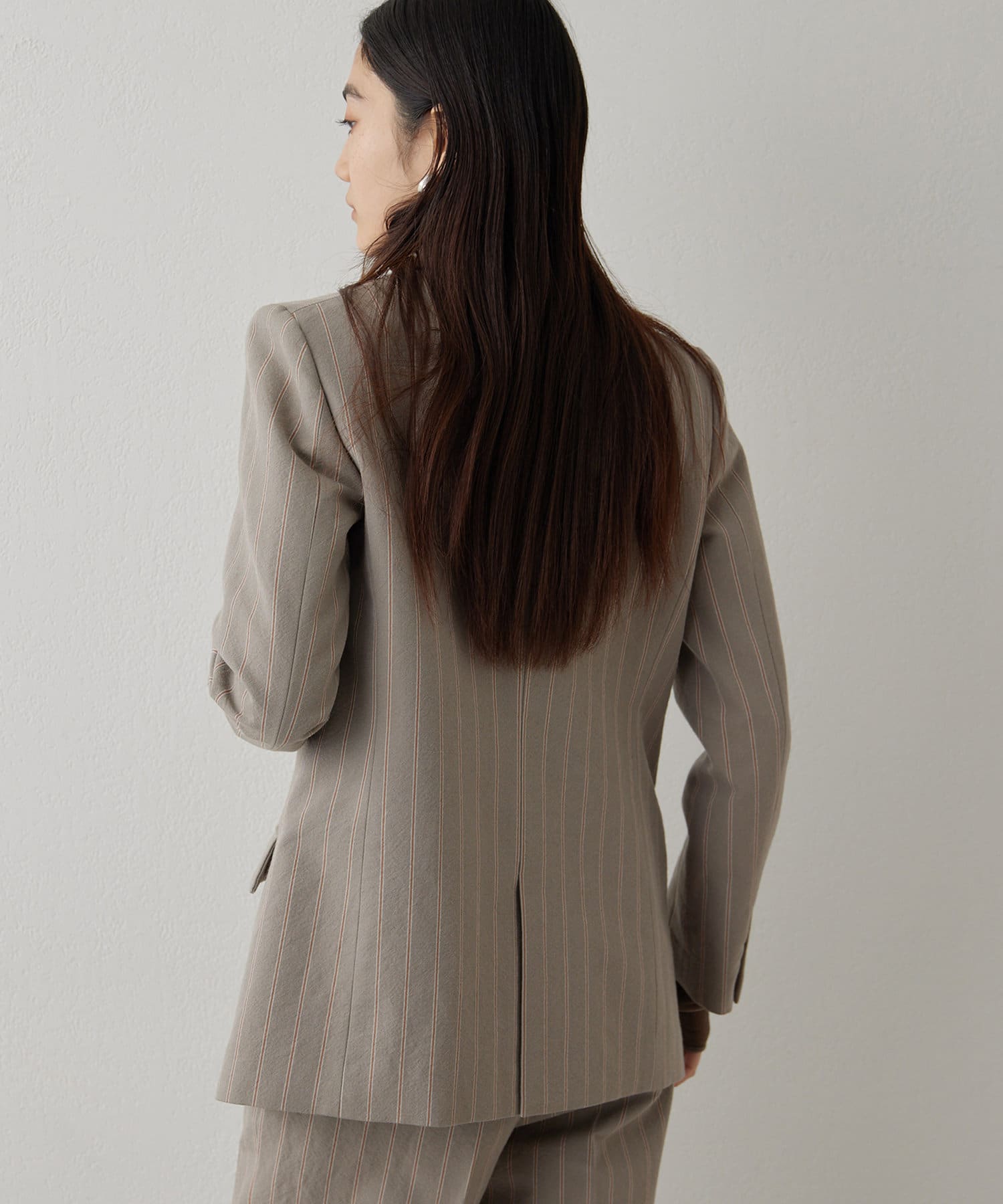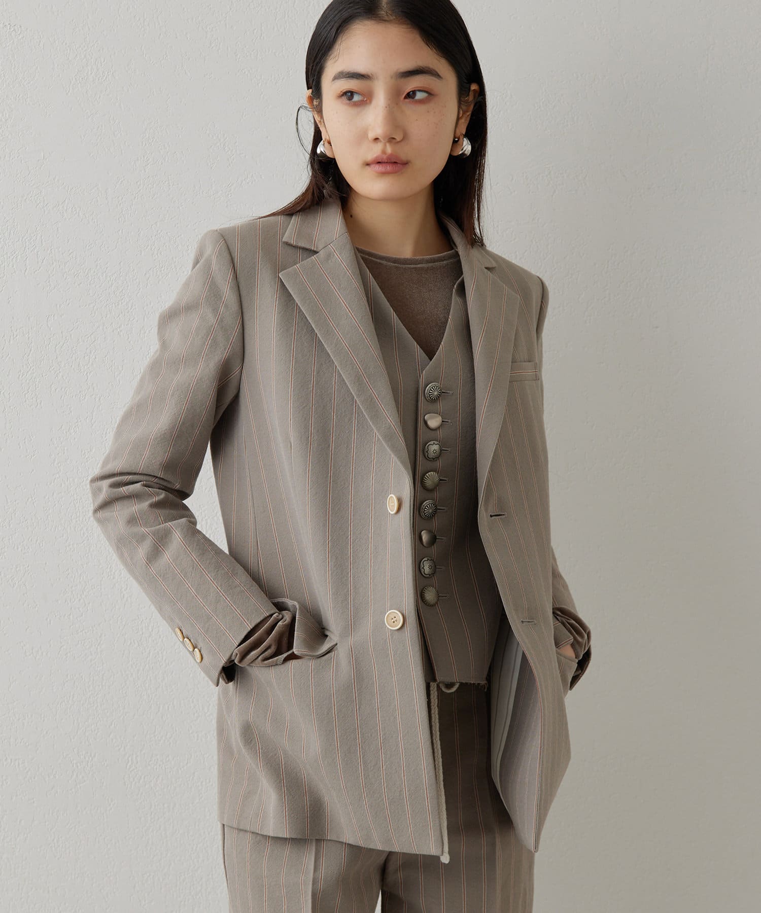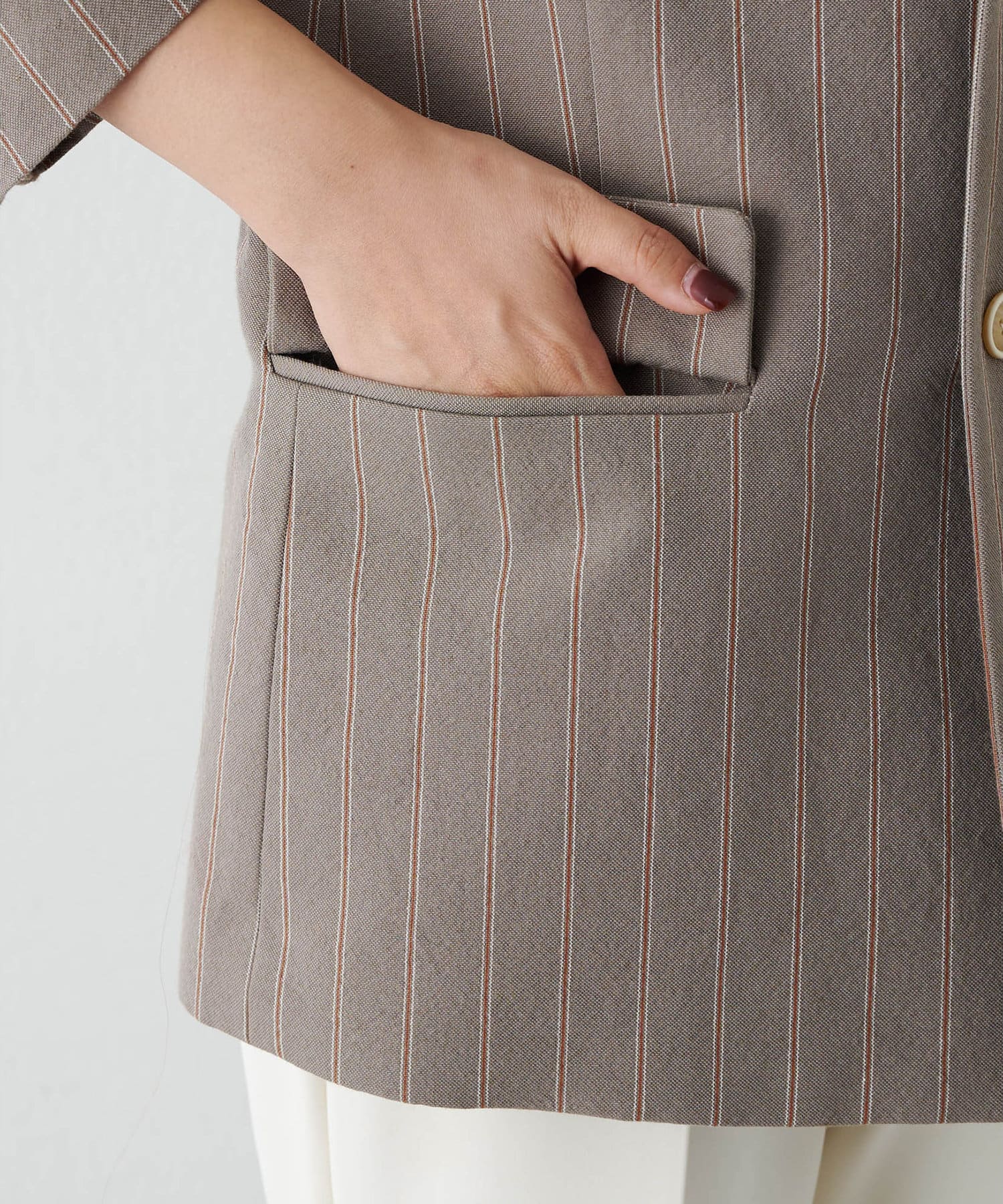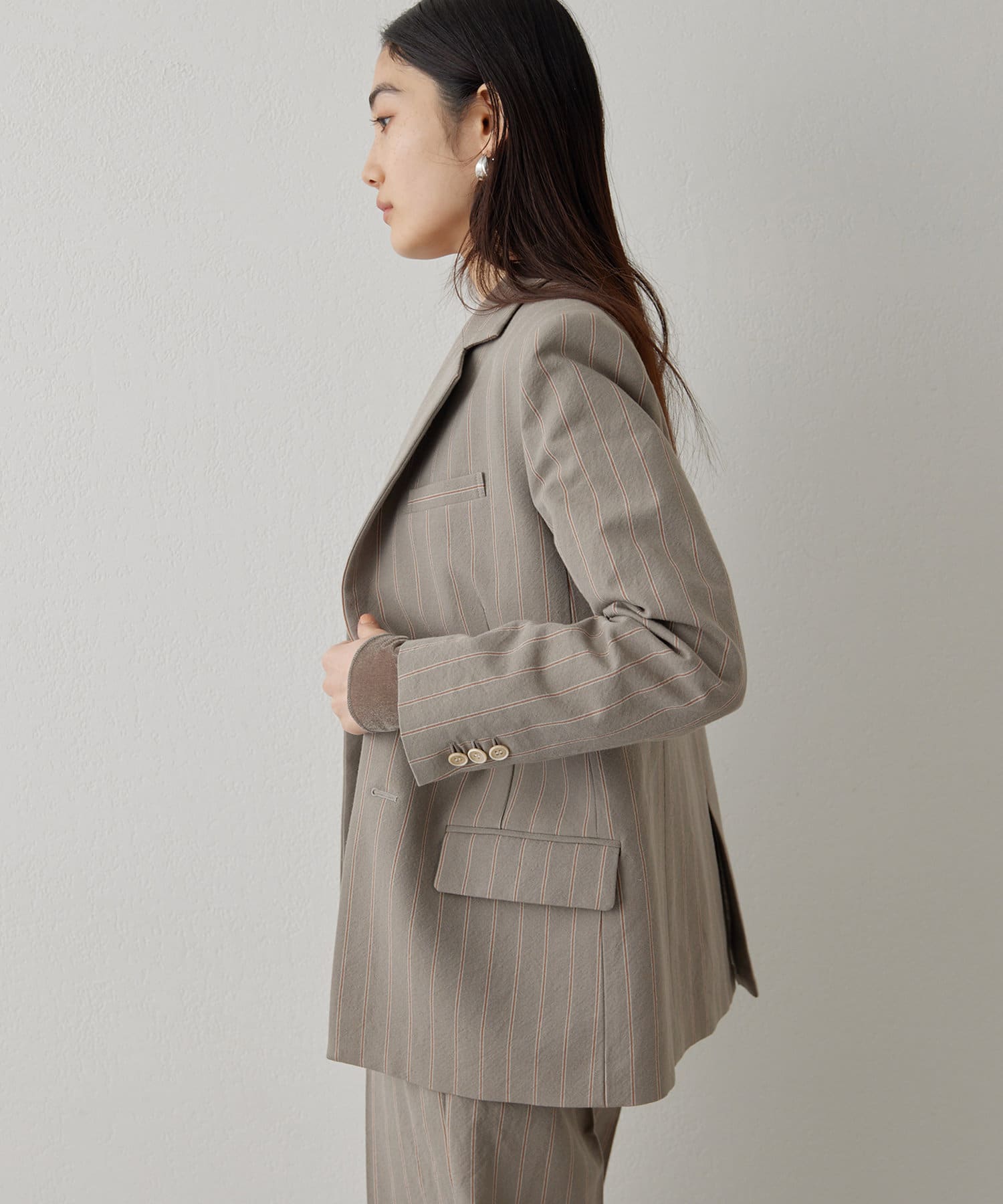 ■ニュアンスのあるストライプ柄の生地で仕立てたジャケット。