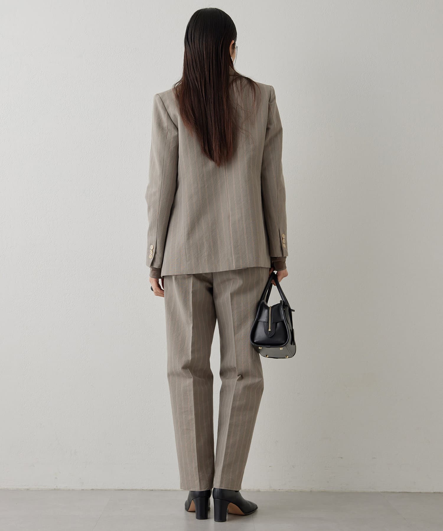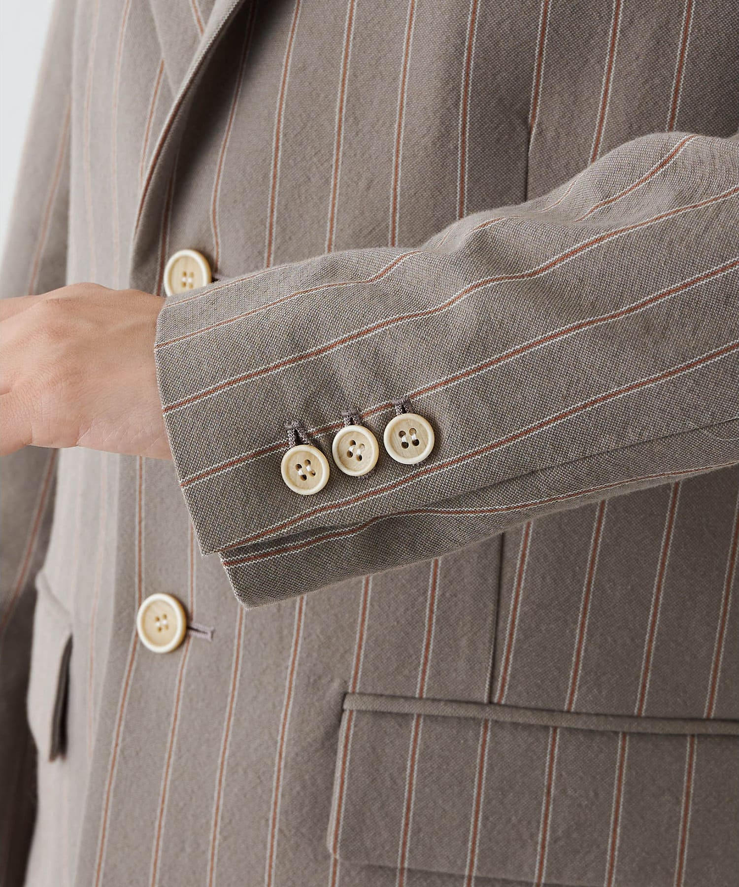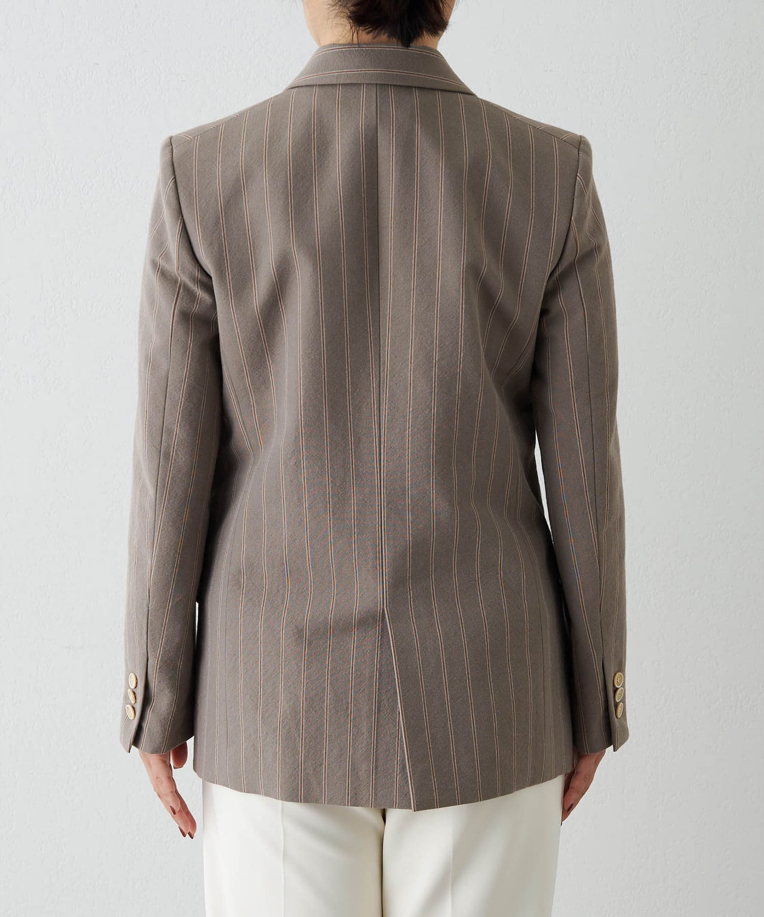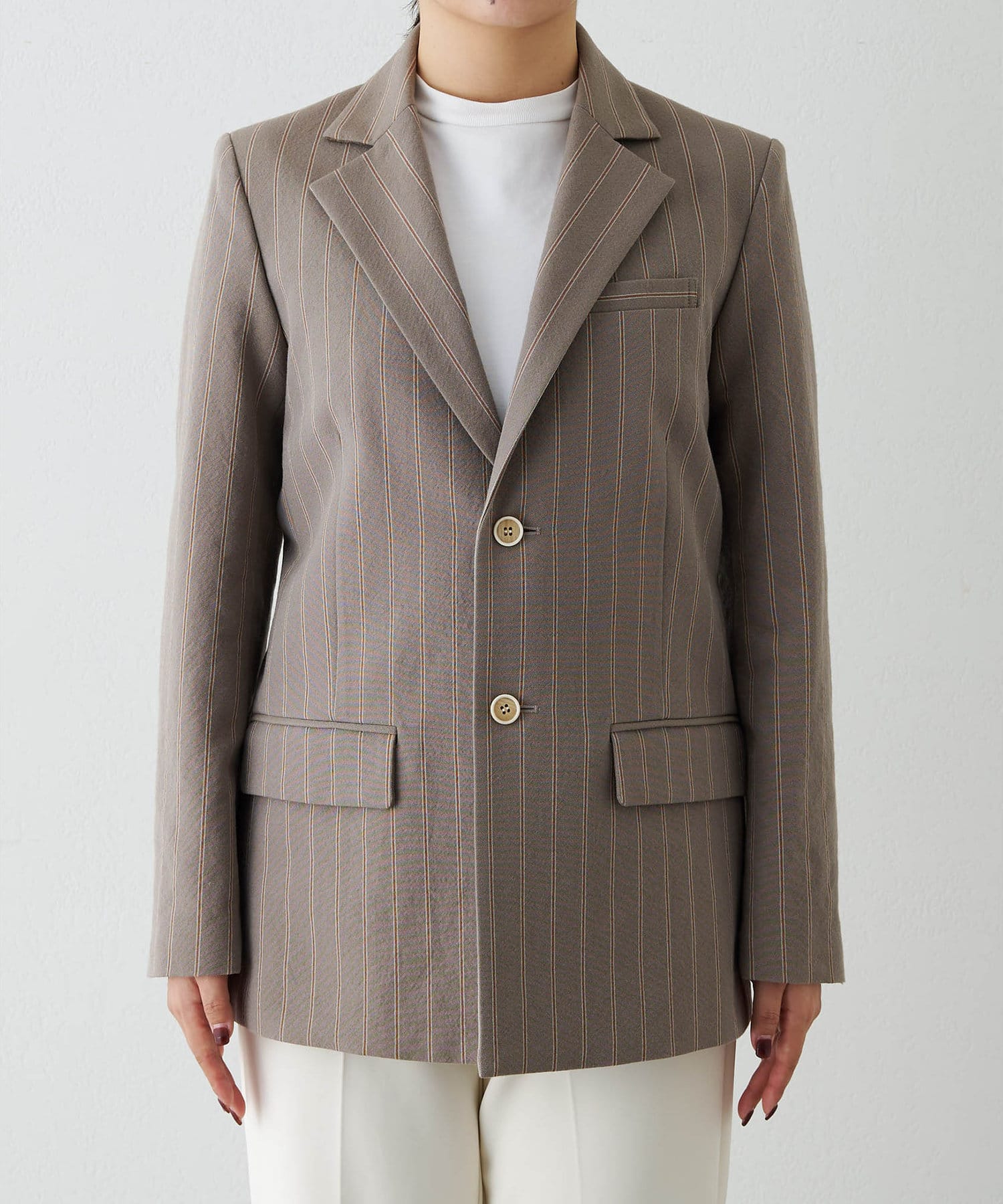 ■ニュアンスのあるストライプ柄の生地で仕立てたジャケット。