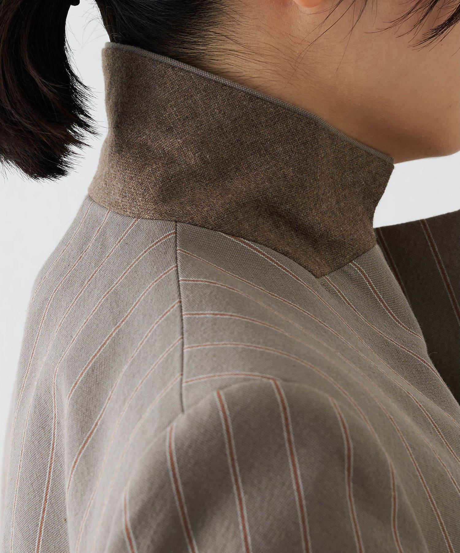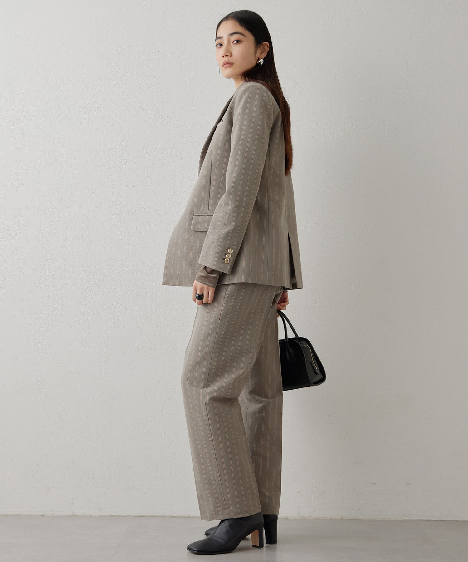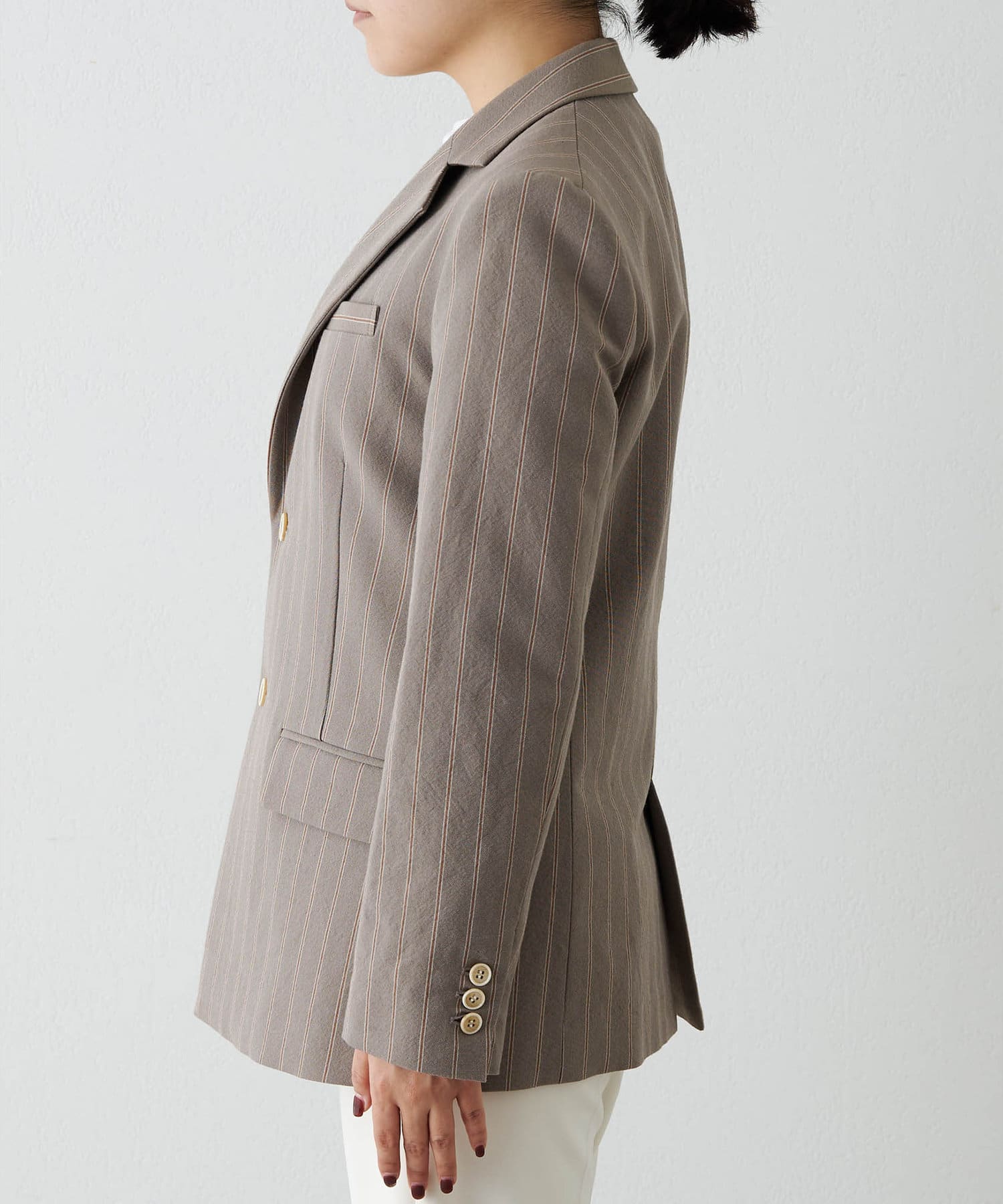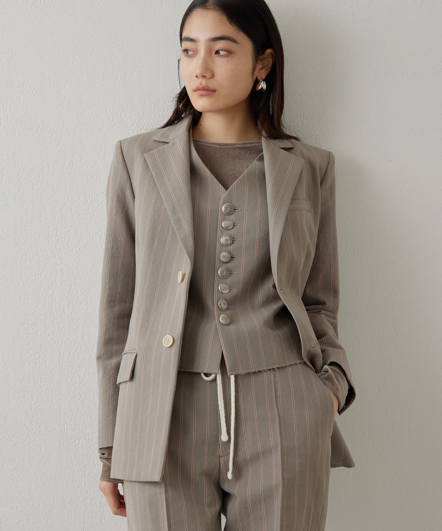 ■ニュアンスのあるストライプ柄の生地で仕立てたジャケット。