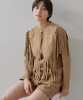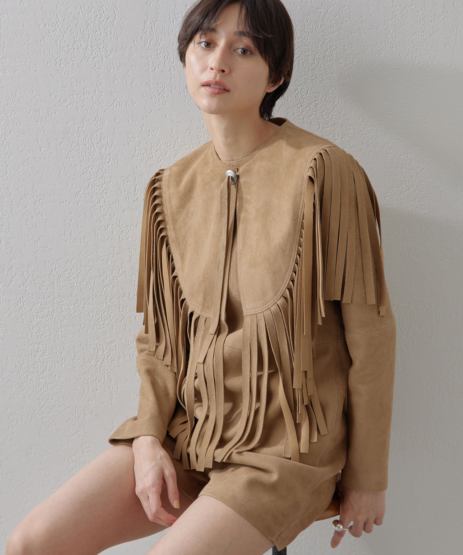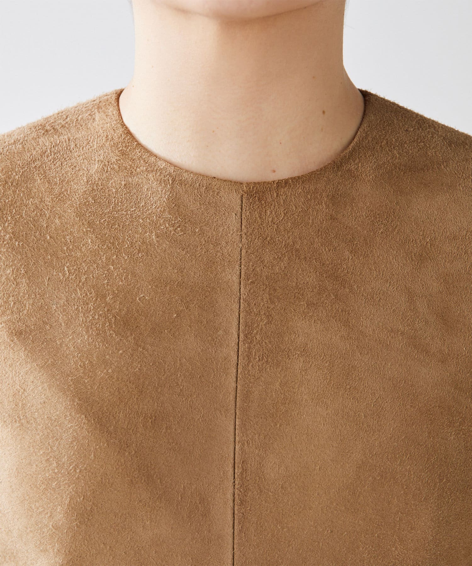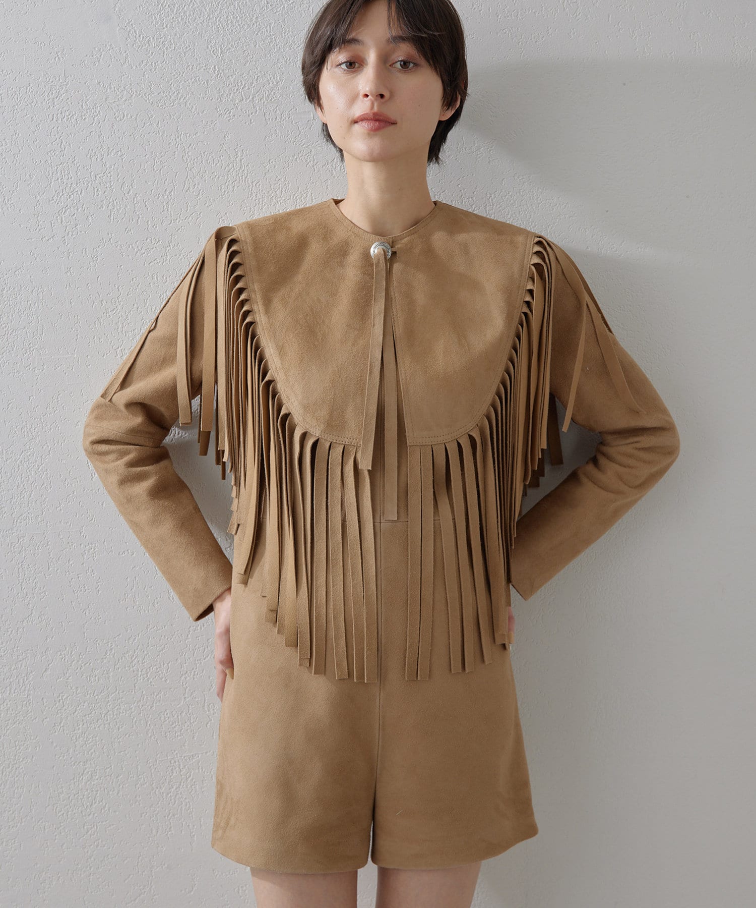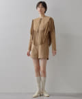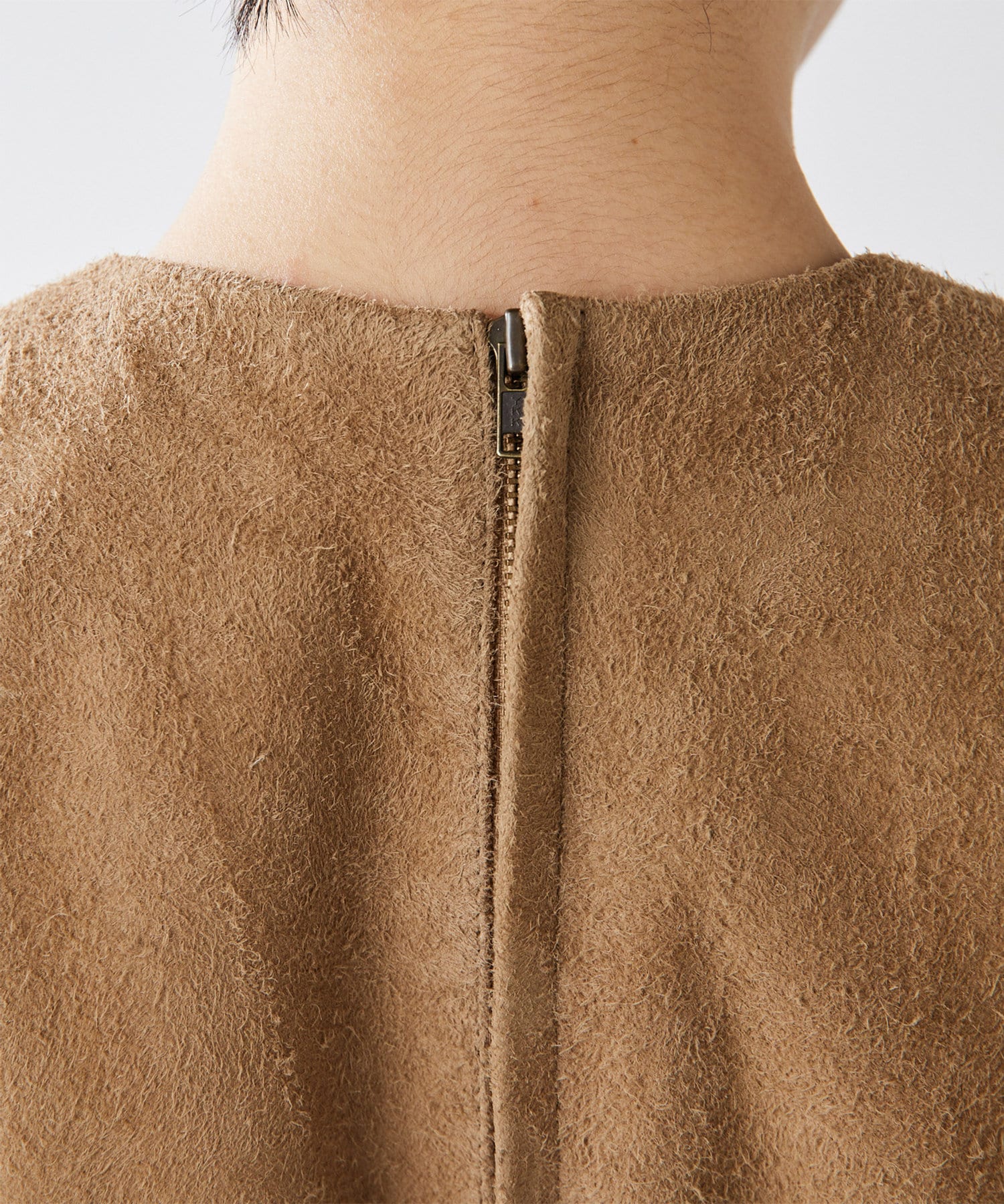 ■厚手のスエード素材を使用したミニ丈のオールインワン。