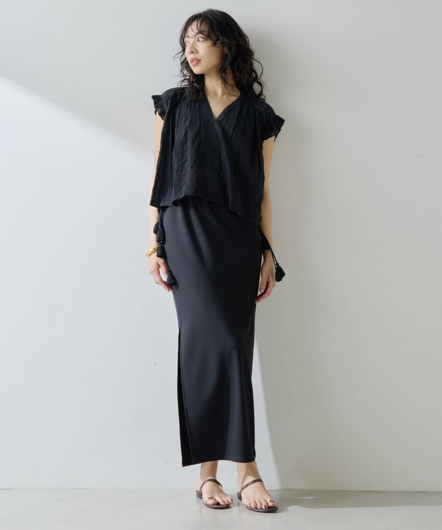 ■一枚で楽しむのはもちろん、キャミワンピなどの上から重ねてレイヤードスタイルもおすすめ。