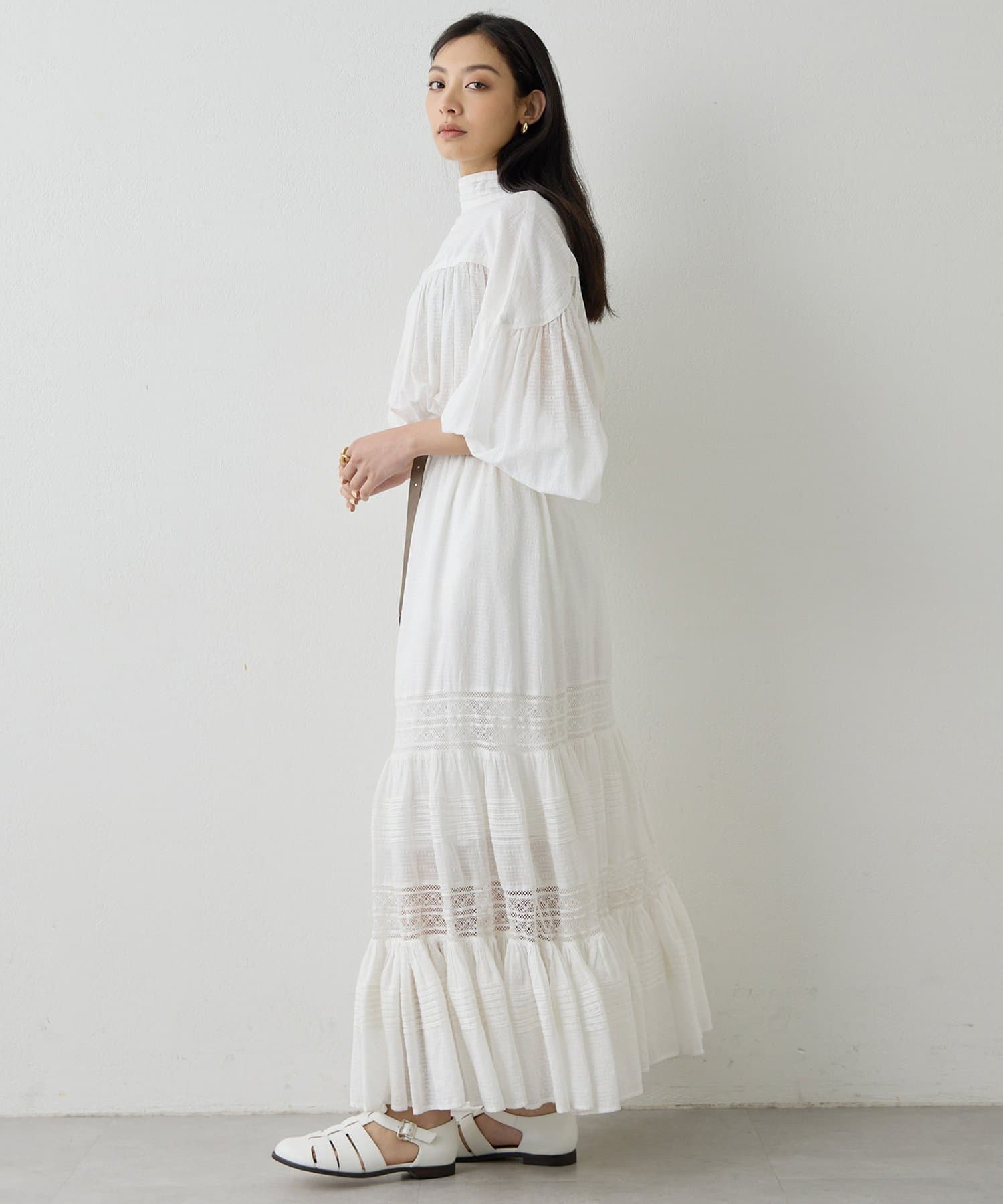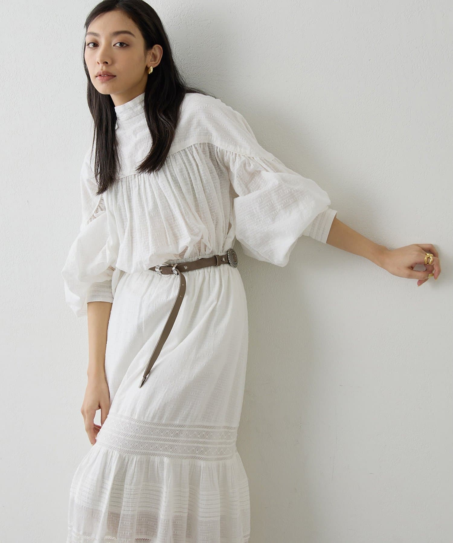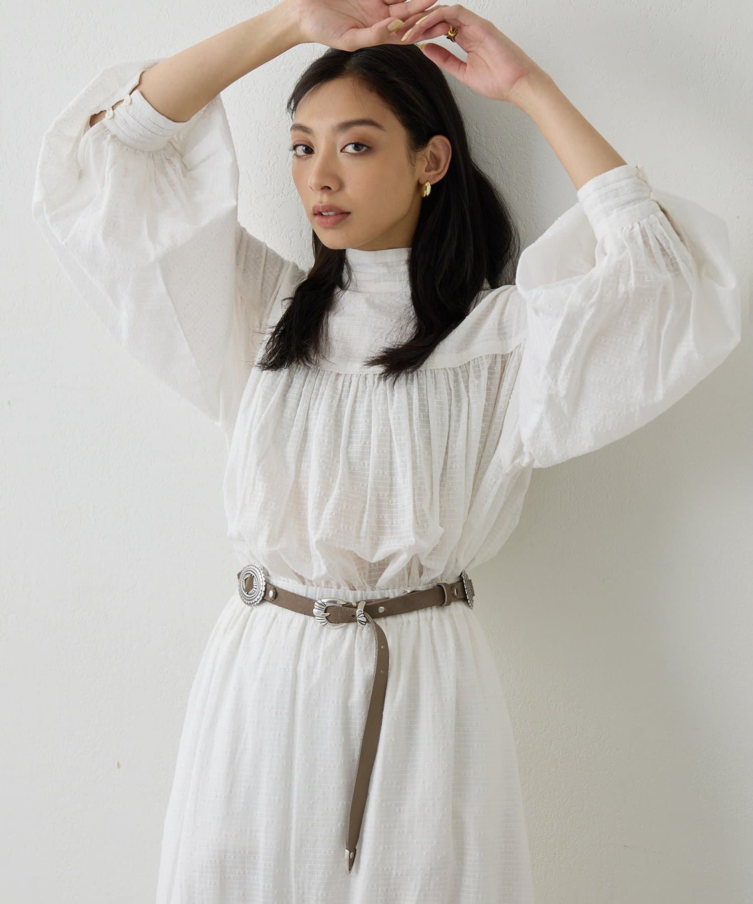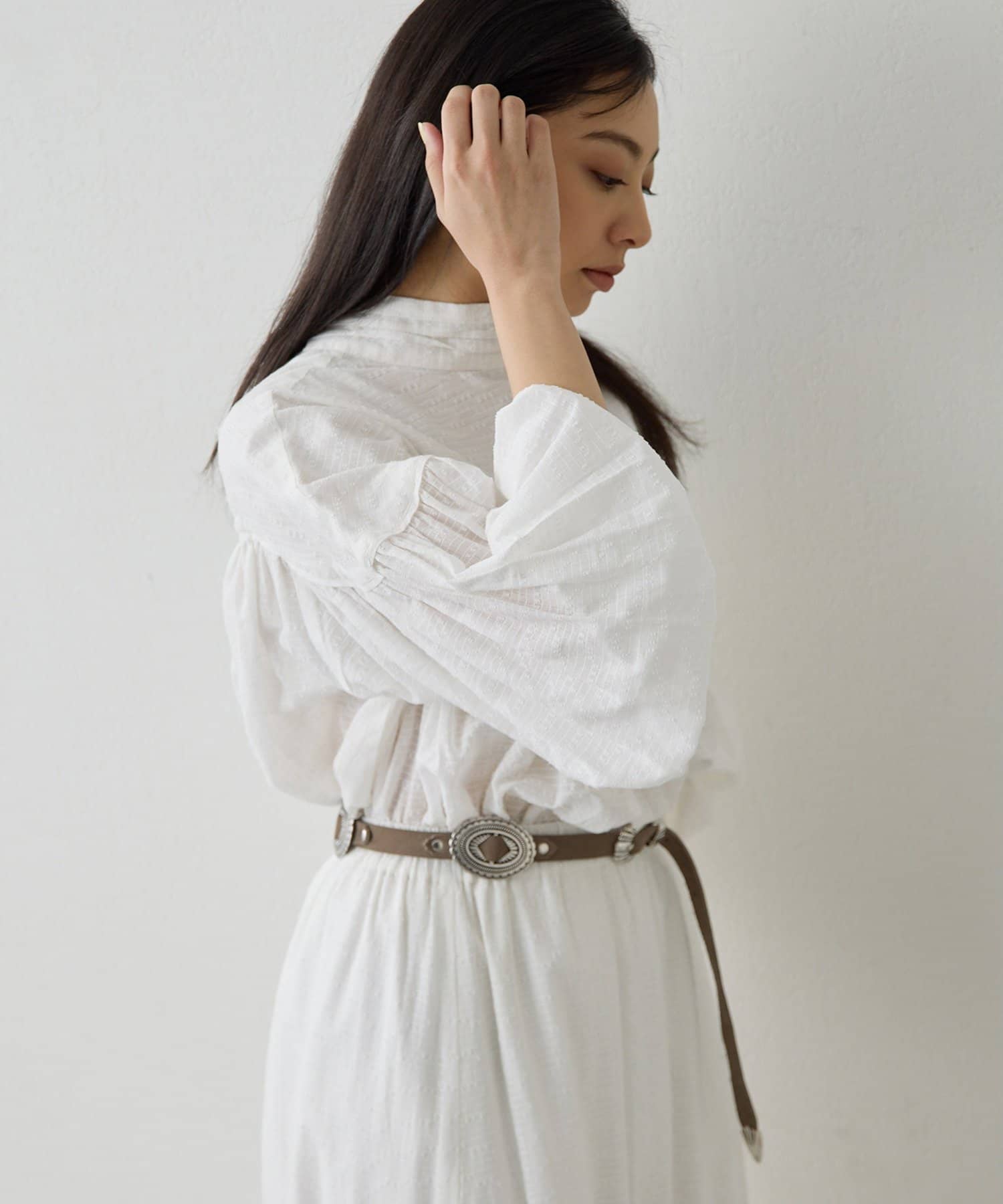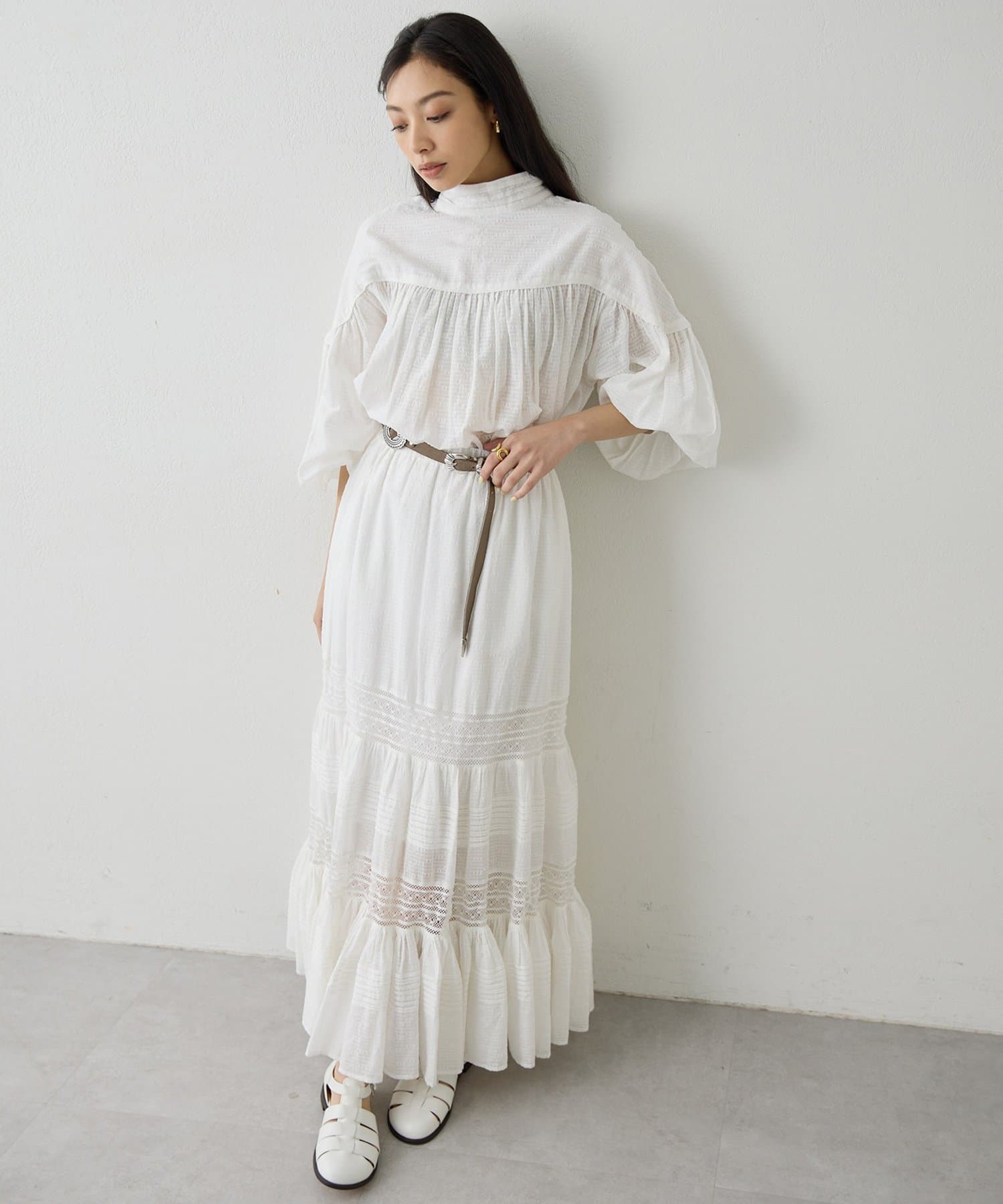 ■同素材のコットンギャザーマキシスカート(ブランド品番:WGS1061201A0001)と合わせてワンピースのように楽しむのもおすすめ。