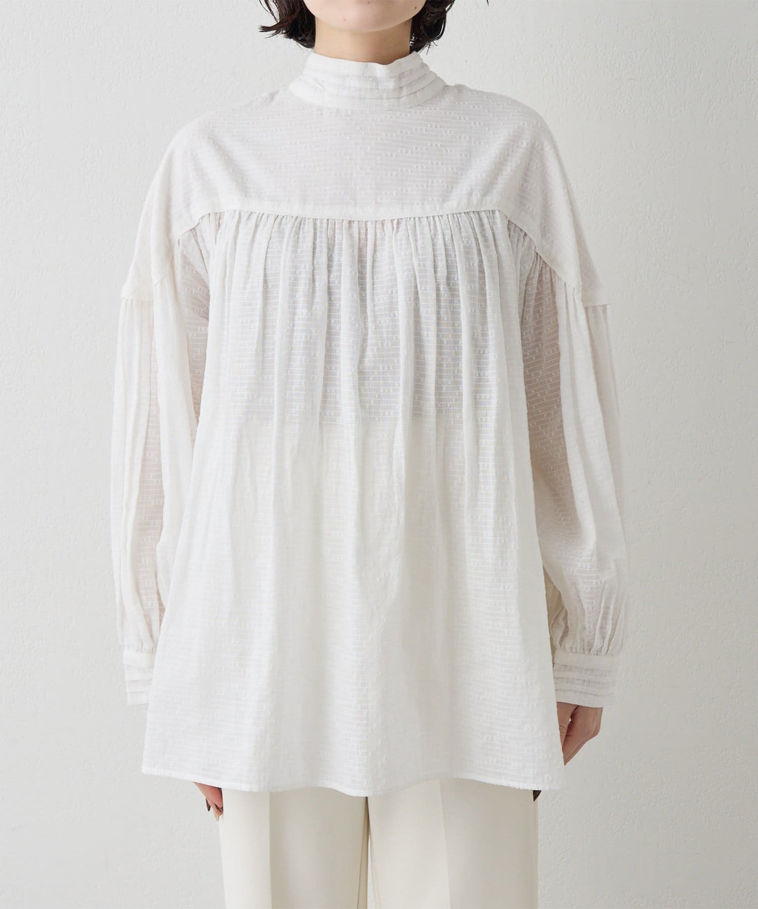 コットンギャザー切替ブラウス