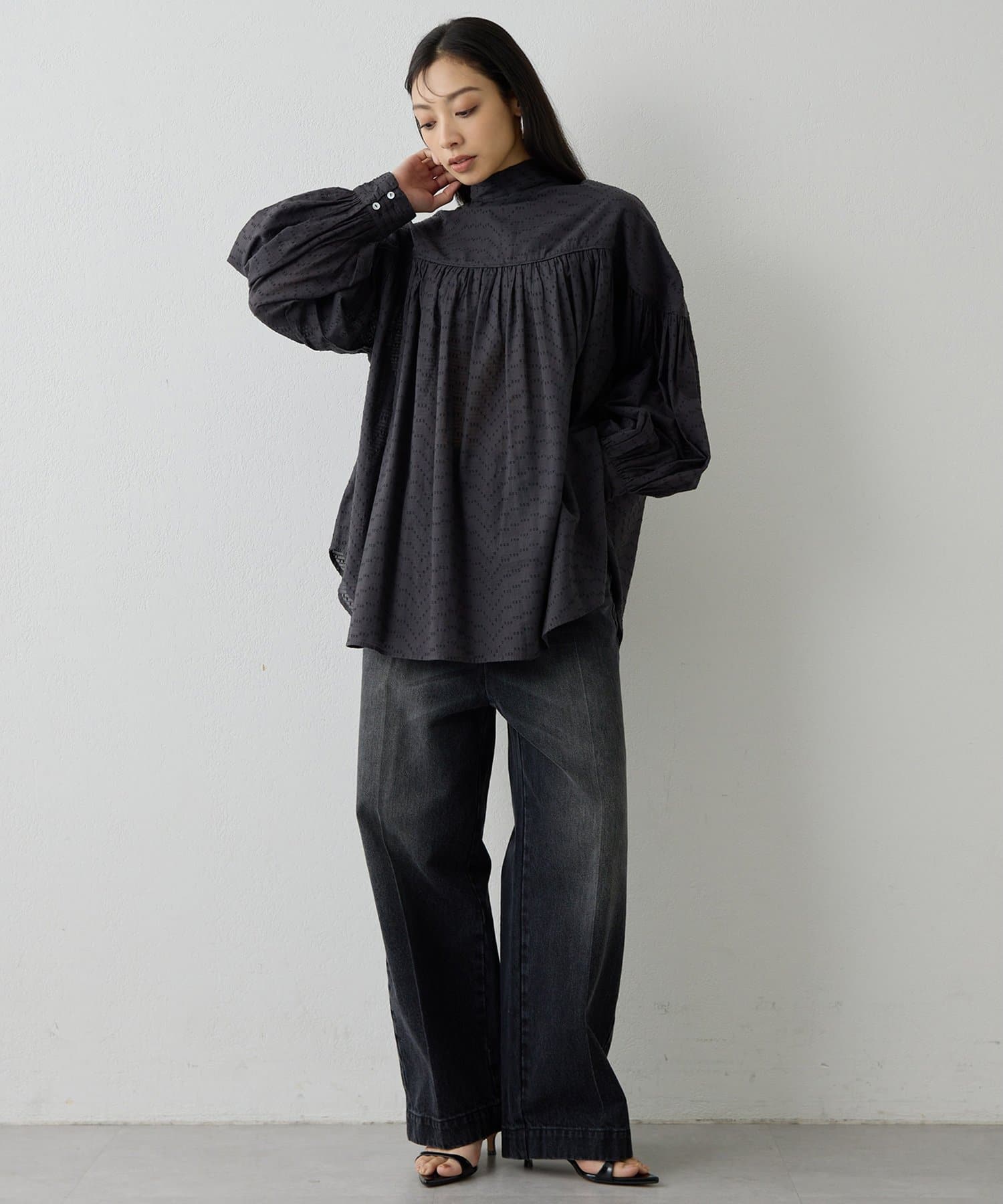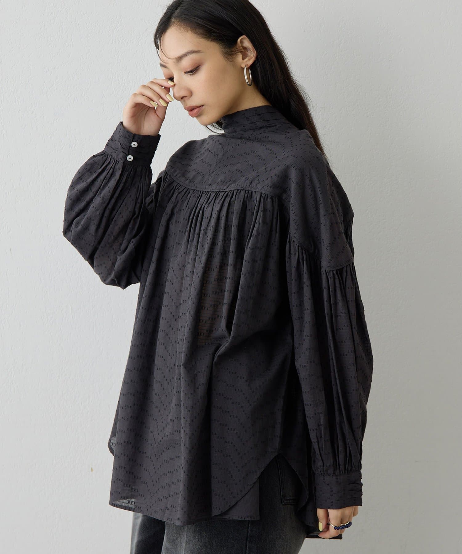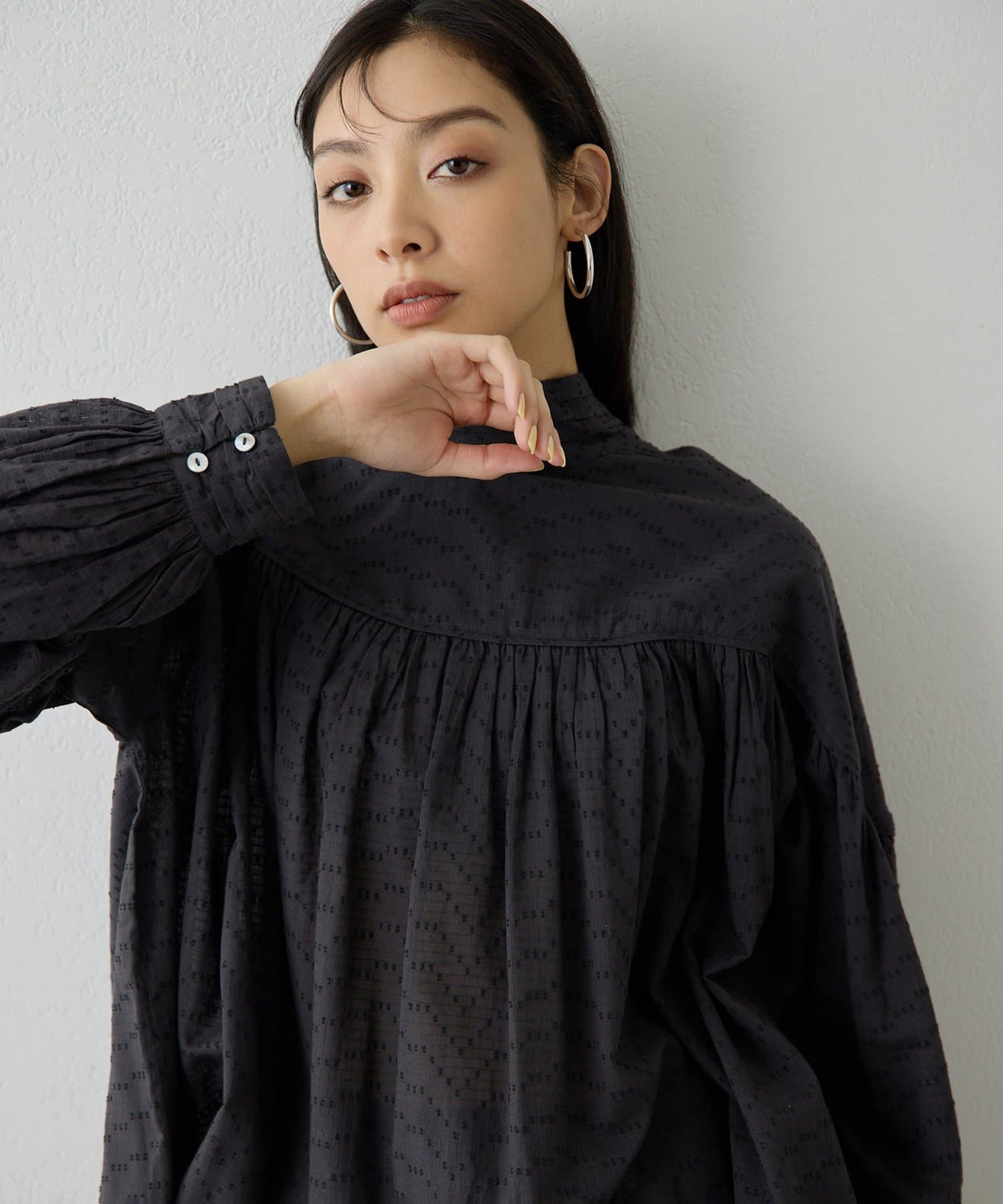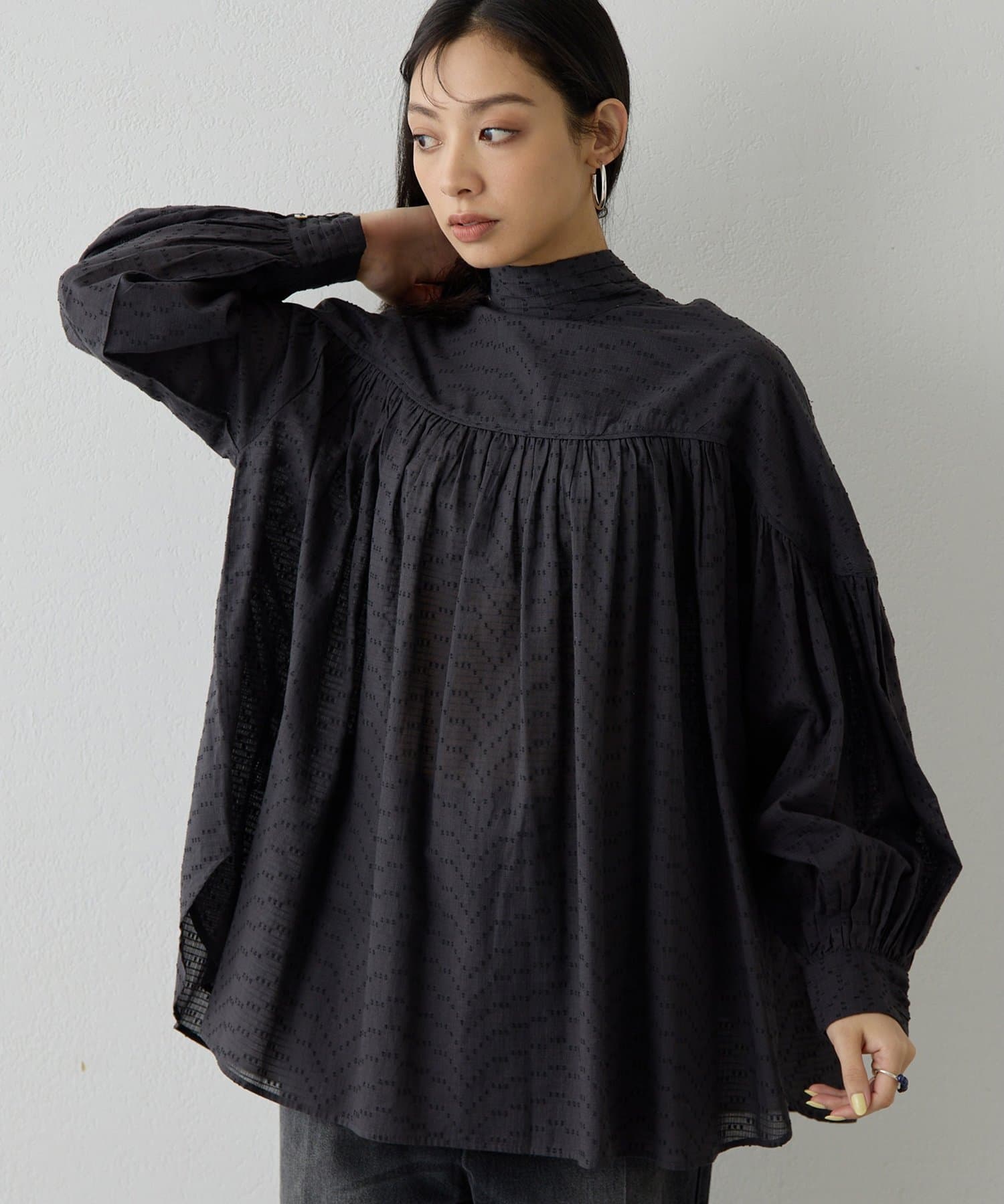 素材の表情とデザインで着映える、華やかギャザーブラウス