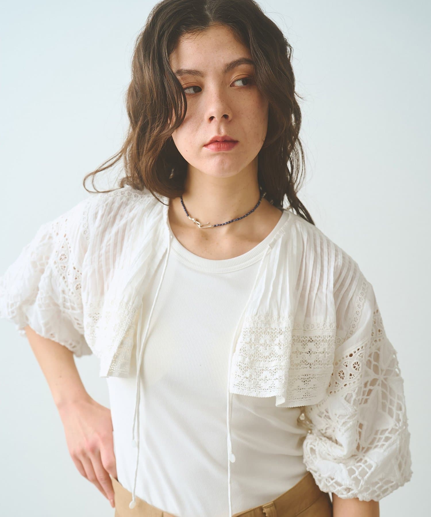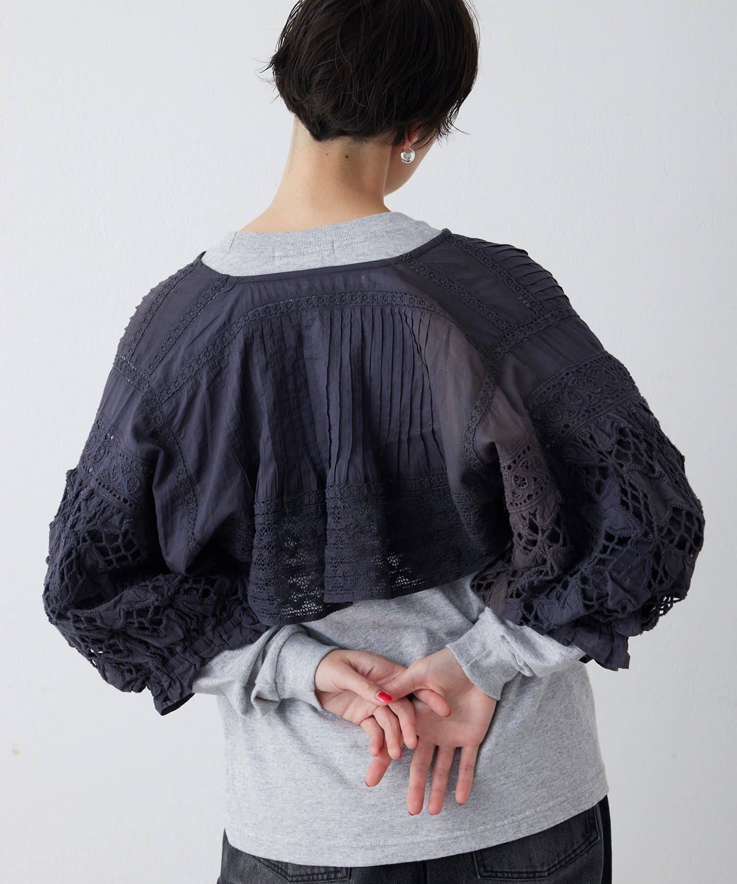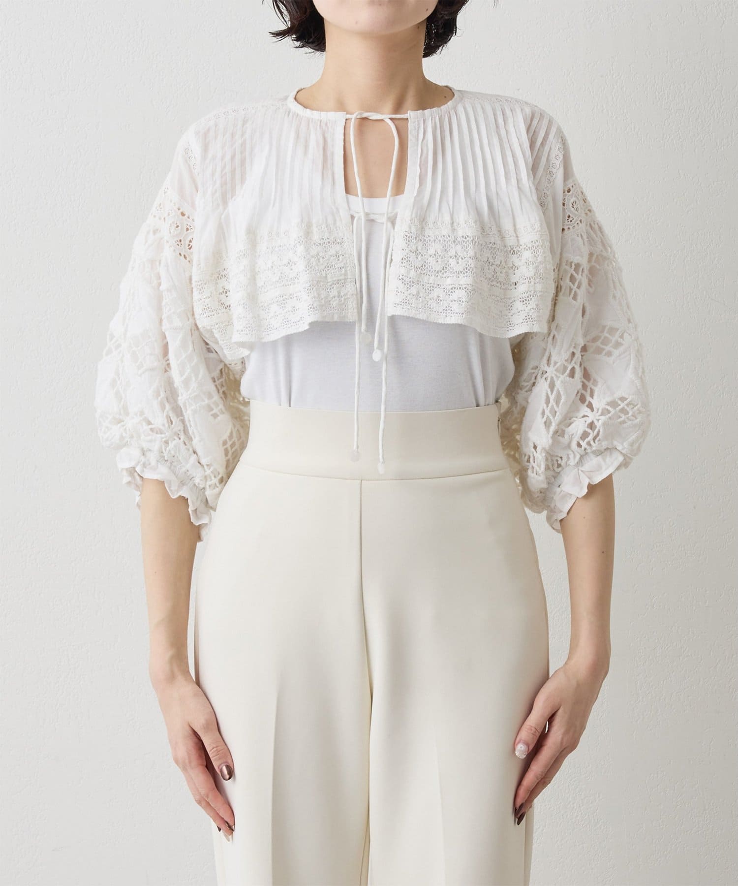 ■異なる表情のレースを組み合わせた存在感のあるボレロ。
