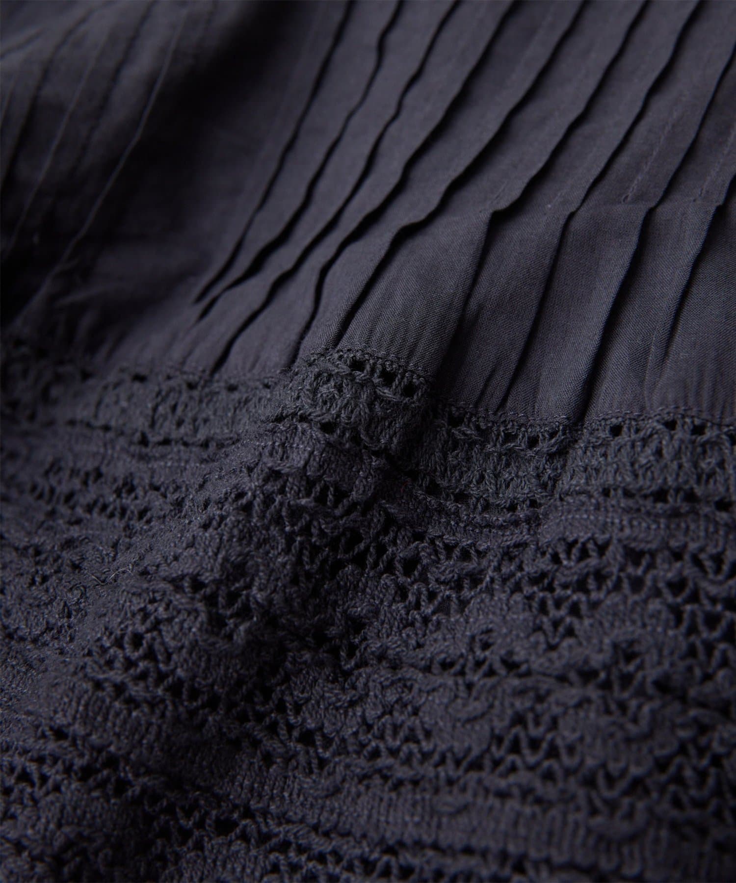 ■前後身頃部分には一点一点手作業でタックの縫製を行い、凹凸感のある仕上がりに。
