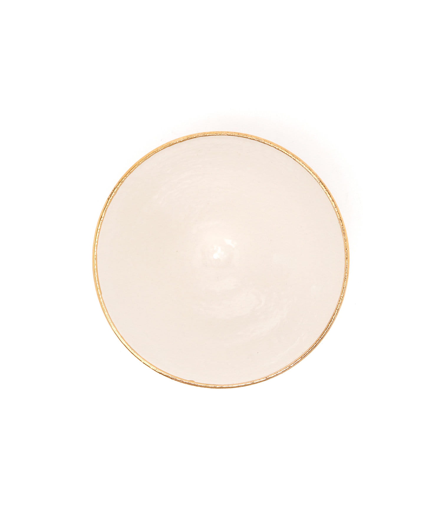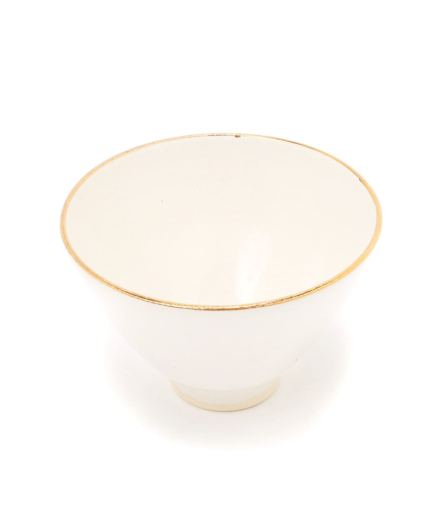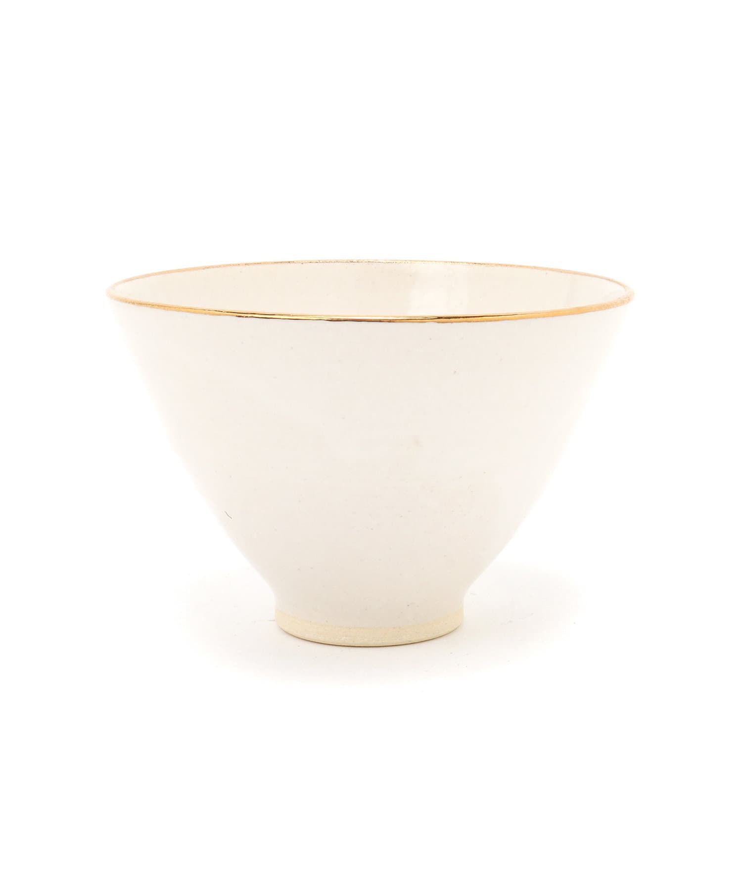 信楽の土に乳白色の釉薬をかけ金彩で縁取った、乳白色×金彩シリーズのカフェオレボウル。