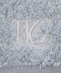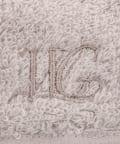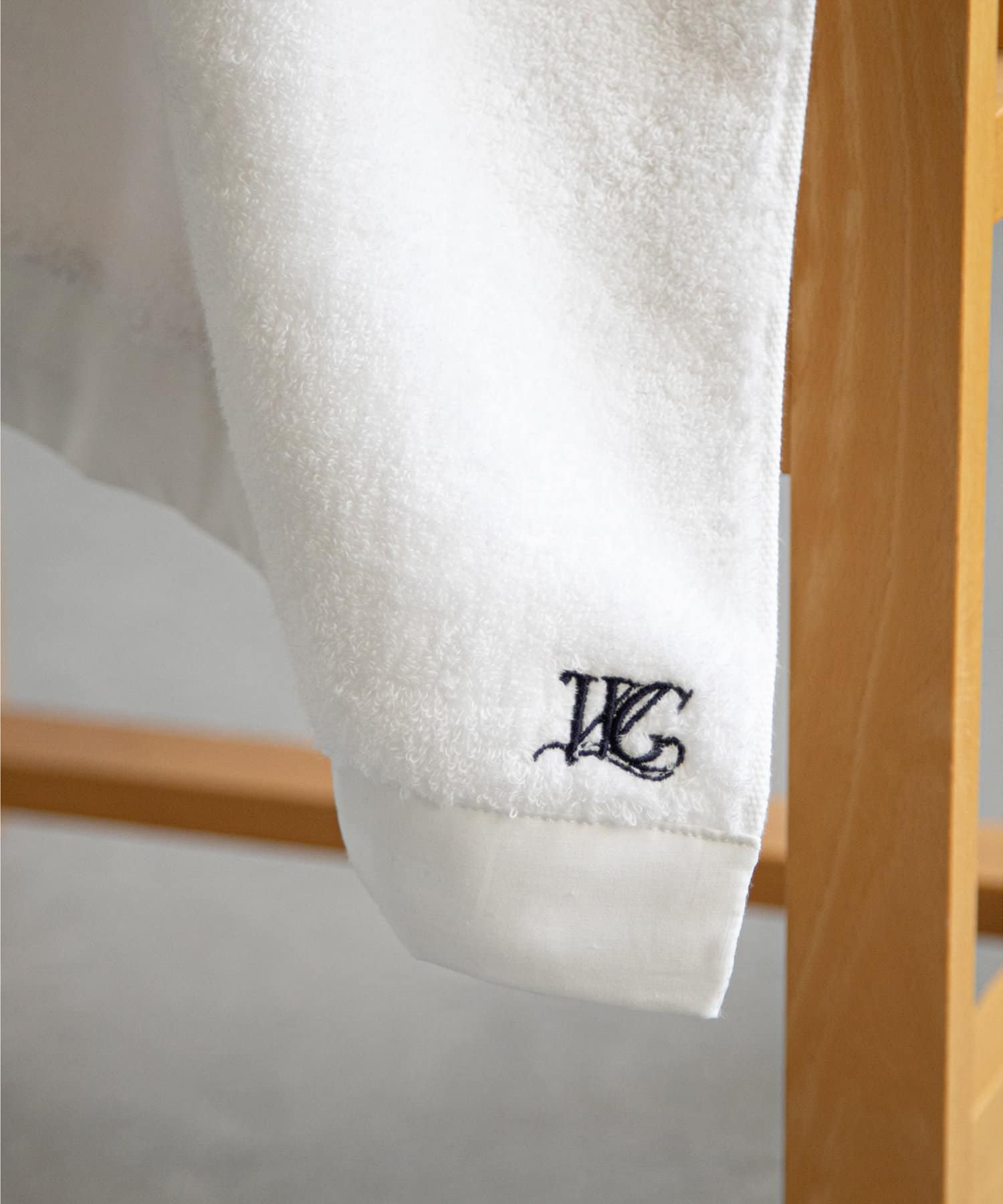ブランドのイニシャル刺繍がポイントになった、オリジナルのバスタオル