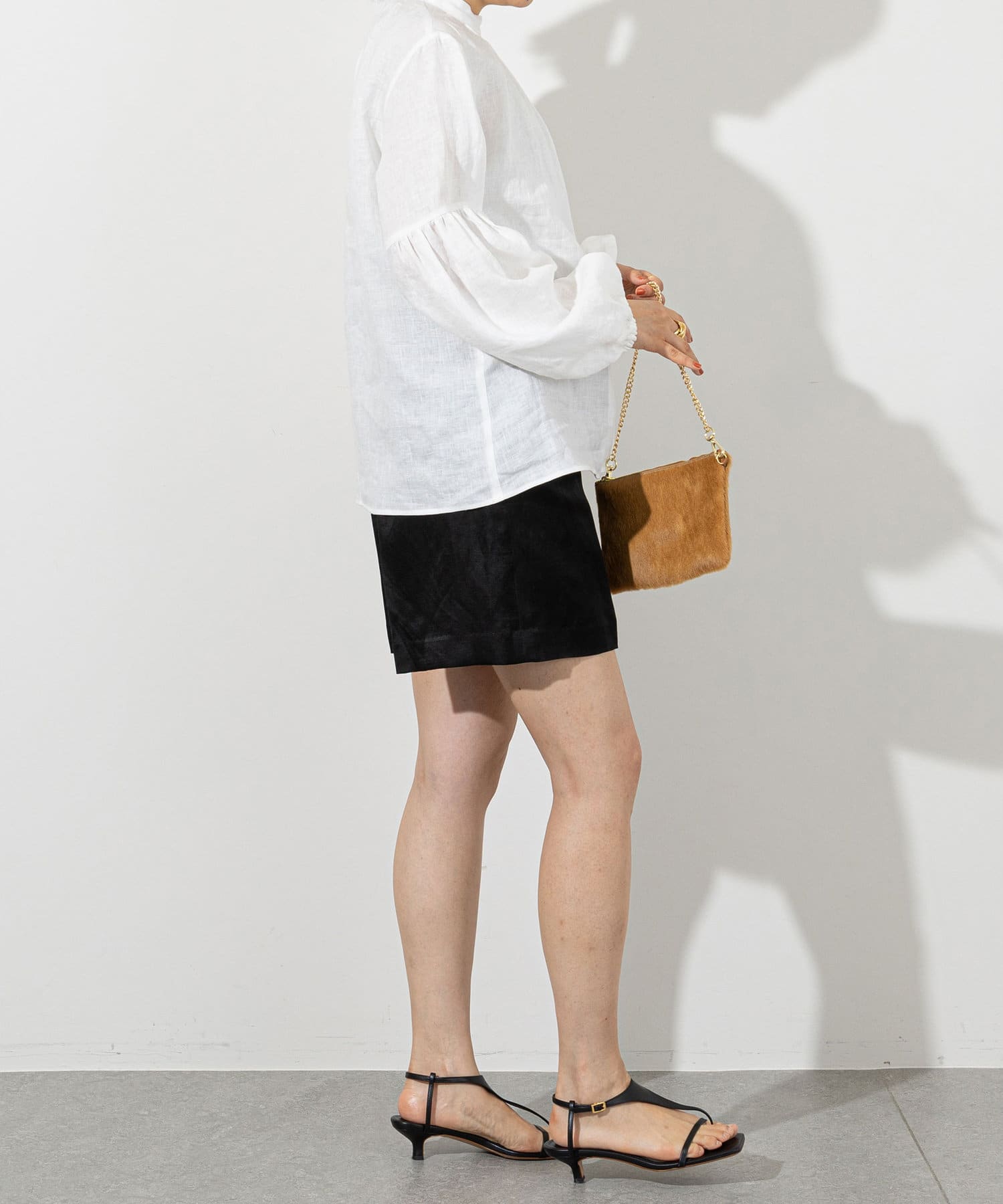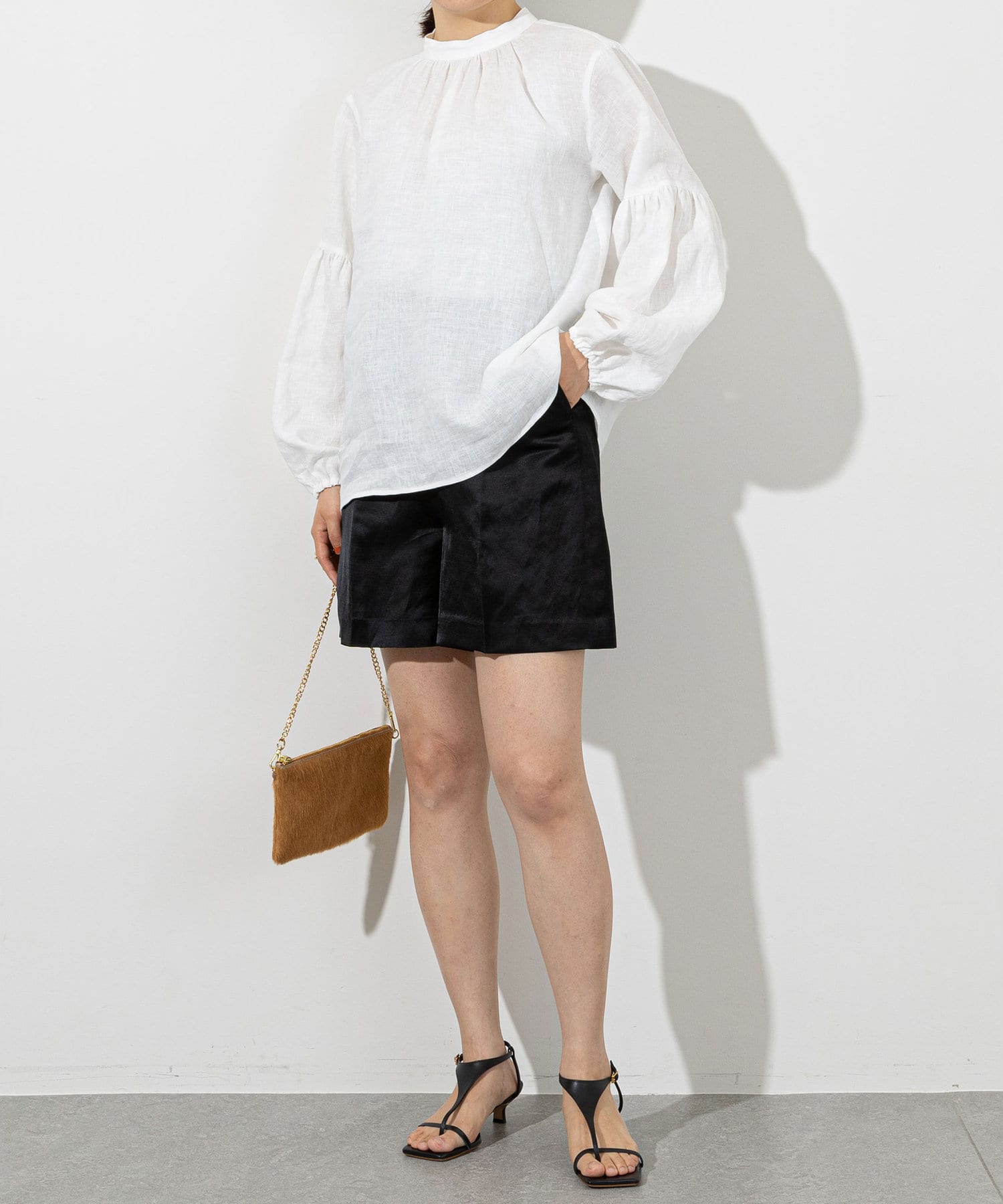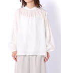 首元にもギャザーを施し、品よくフェミニンなムードをプラスしています。