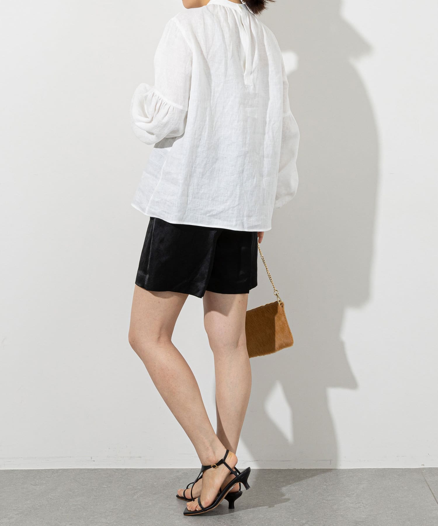 細番手の糸を使用した薄手のフレンチリネン100%のブラウス。