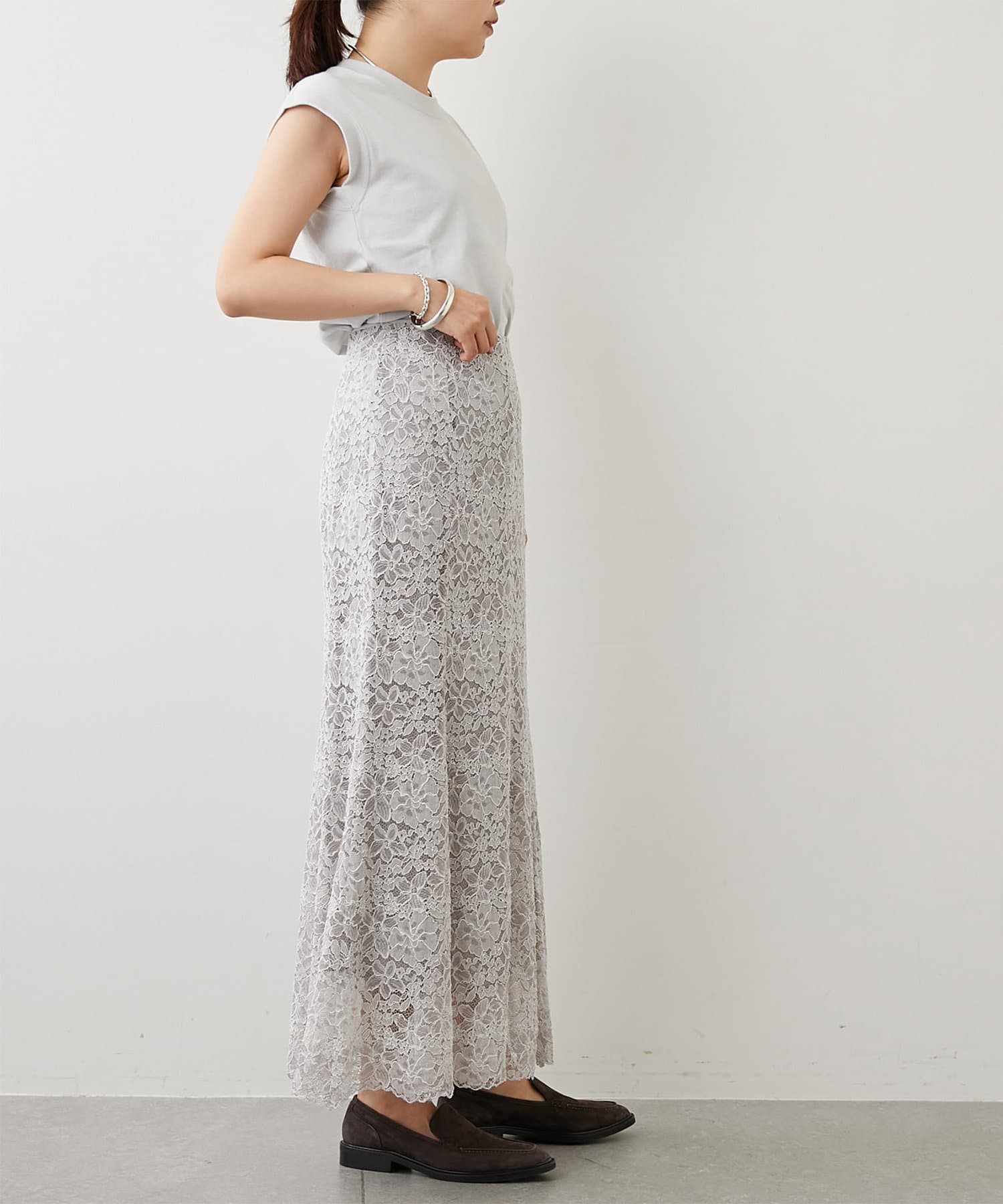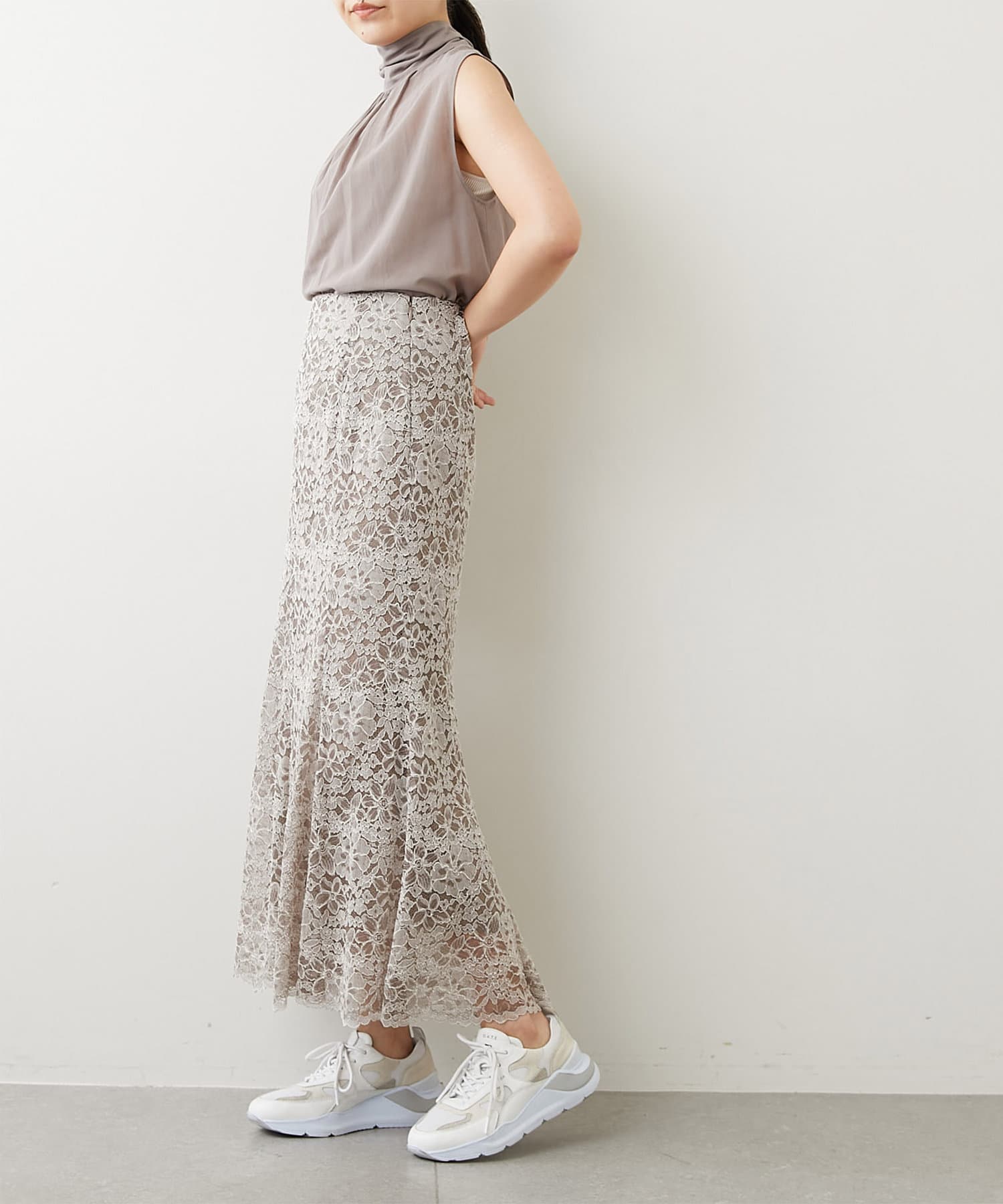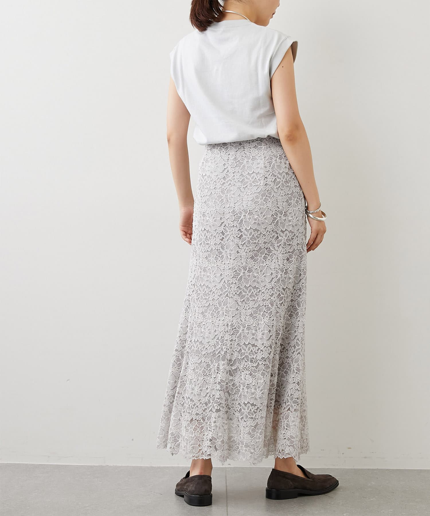 大人のフェミニンスタイルが叶う、レース素材のフレアスカート