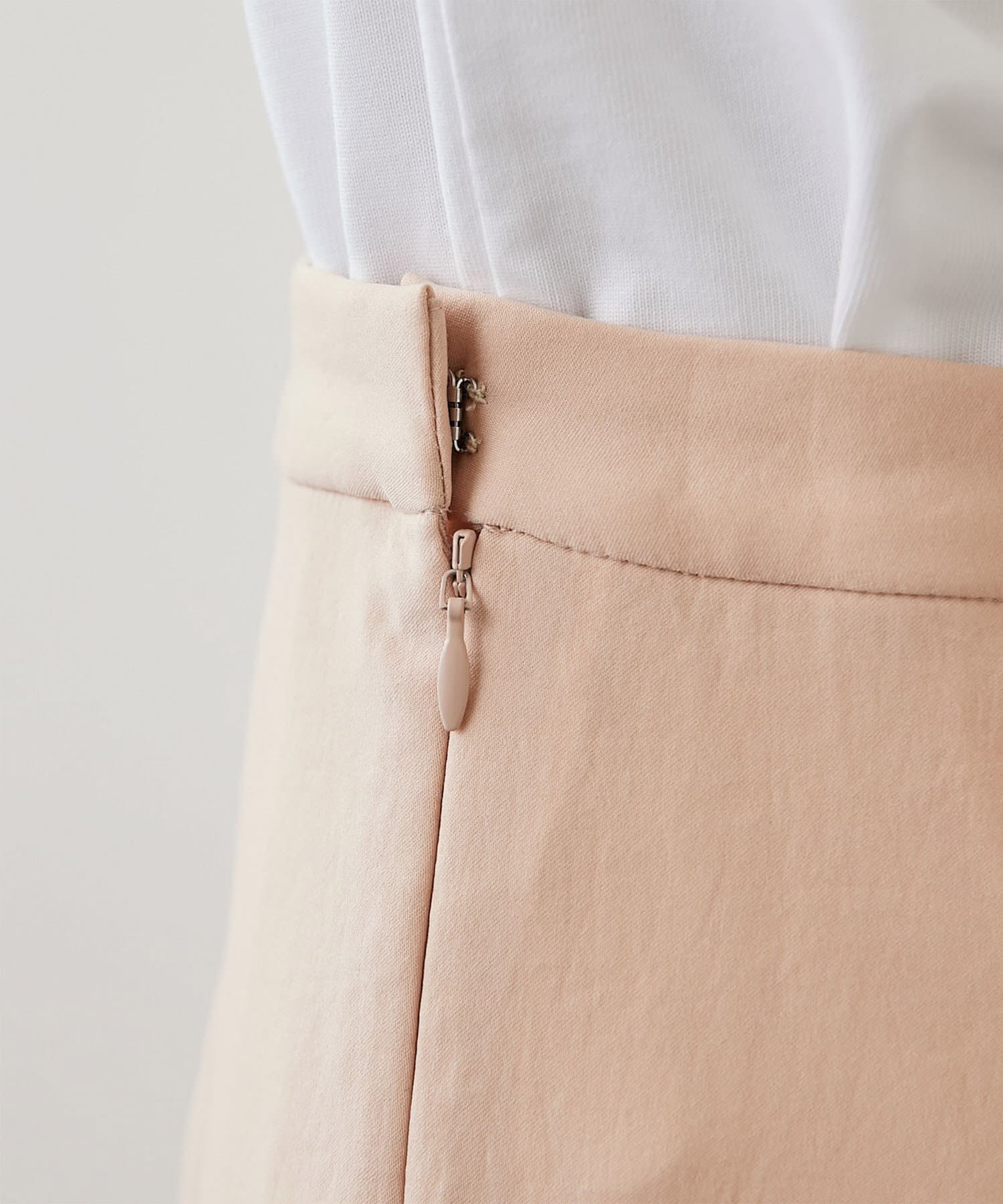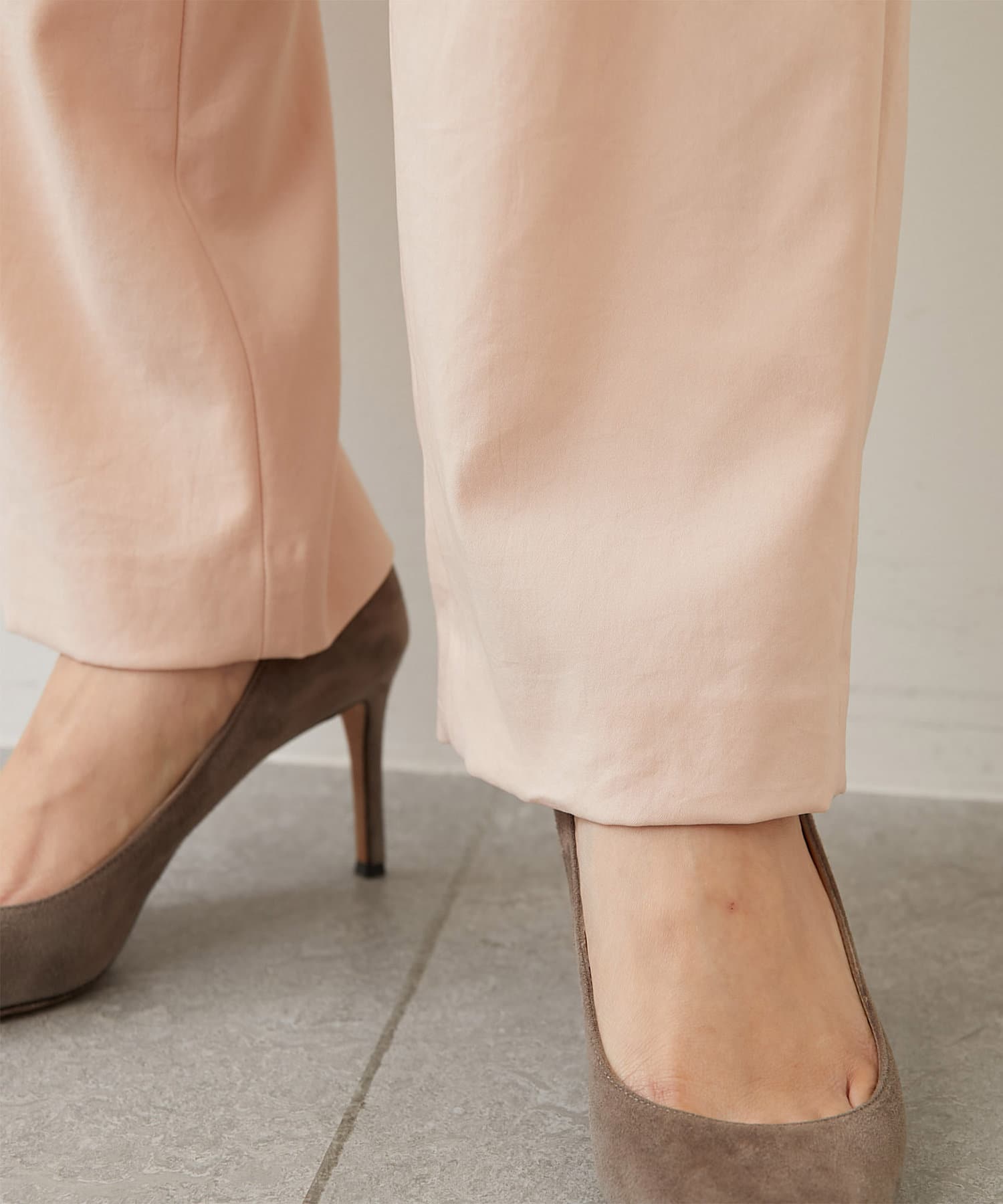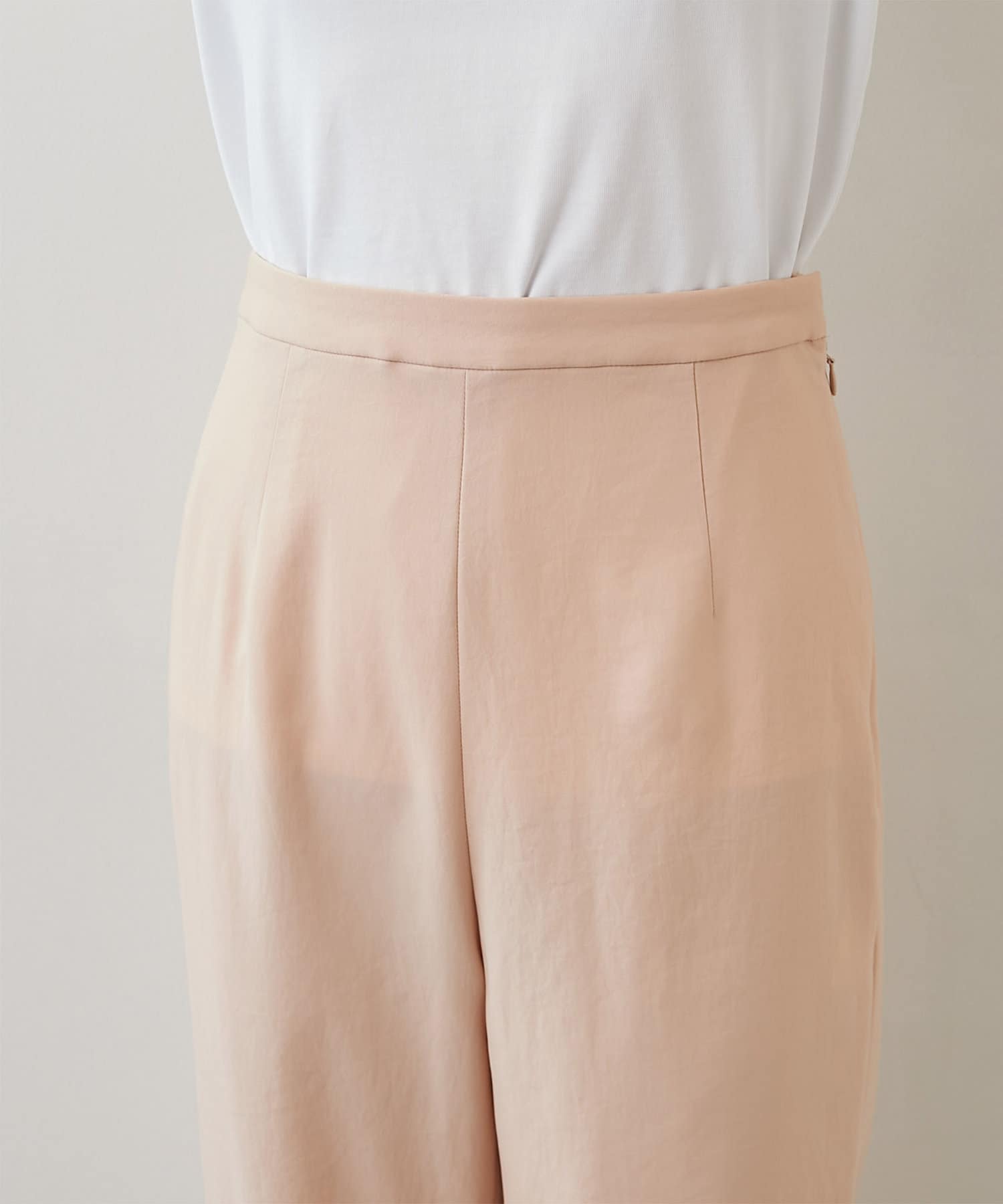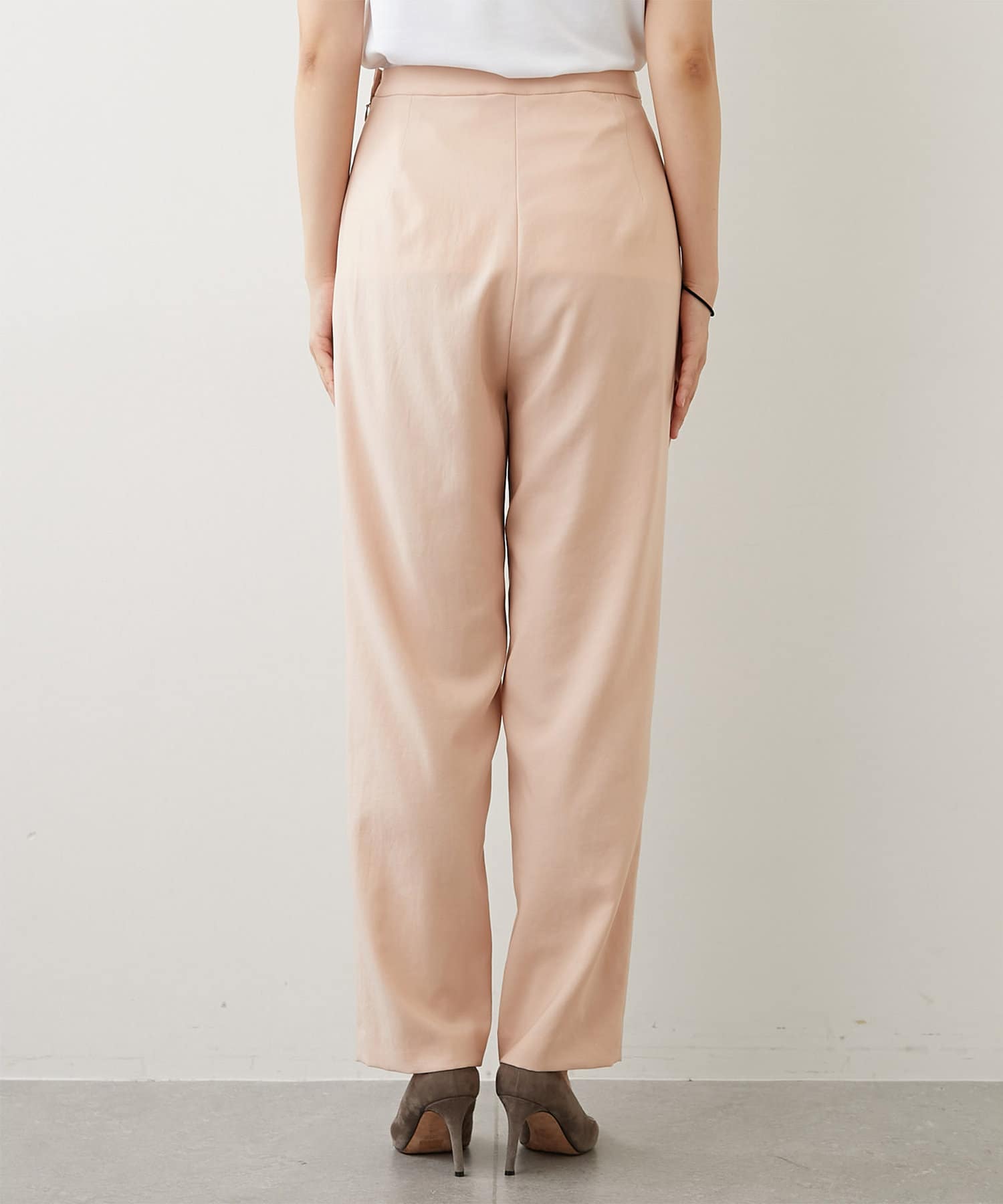 ハイウエストにダーツを入れ、ヒップ周りにややゆとりを持たせたすっきりとしたシルエットに、しなやかで落ち感のある素材感が美脚ラインも叶えてくれます。