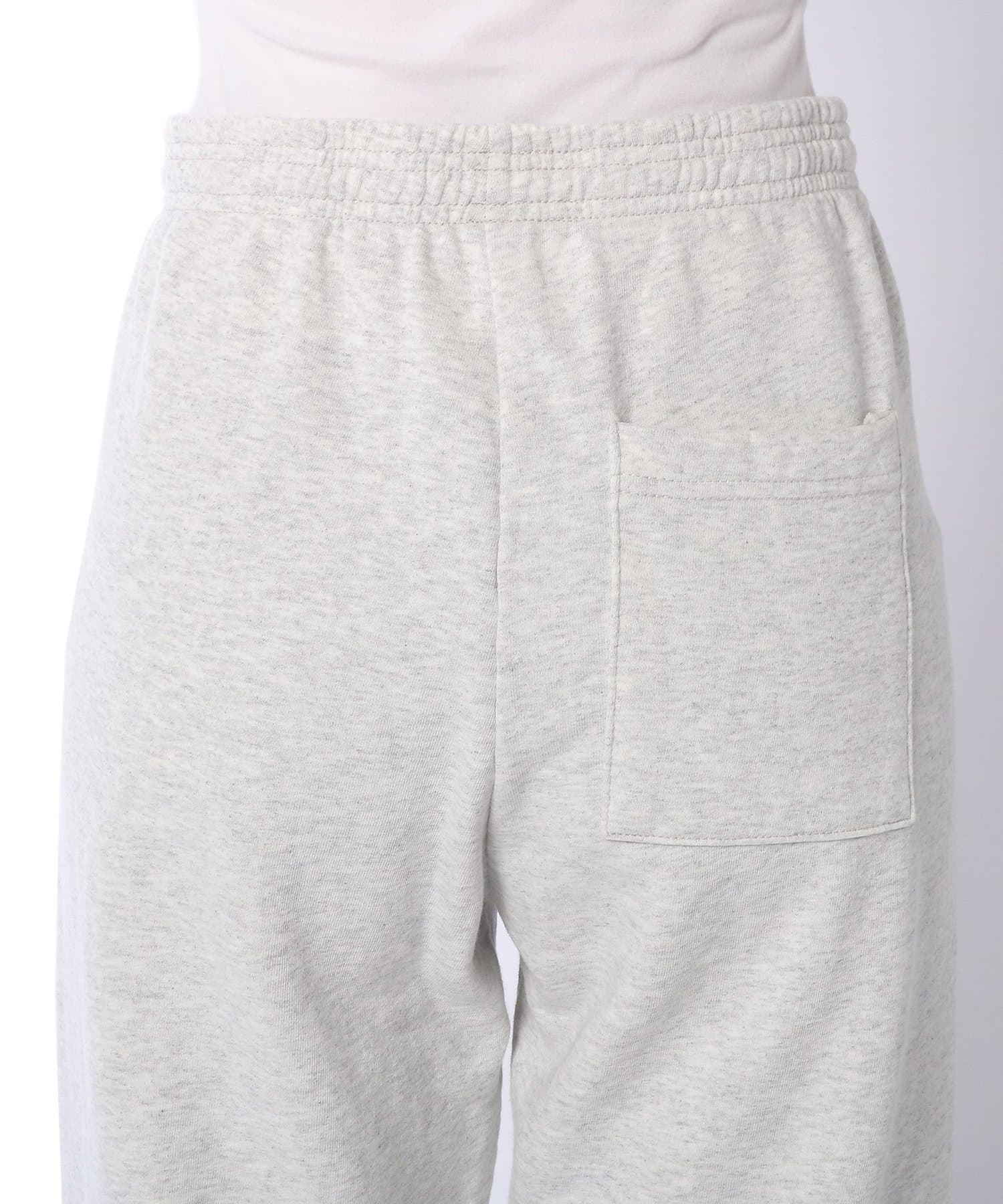 ナチュラルなヘザーグレーのボディに、控えめに施された左もものブランドロゴプリントがさりげないアクセントになったデザイン。